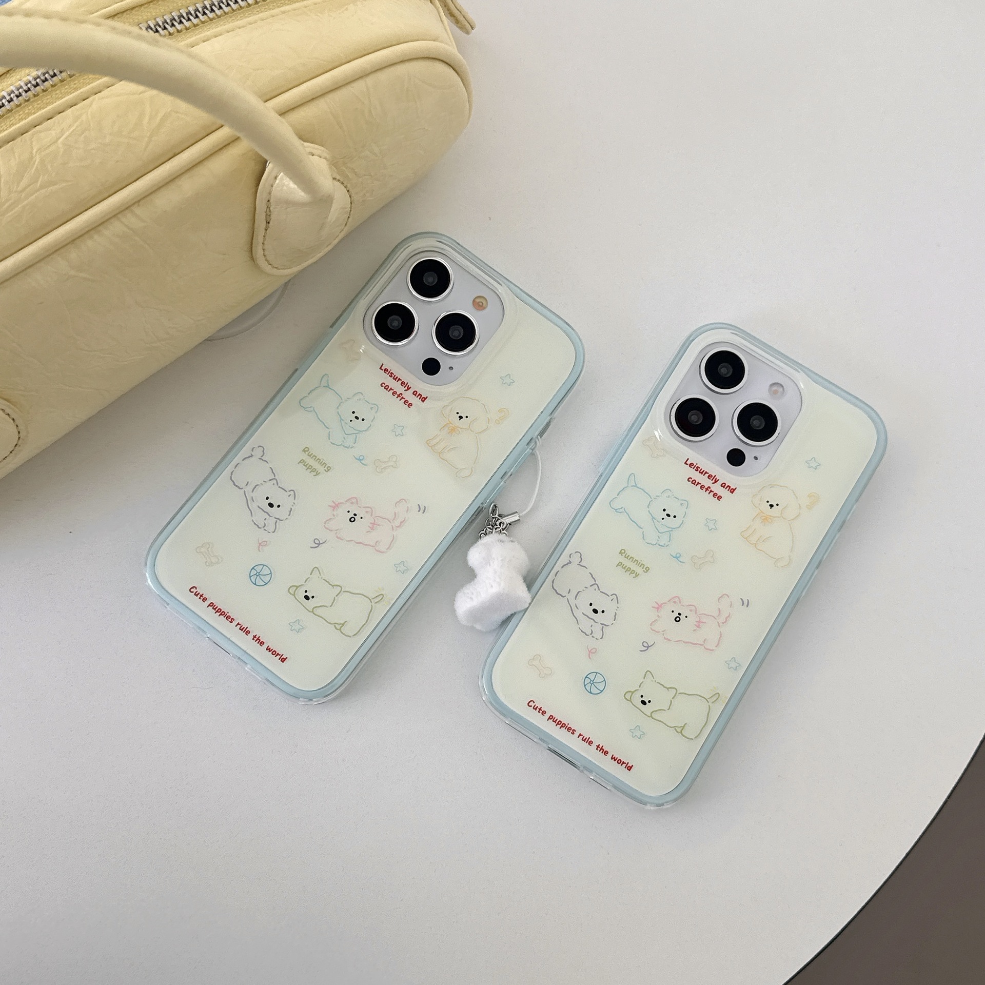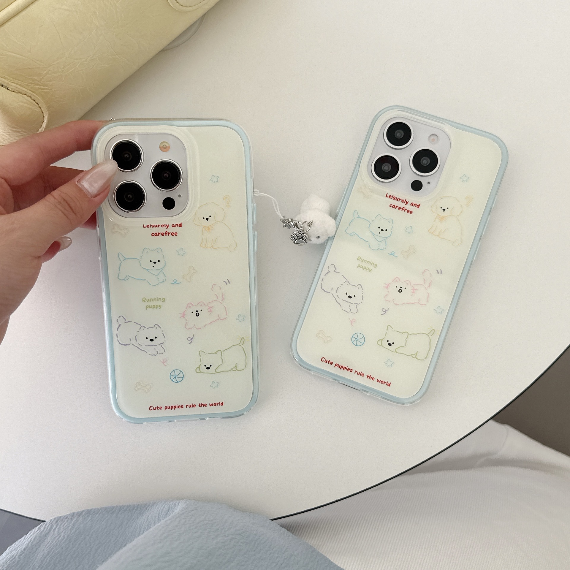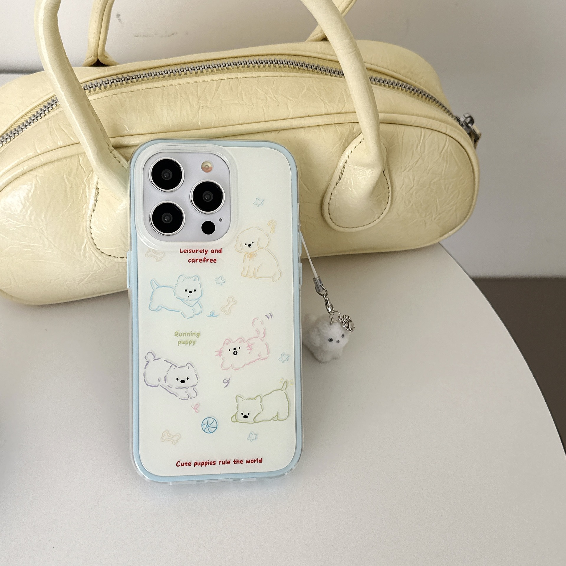 Cachorro de línea linda de dibujos animados para Apple 16ProMax funda para teléfono 15Pro simple 14PM femenino 15/16PM