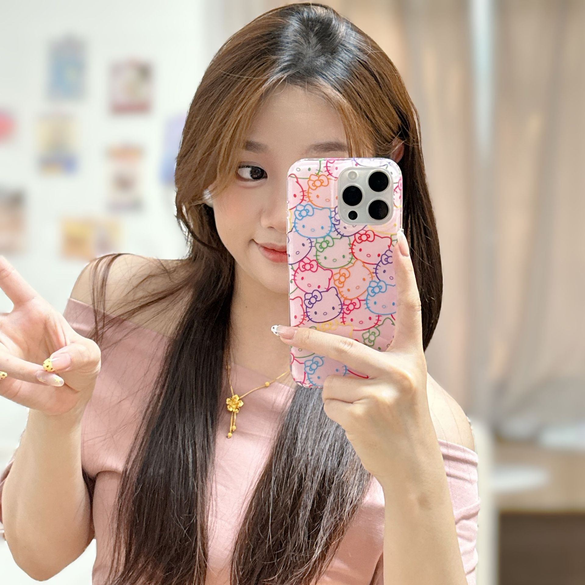 Línea de corazón de niña rosa KT gato para Apple 15Pro/16Pro funda para teléfono móvil 14 dibujos animados 13 dibujos animados 16PM