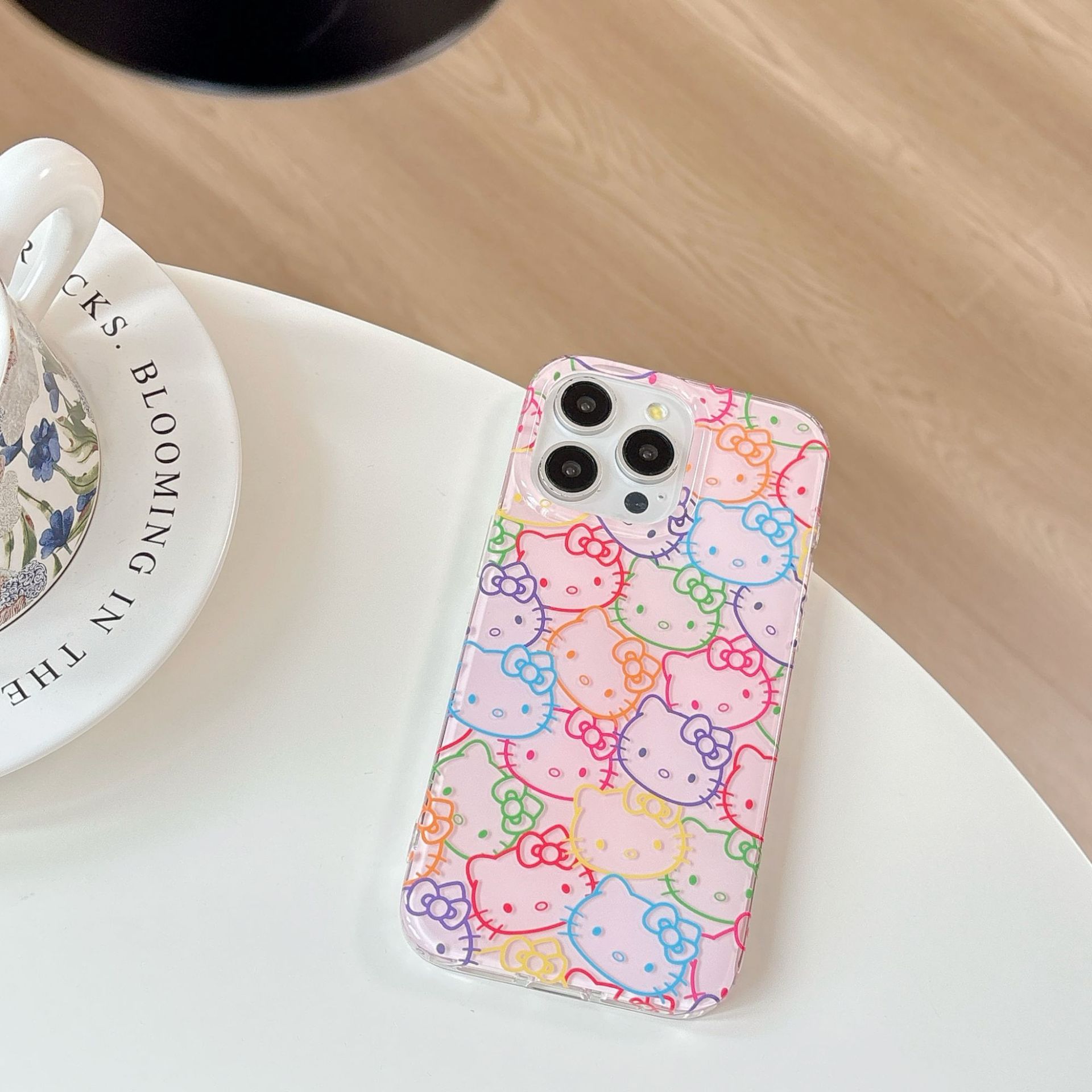 Dibujos animados japoneses y coreanos lindo gato para Apple 14/15promax funda para teléfono marrón Hola gato iPhone16p