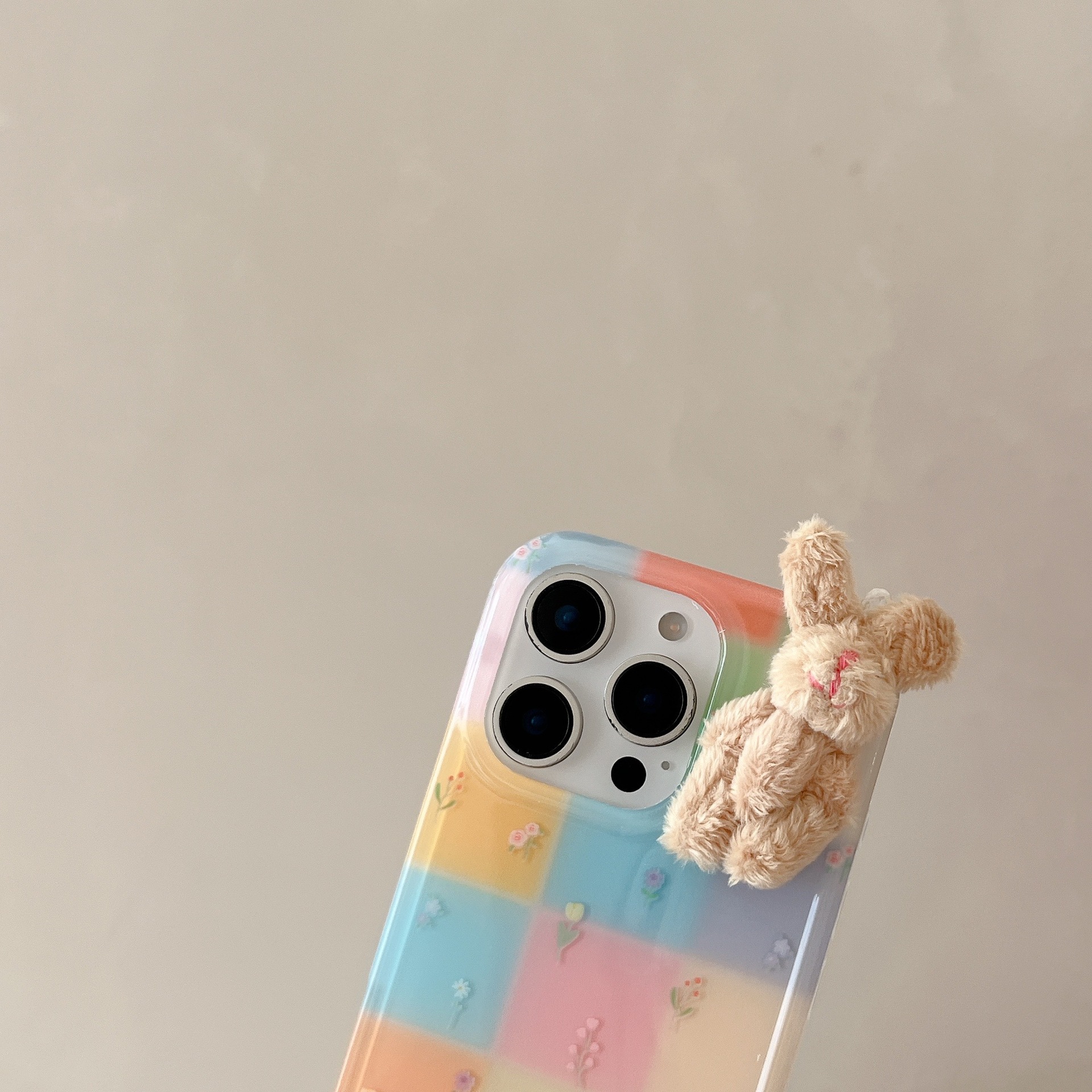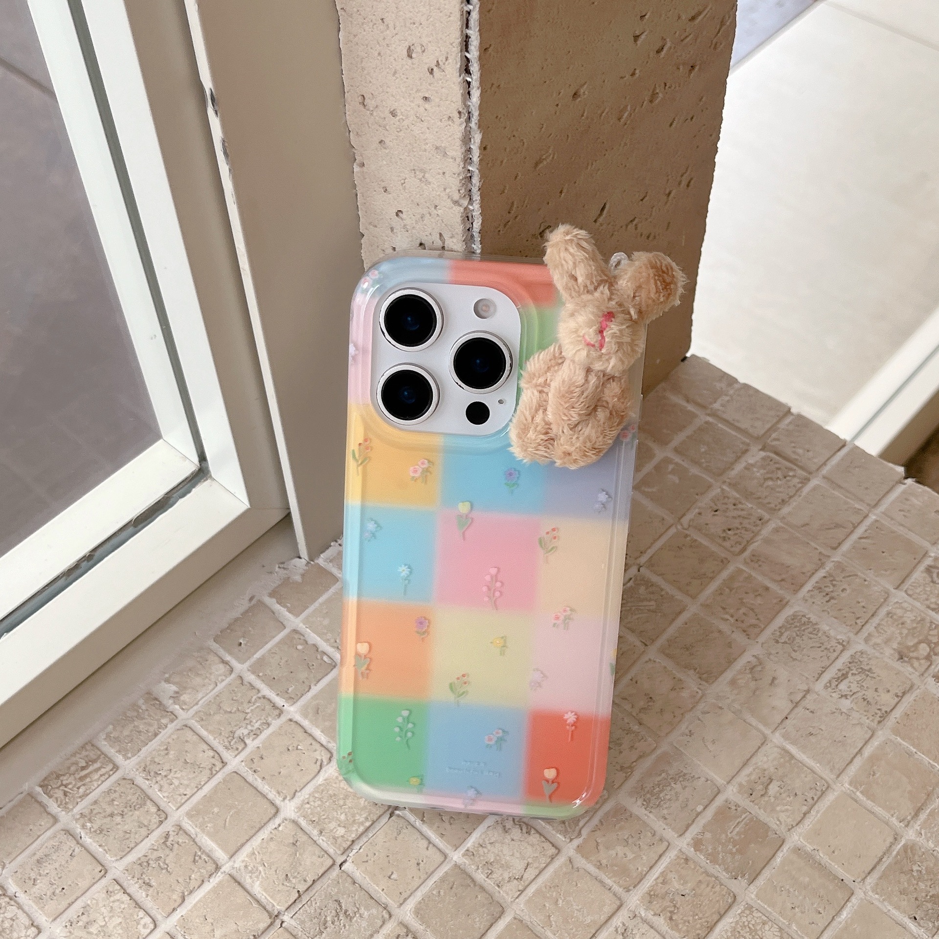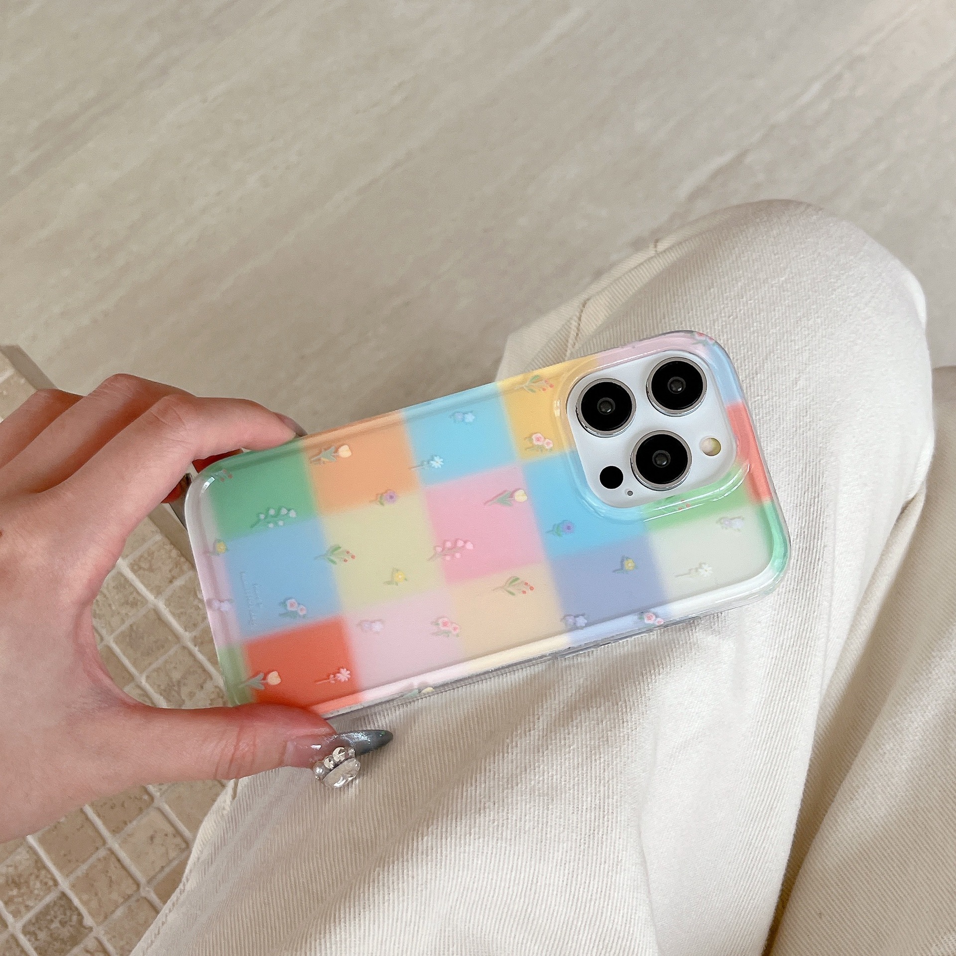 Costuras florales de rejilla de color personalizadas para Apple 16ProMax funda para teléfono móvil 15Pro Rabbit 14/13 Verano 15PM