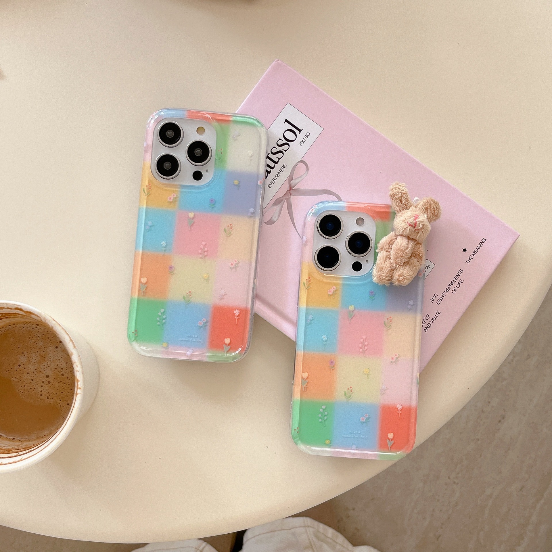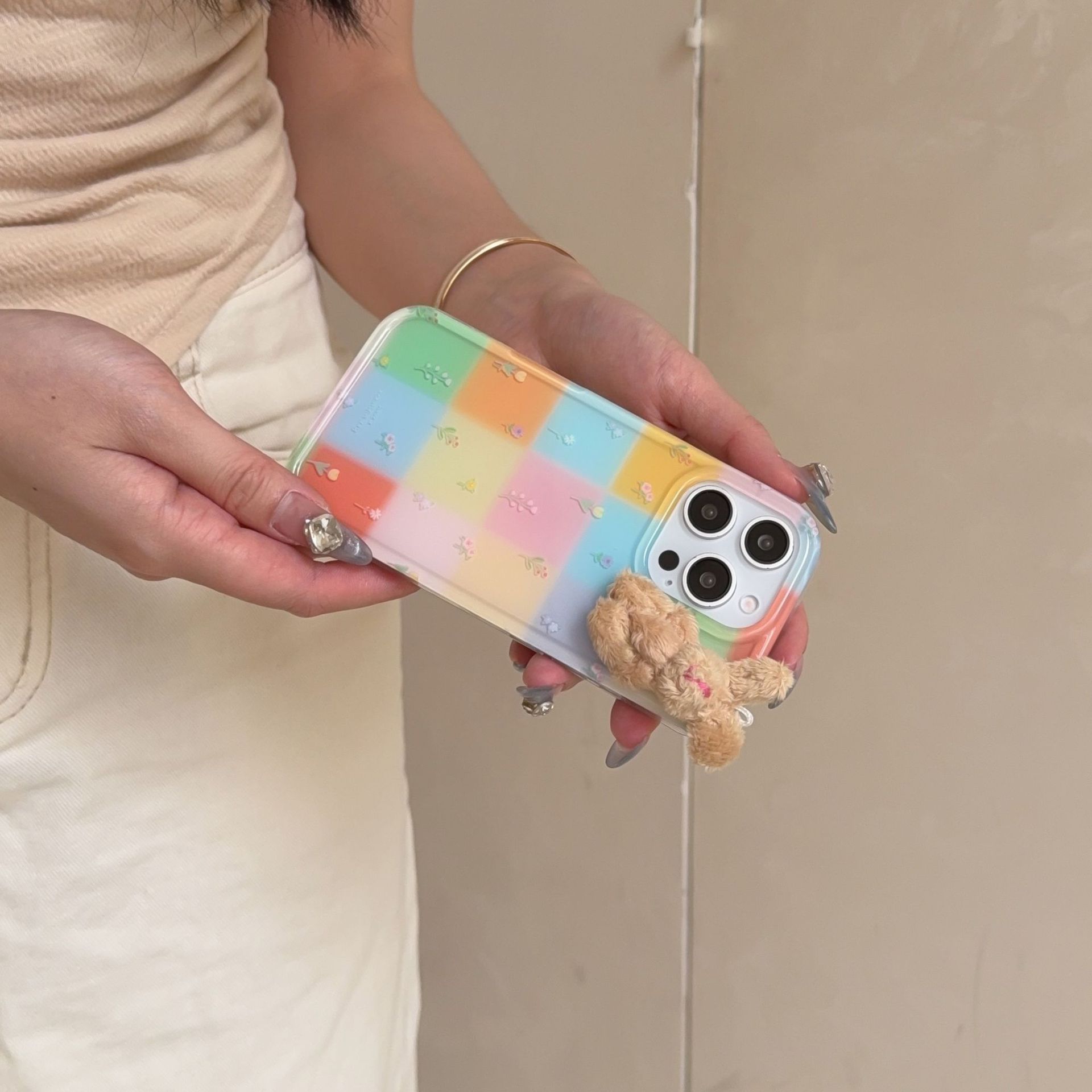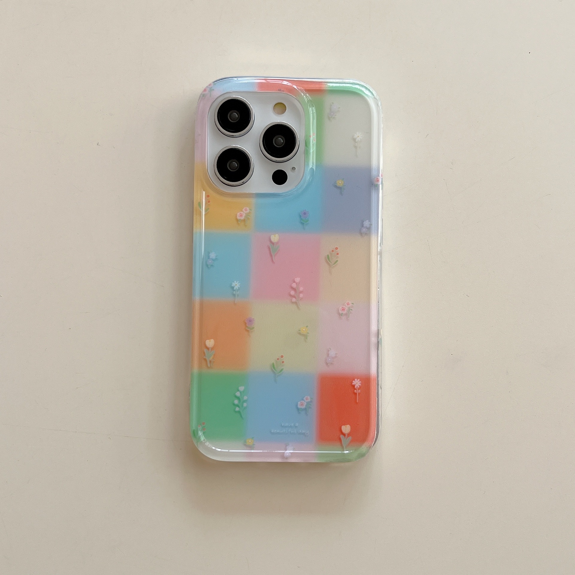 Costuras florales de rejilla de color personalizadas para Apple 16ProMax funda para teléfono móvil 15Pro Rabbit 14/13 Verano 15PM