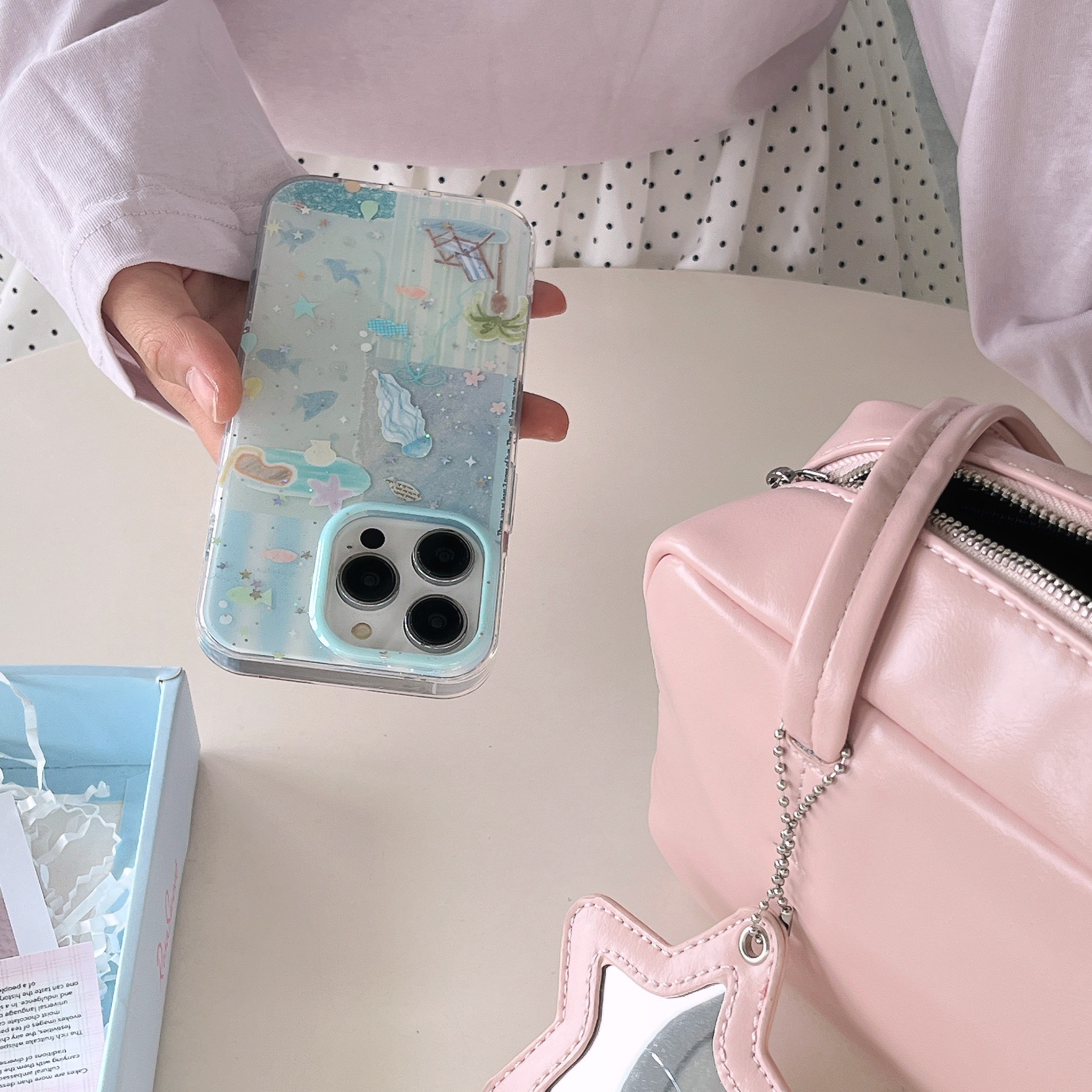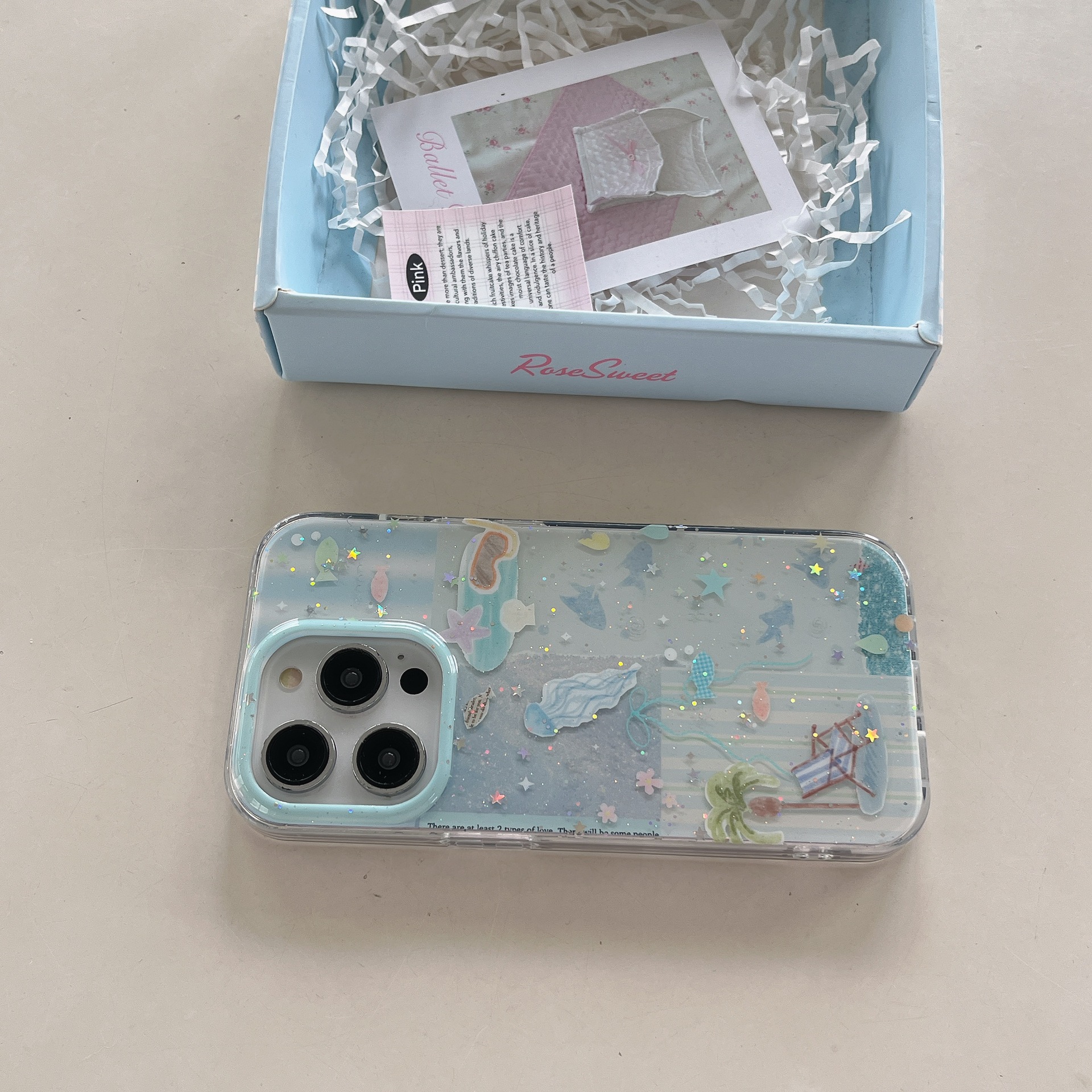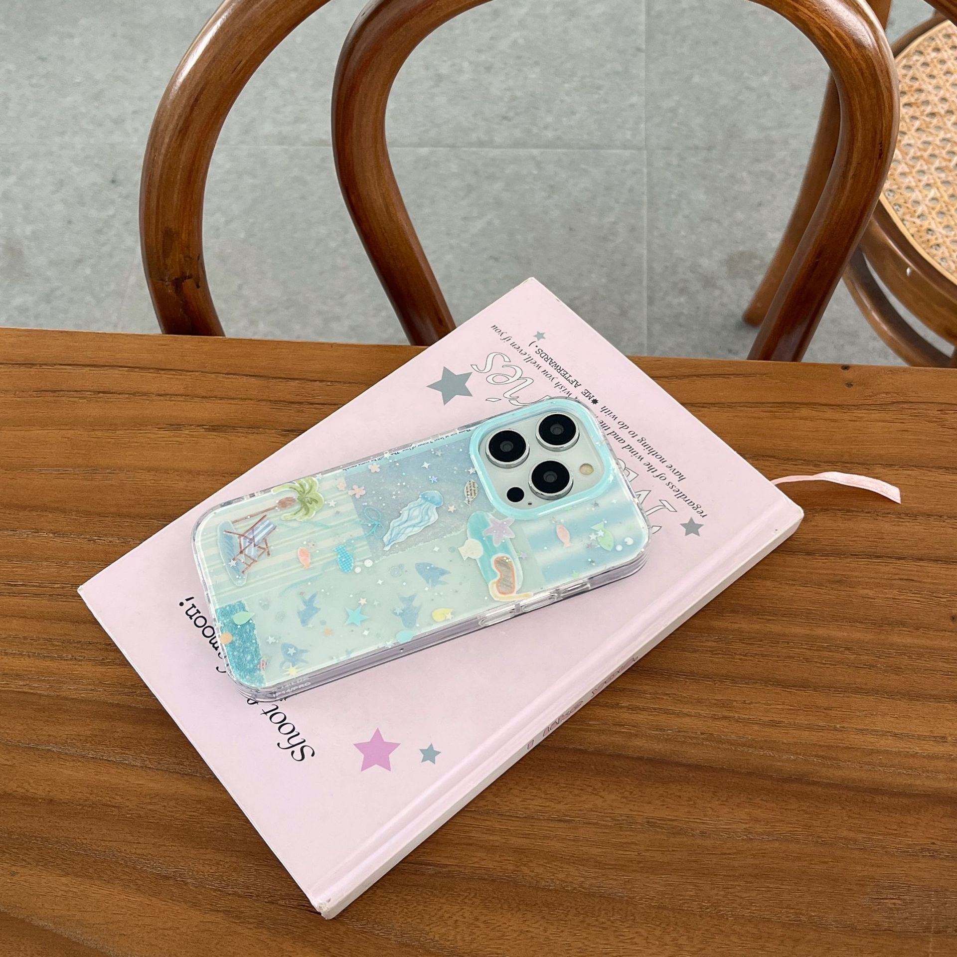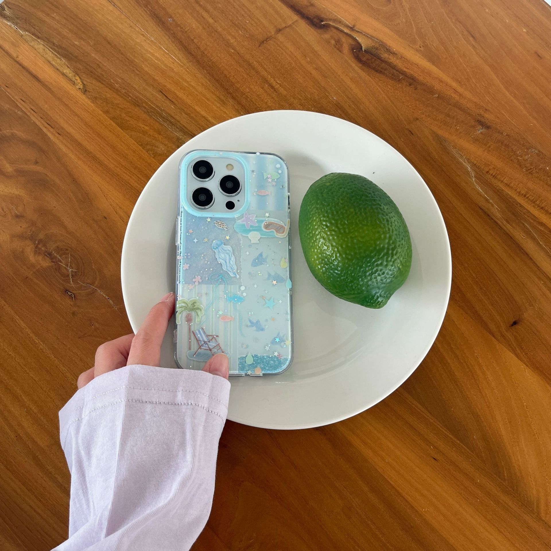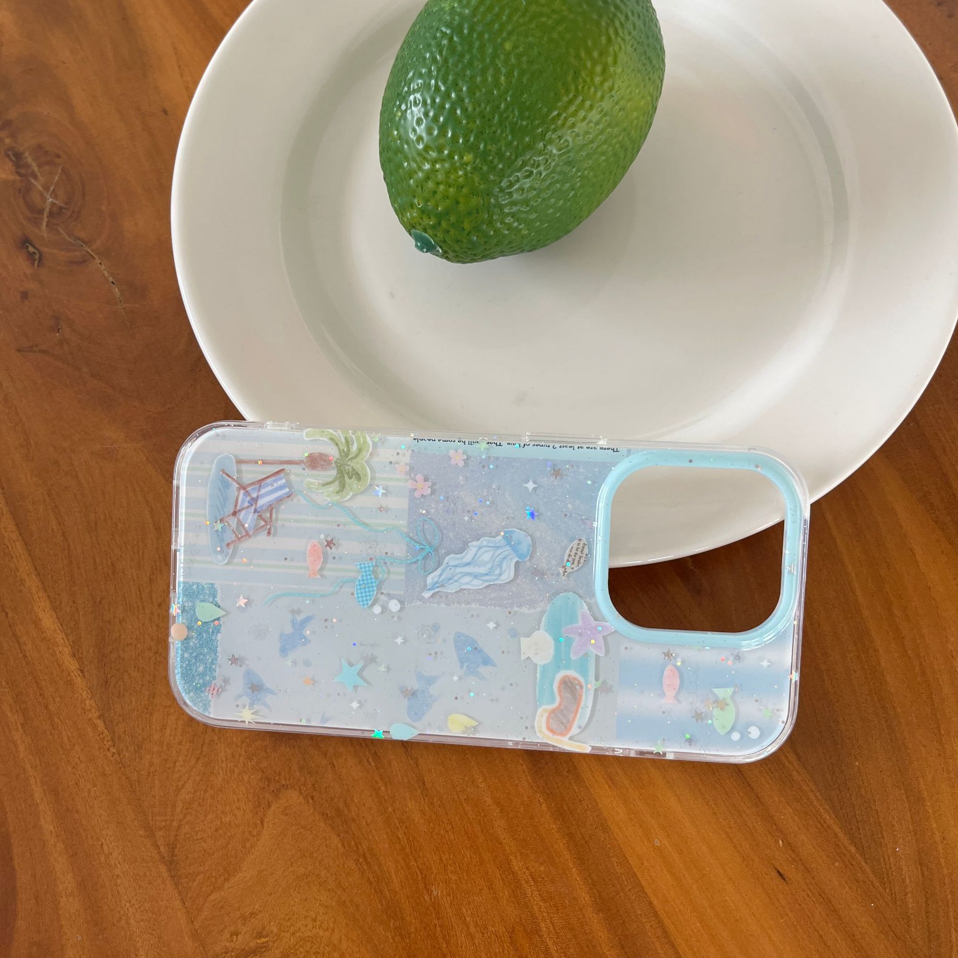 Divertido brillo azul costura medusa para Apple 16ProMax funda para teléfono móvil 15Pro Summer 14/13 Mujer 15