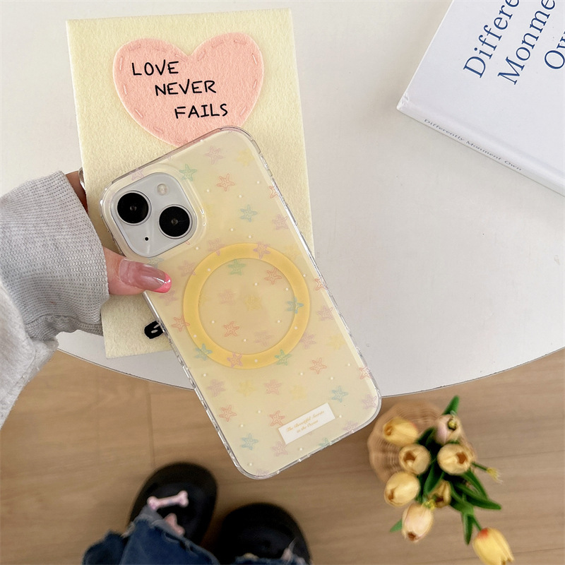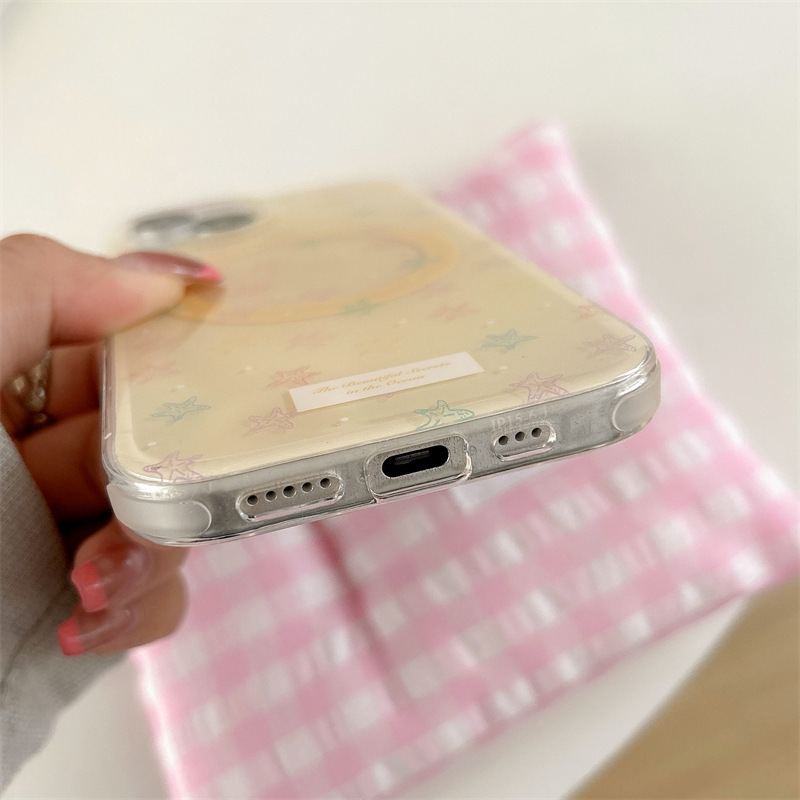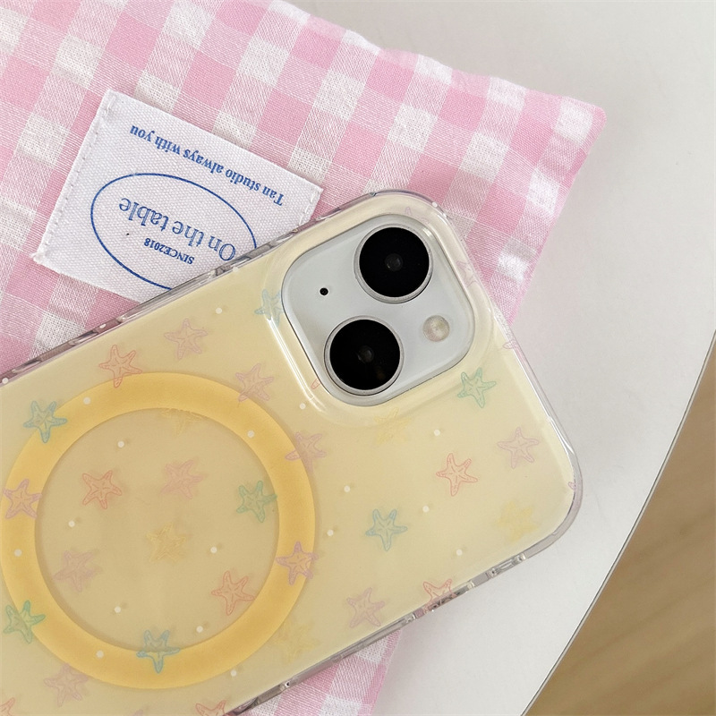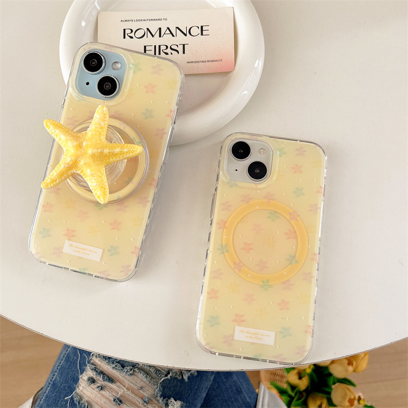 Estrella de mar amarilla fresca pequeña coreana para iPhone16 funda para teléfono móvil 15ProMax dibujos animados 14/13 atracción magnética 16P
