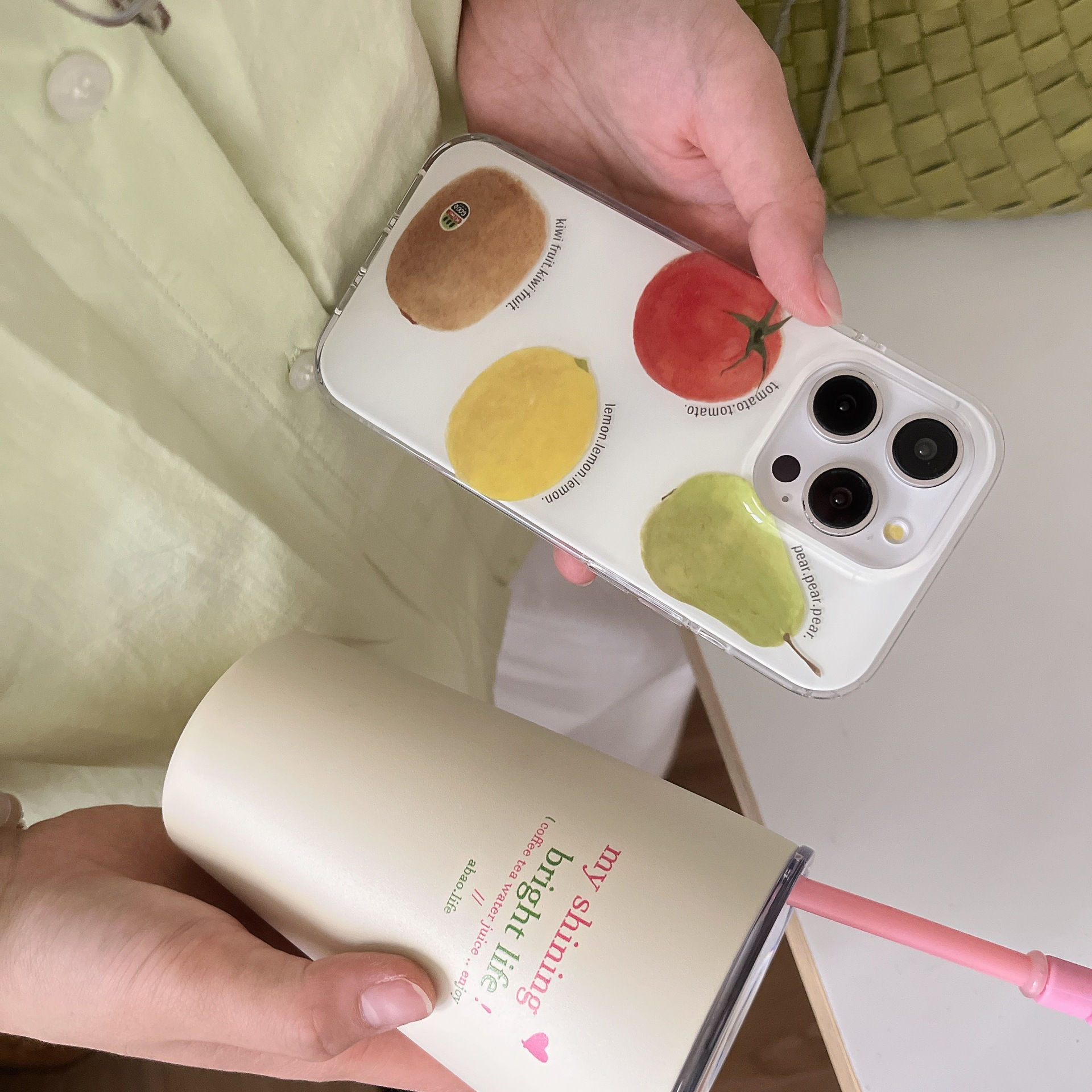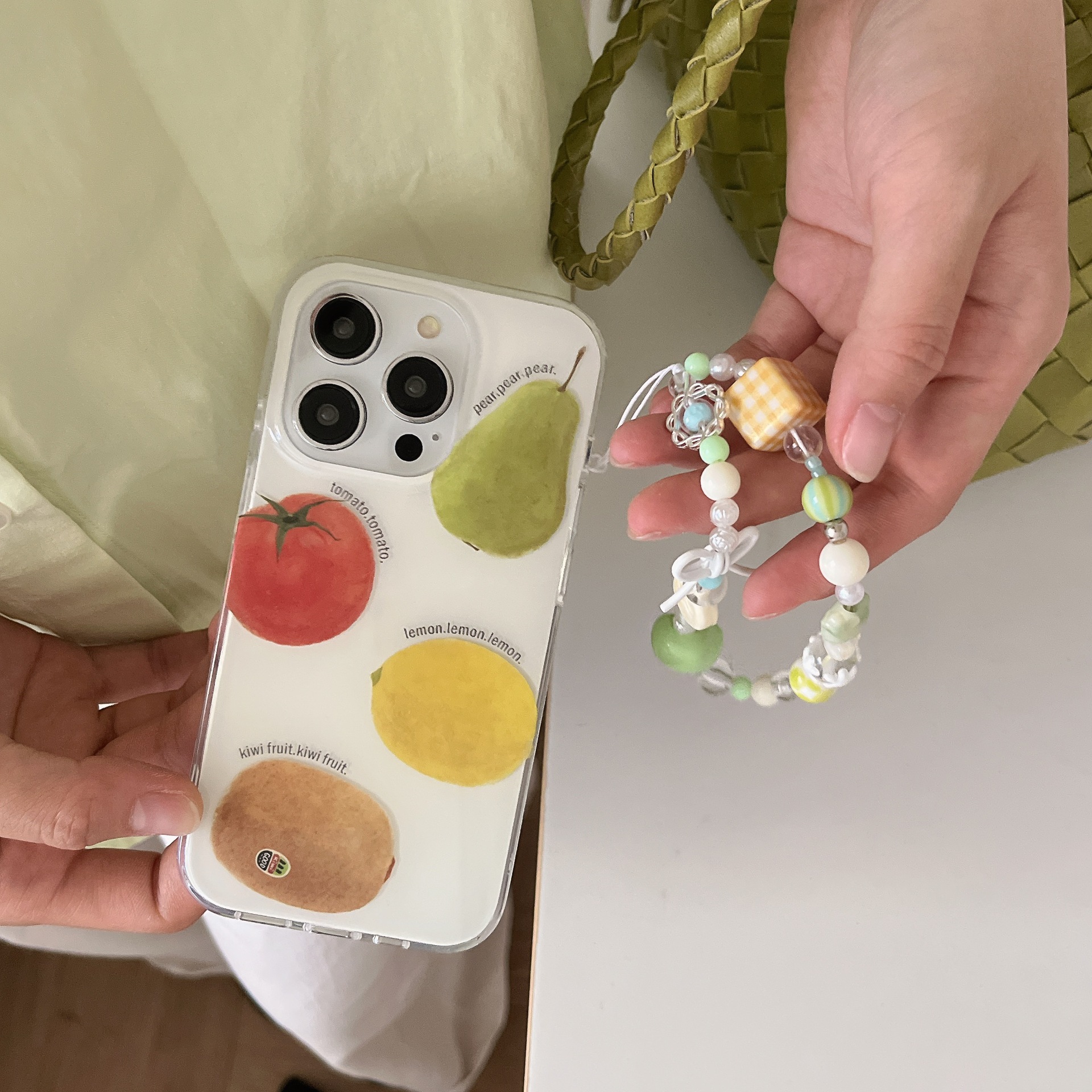 Colección de hilo creativo Frutas Apto Apple 15ProMax Funda para teléfono 16Pro Pulsera 14/13 Pareja 16PM