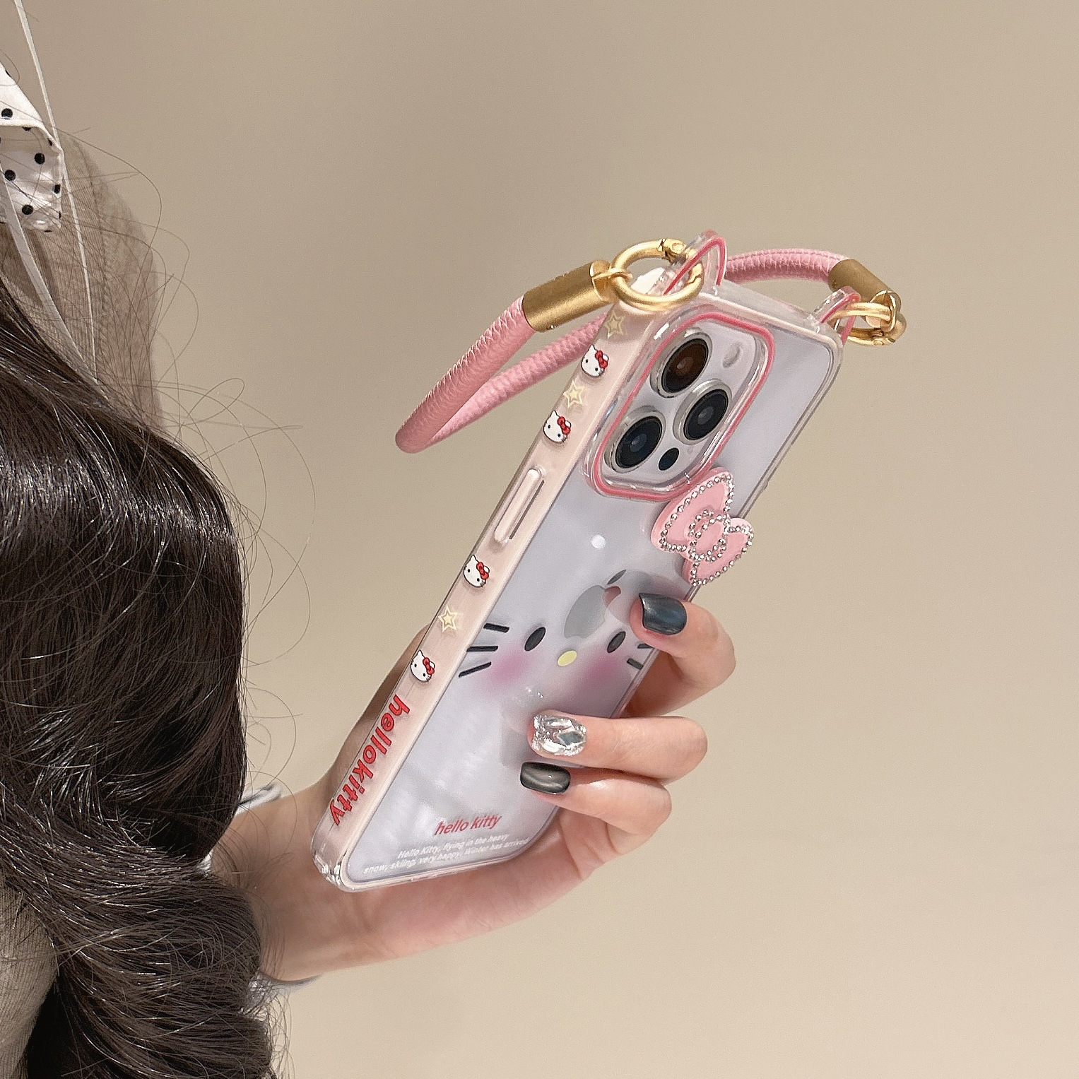 Nuevo lindo emoji KT para Apple 15/16 funda para teléfono móvil 14ProMax cuerda de mano 16PM femenino 15Pro nuevo 13