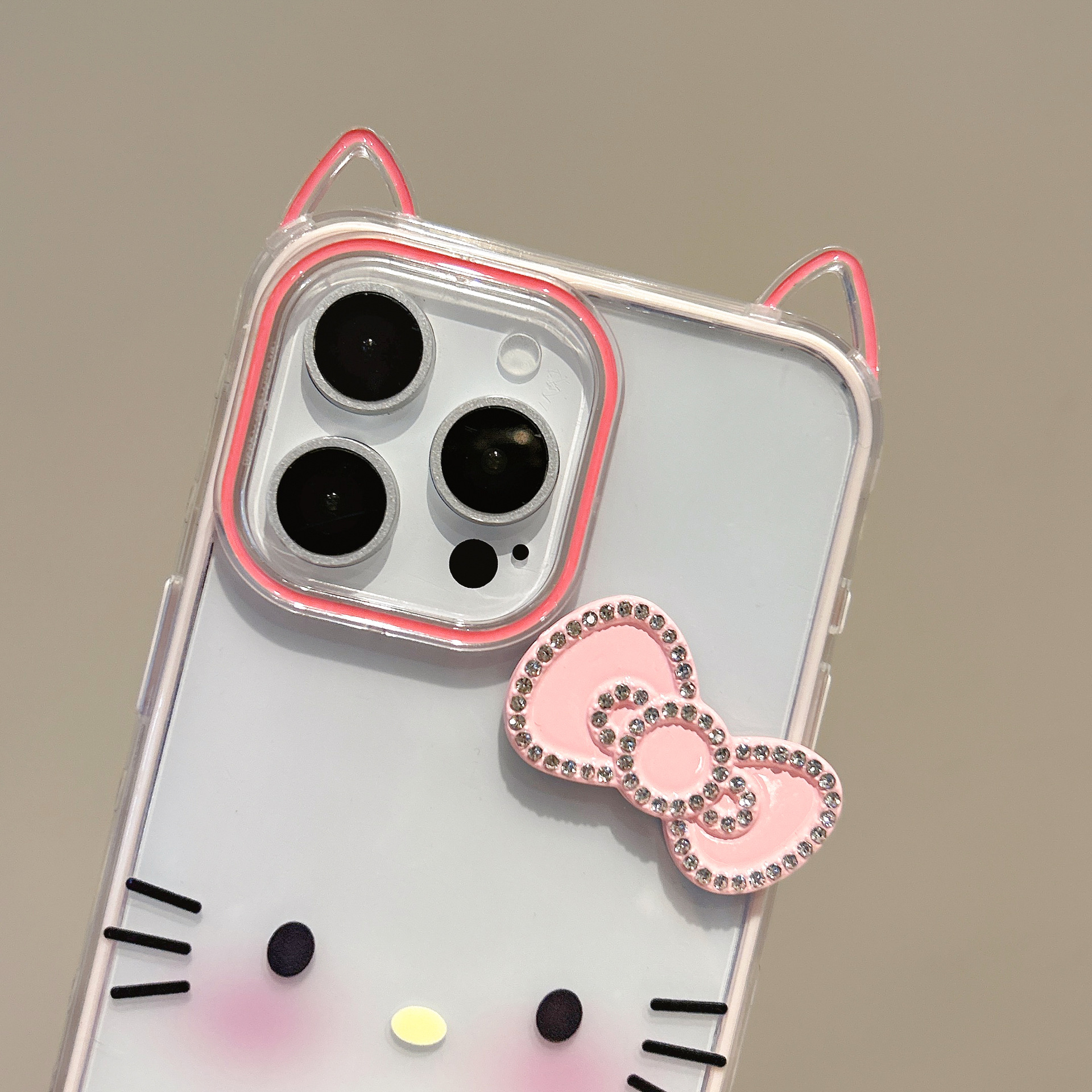Emoticonos tridimensionales de lazo-dos en uno-rosa-rubor KT cat RJ,Cuerda de mano de cuero lazo tridimensional-dos en uno-borde rosado-emoji rubor KT cat RJ