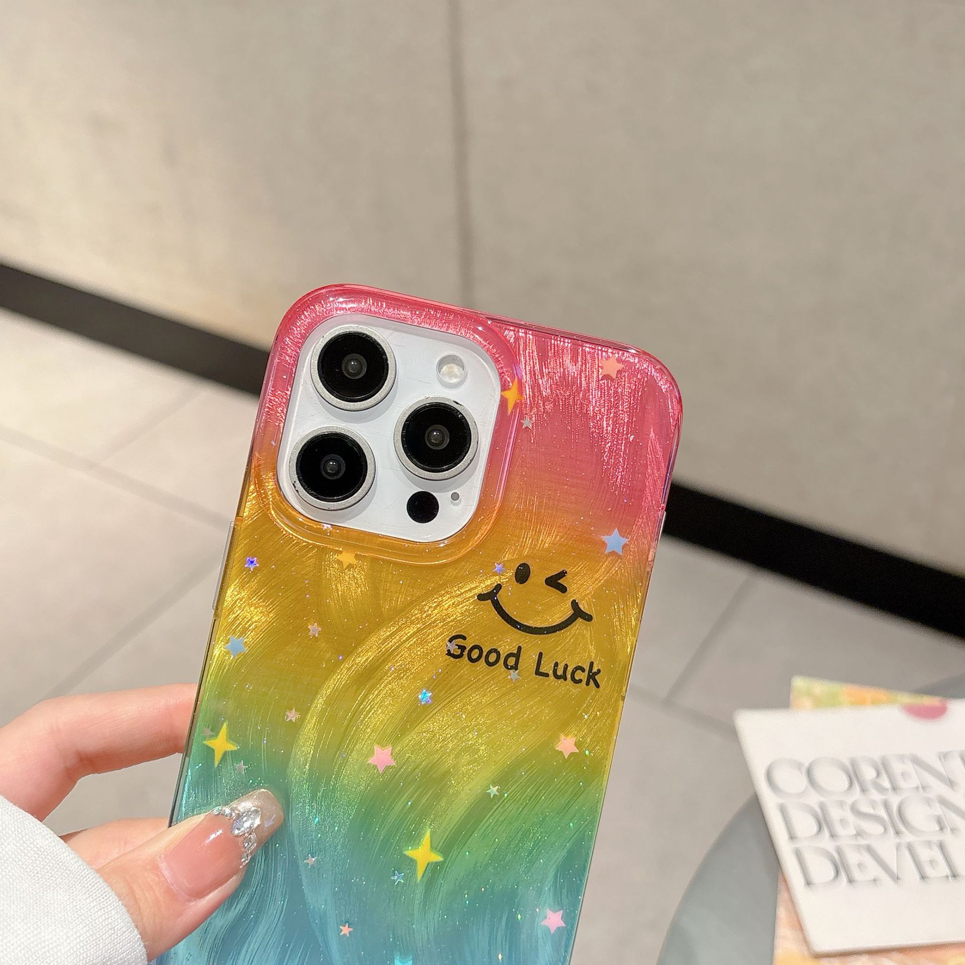 Gradiente hilo de plumas estrella cara sonriente QQ