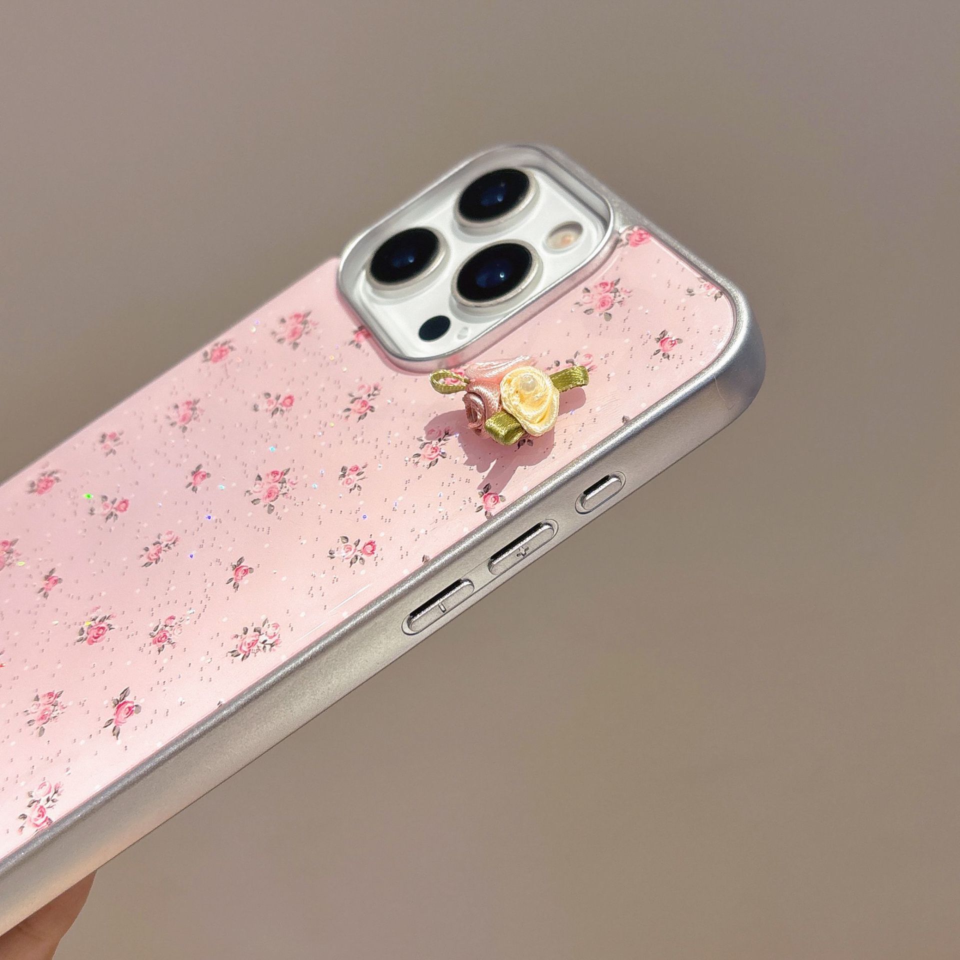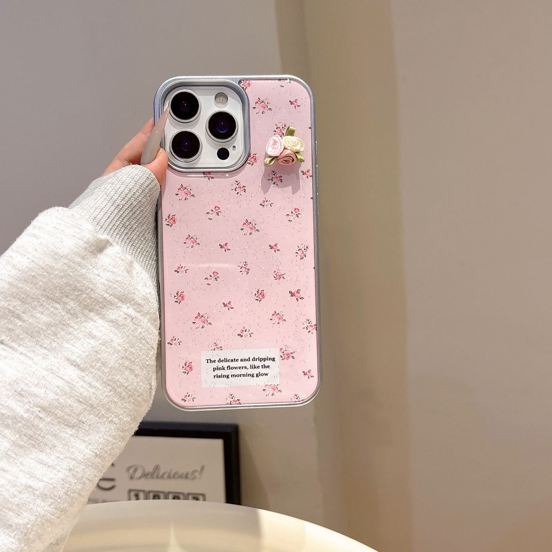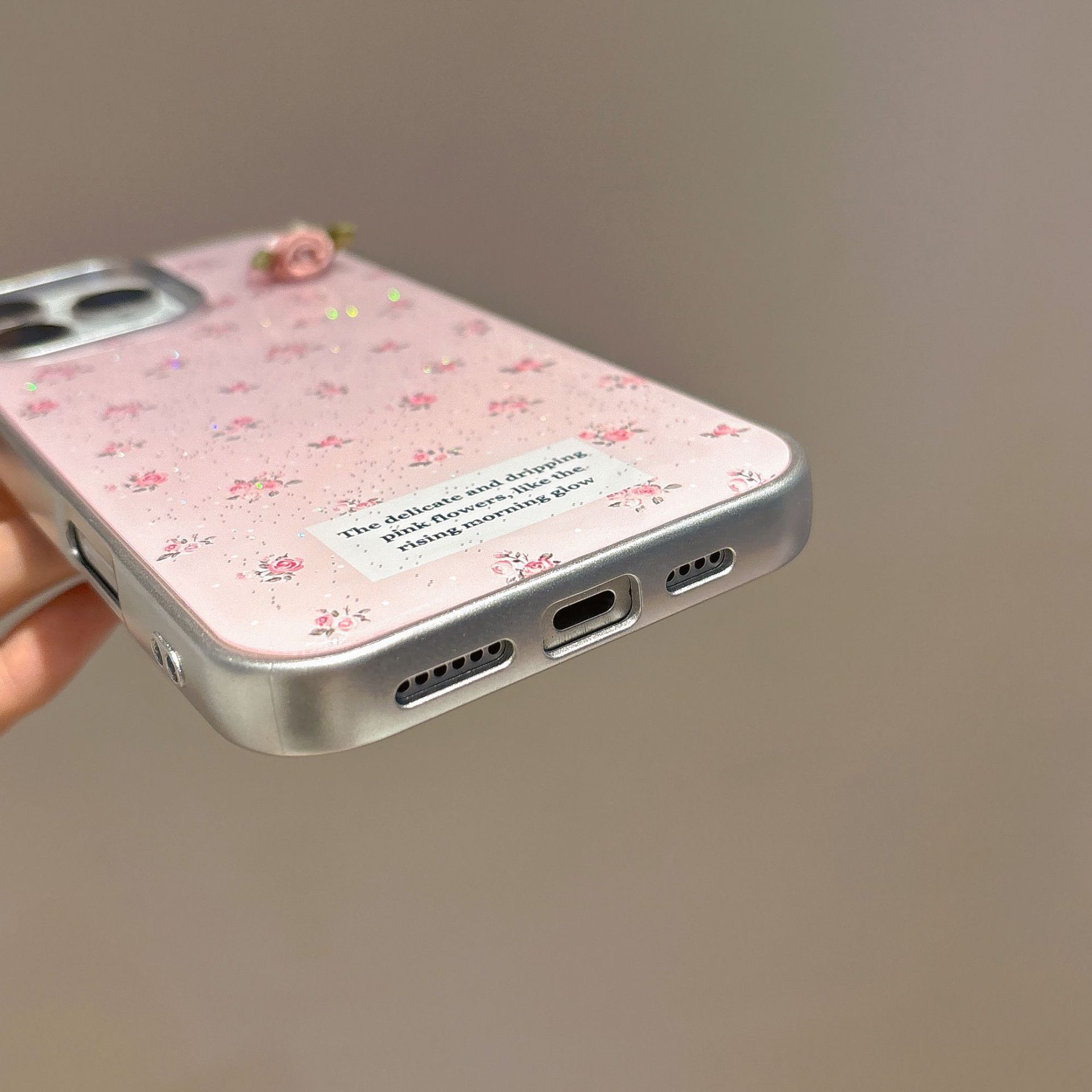 Rosa epoxi niña corazón pequeño floral adecuado para Apple 16ProMax funda para teléfono móvil 15Pro nicho 14/13 mujer 15