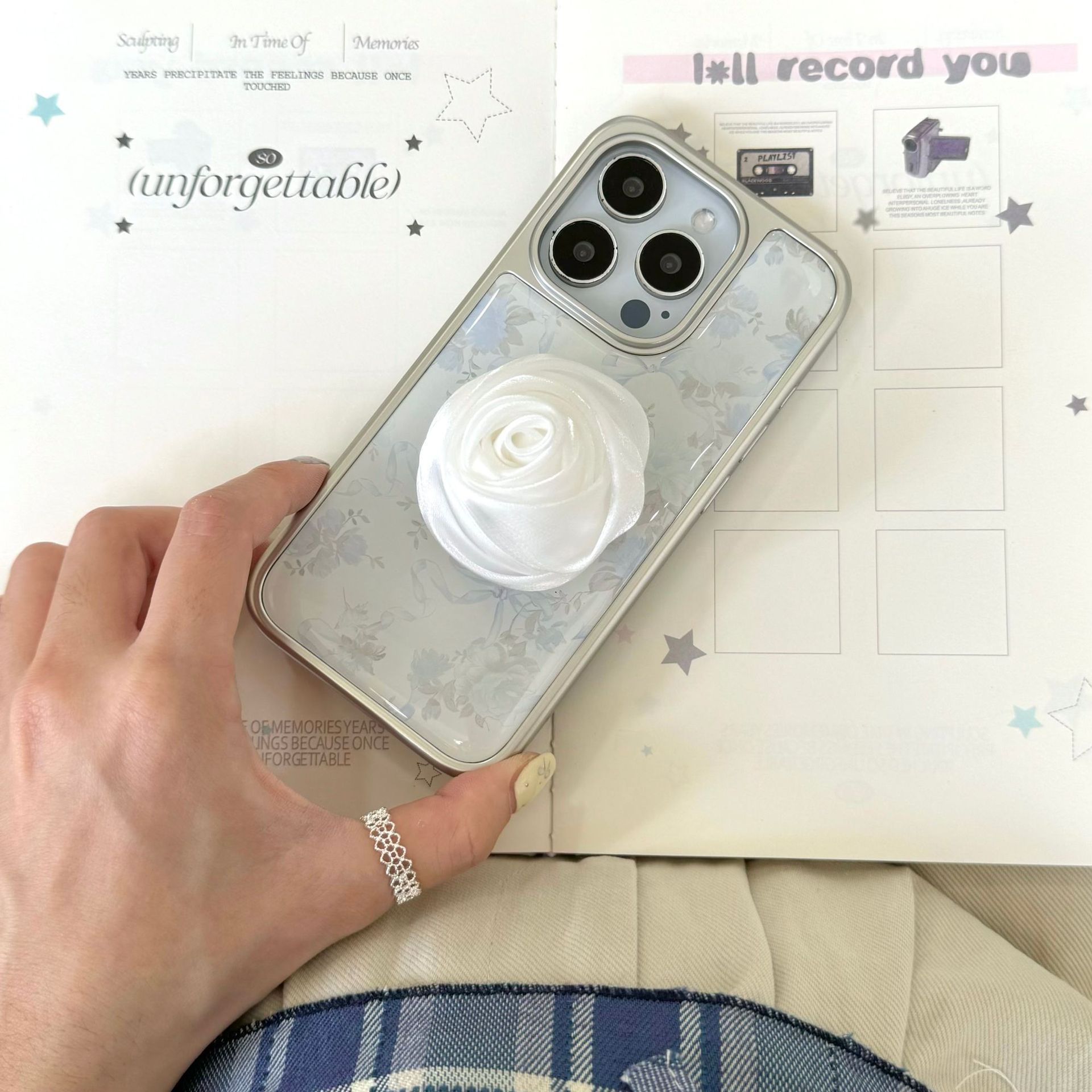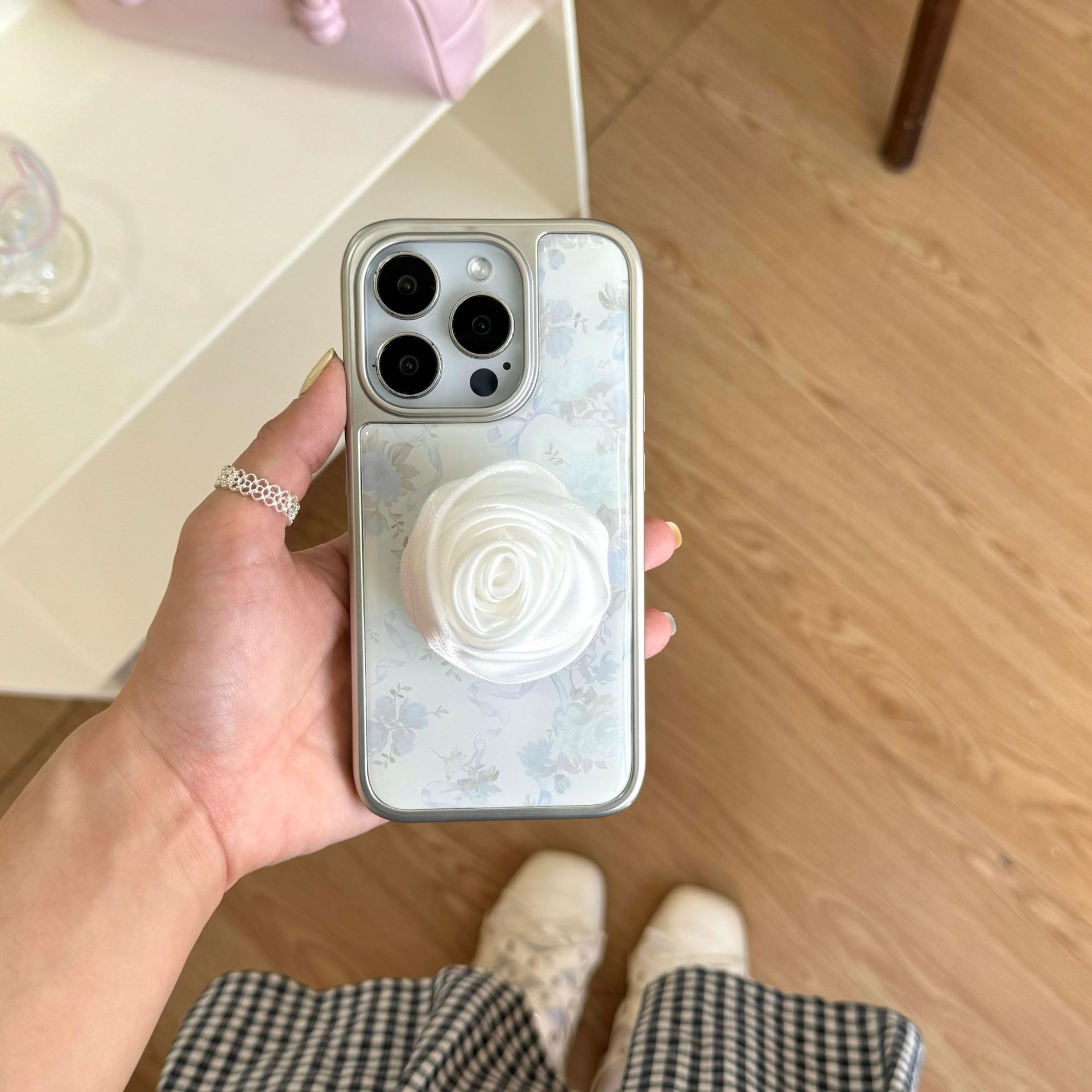 Monoconcha-borde plateado pantalla completa flor retro lazo roma,Soporte-borde plateado pantalla completa flor retro lazo roma