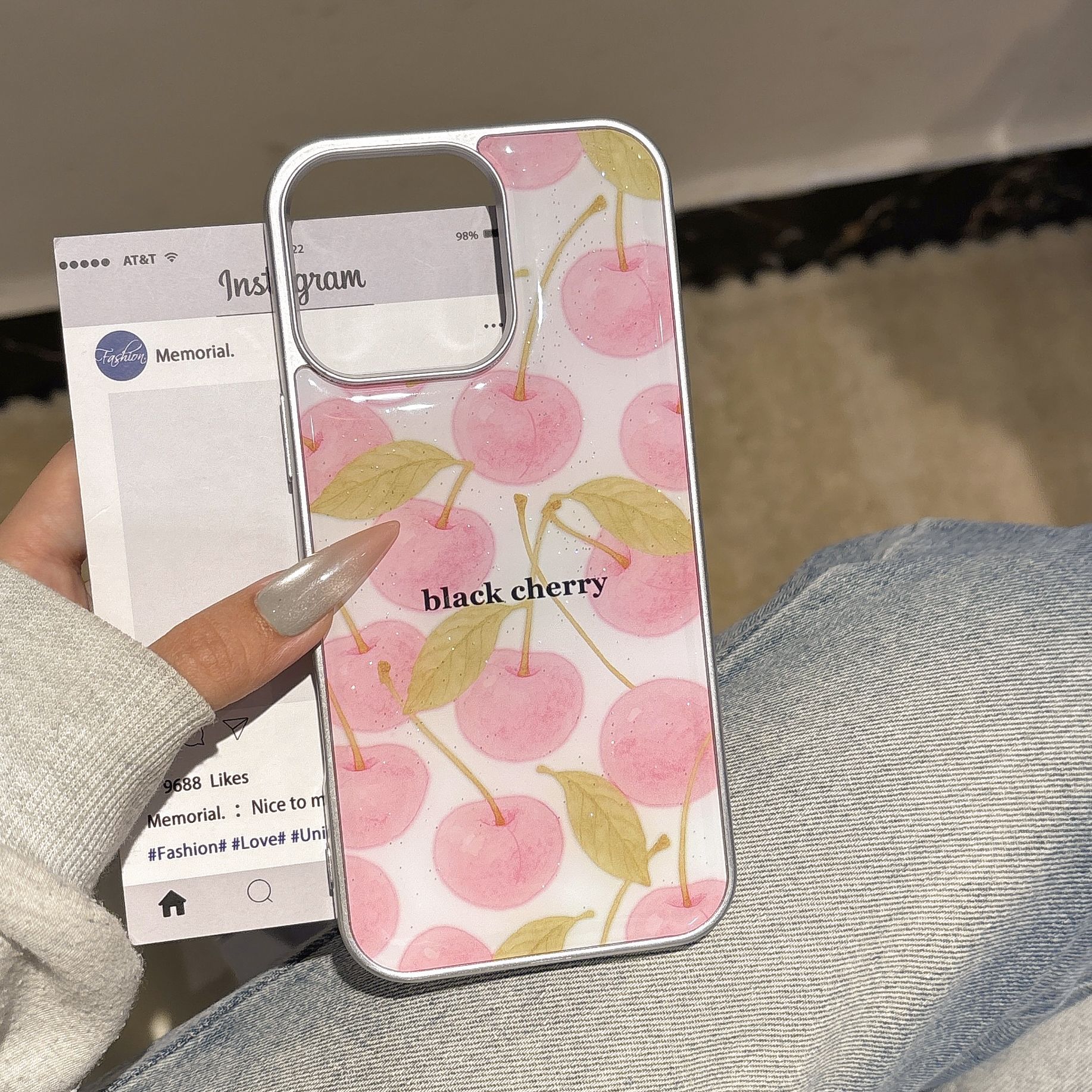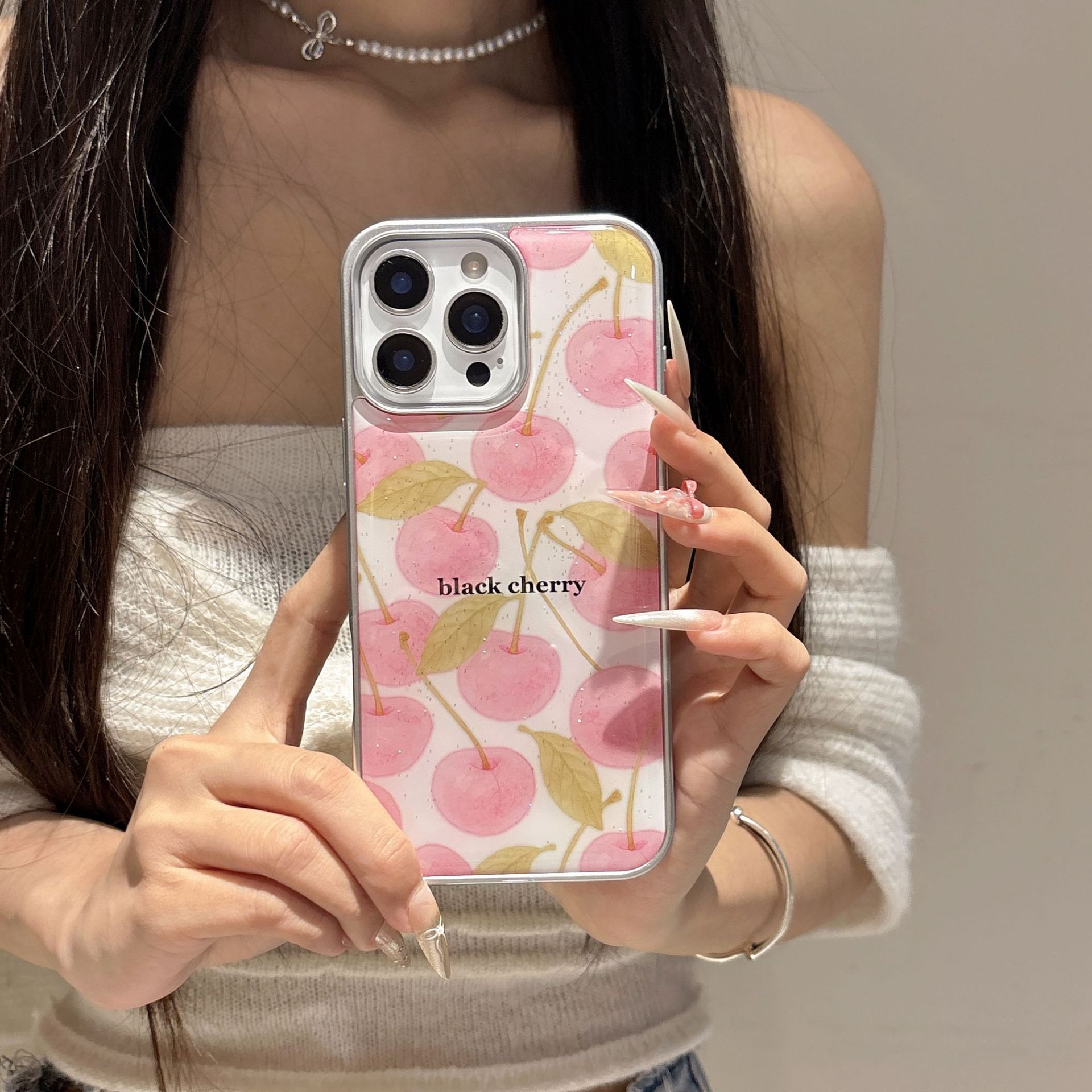 Chica rosa pequeña cereza fresca para iPhone16 funda para teléfono móvil 15ProMax epoxi 14Pro femenino 13 nuevo 15P