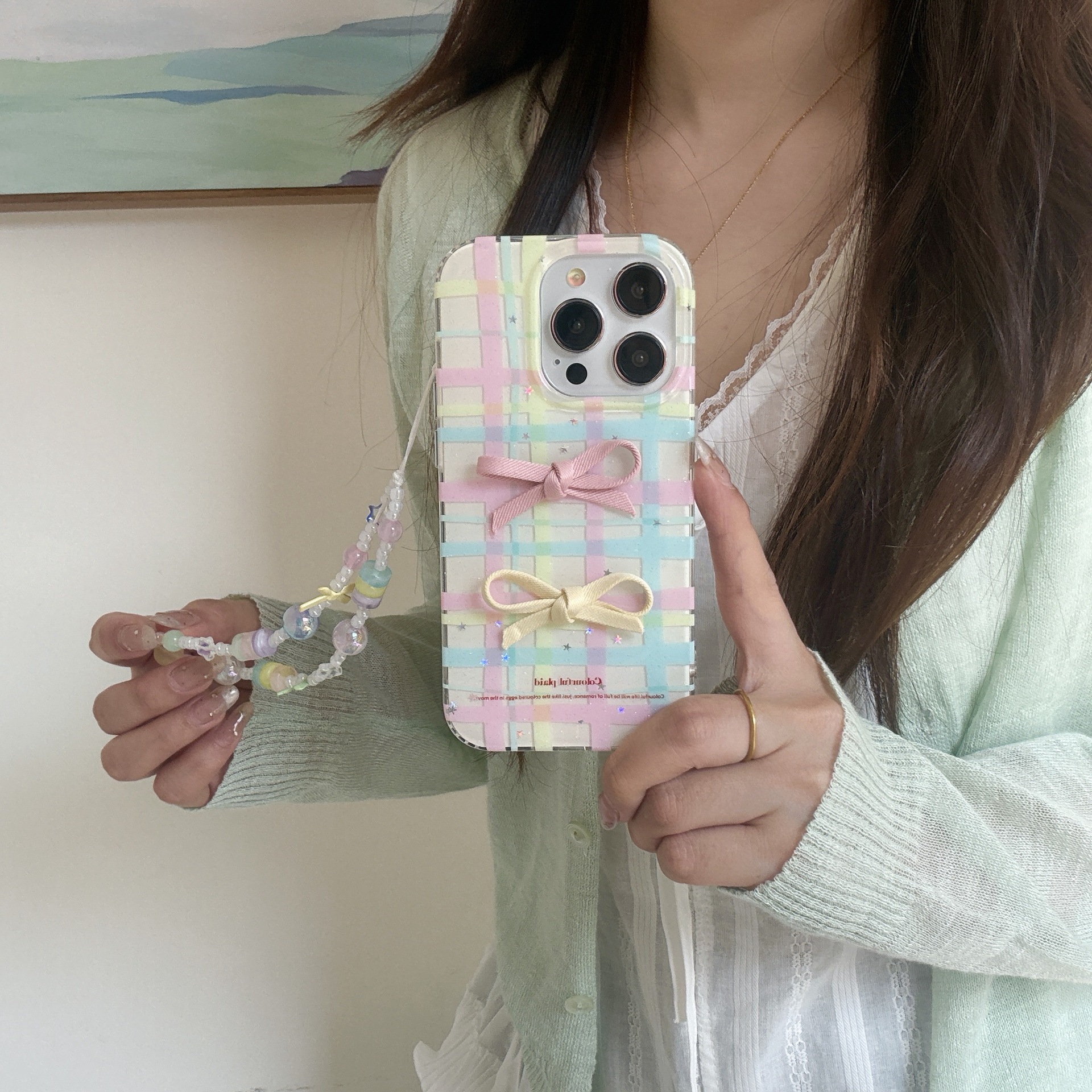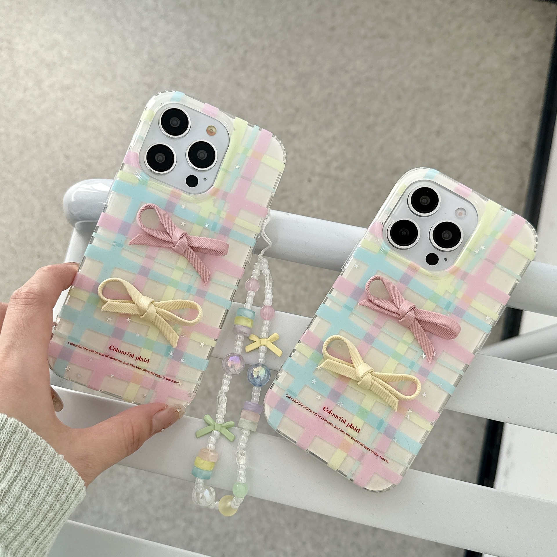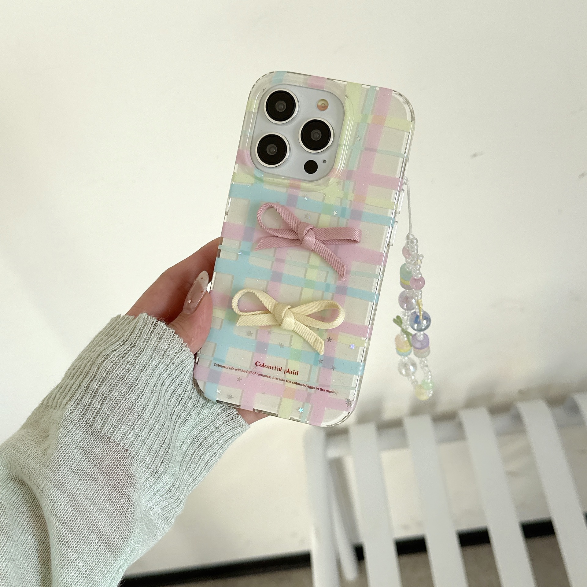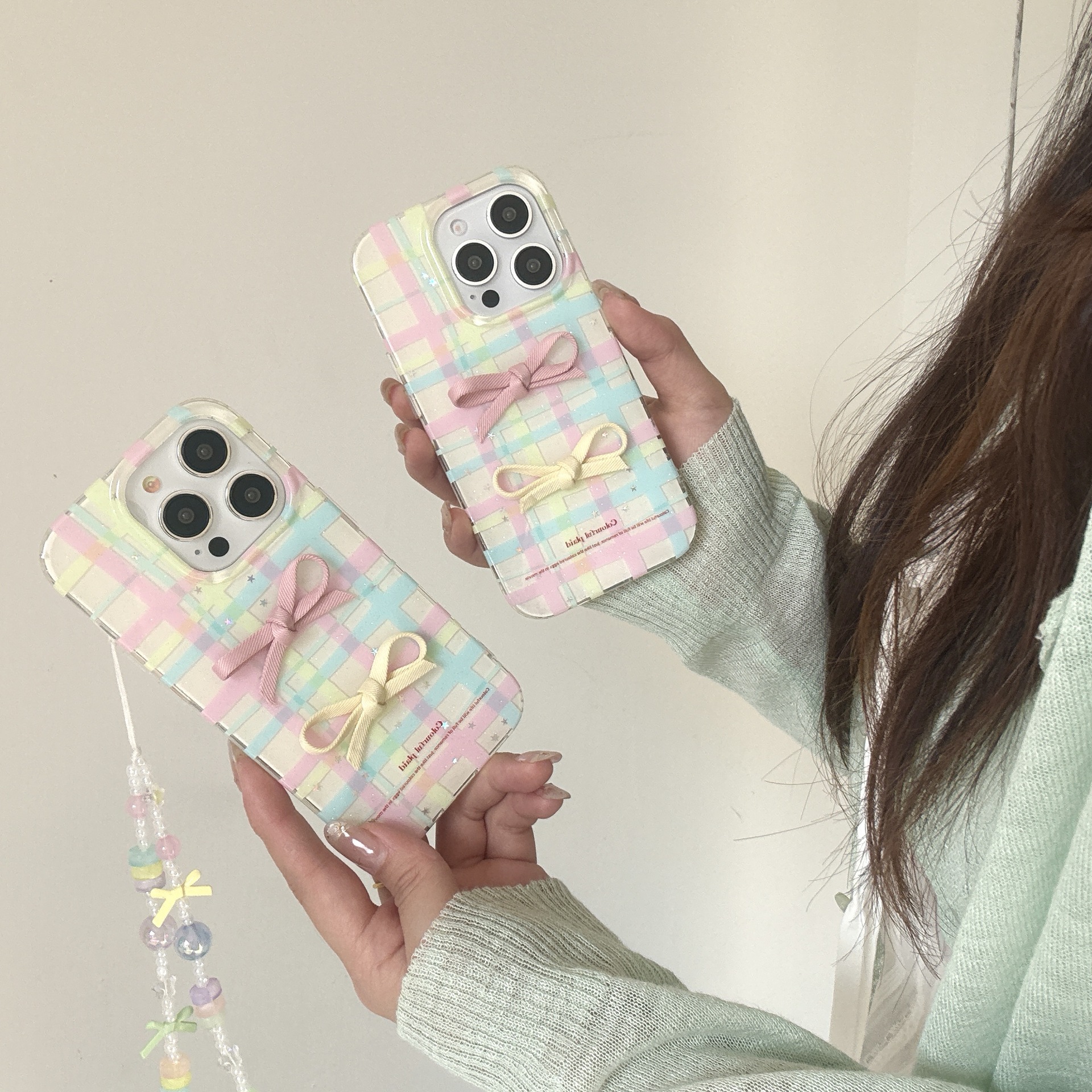 Pequeño arco tridimensional a cuadros fresco para Apple 15ProMax funda para teléfono móvil cadena 16Pro 14/13 nuevo 16