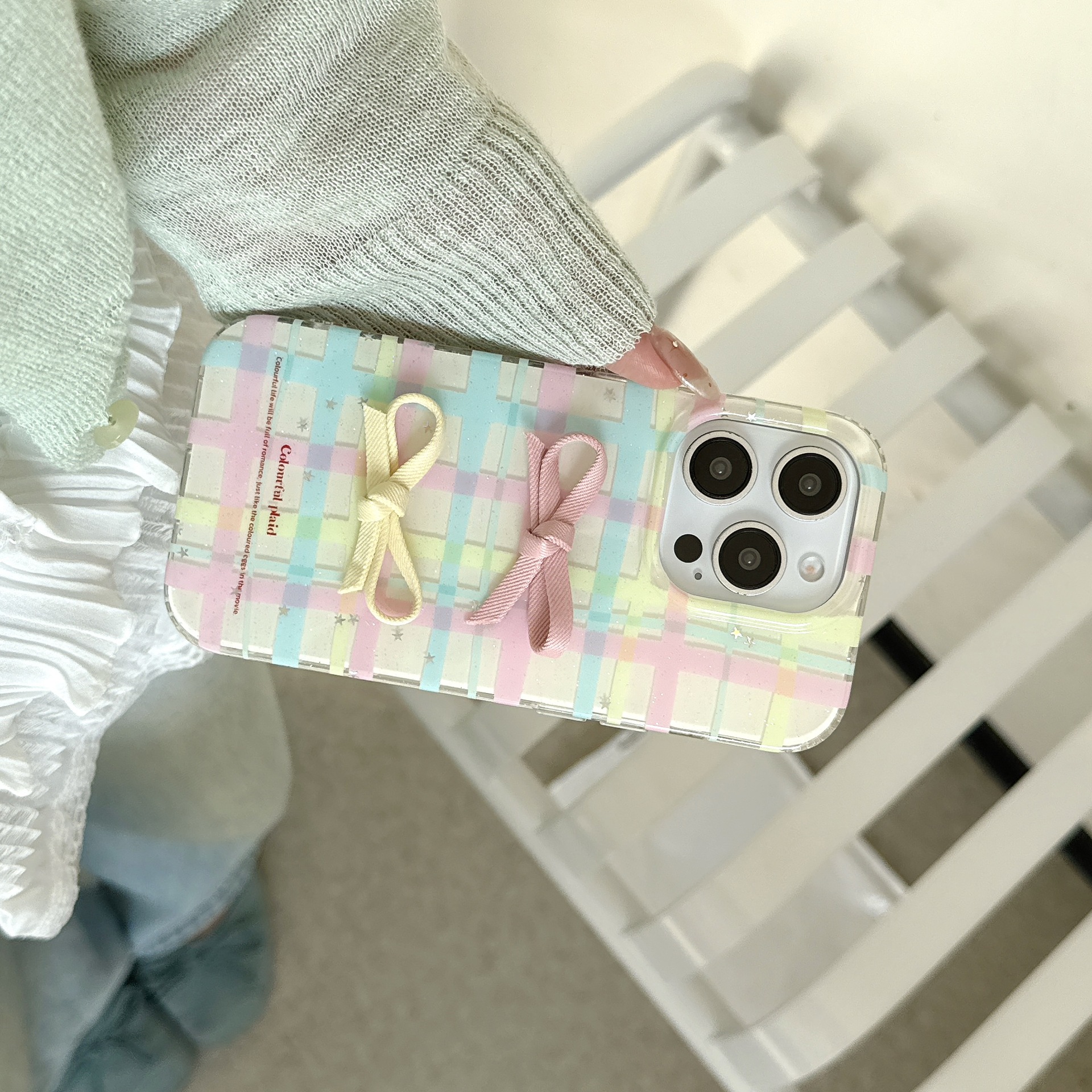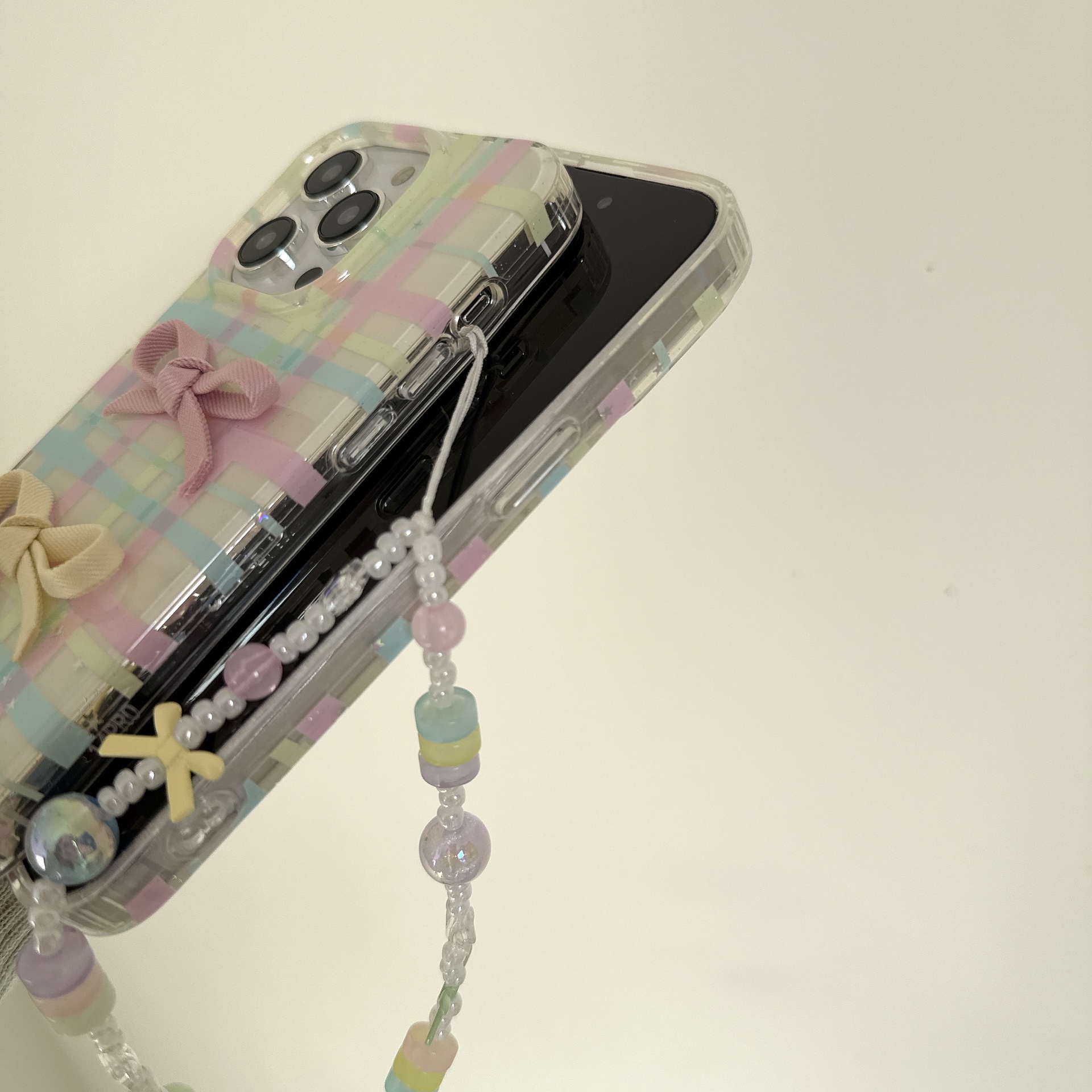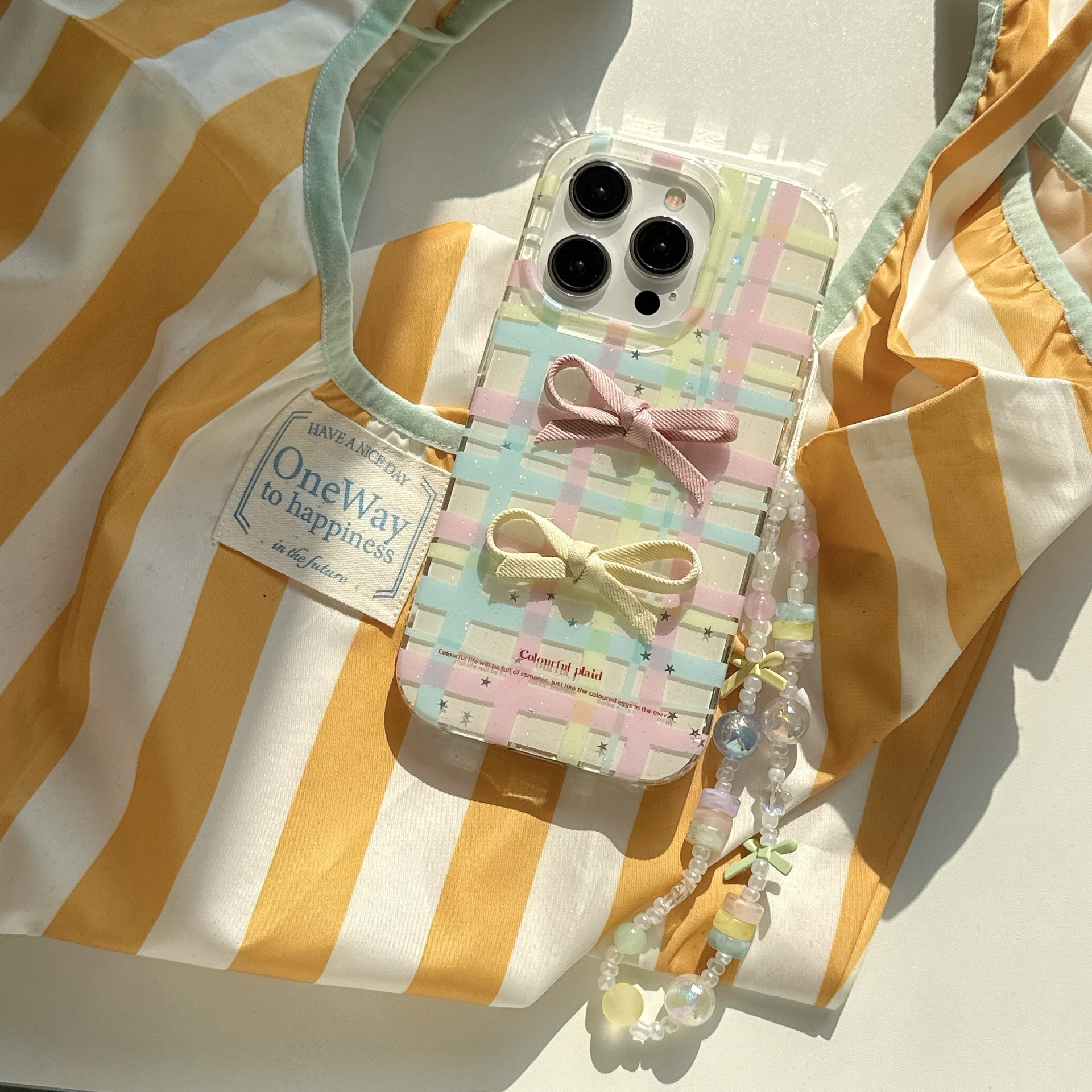Pequeño arco tridimensional a cuadros fresco para Apple 15ProMax funda para teléfono móvil cadena 16Pro 14/13 nuevo 16
