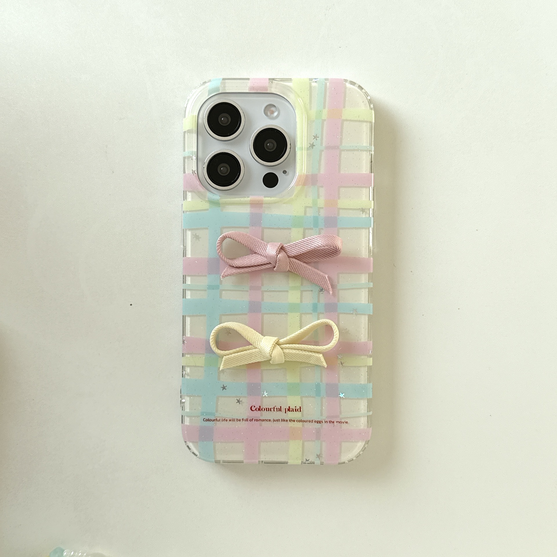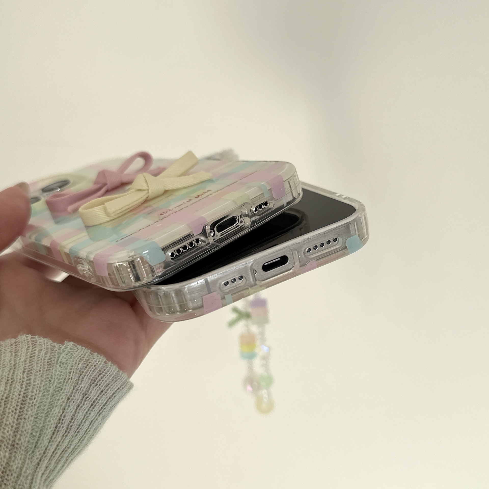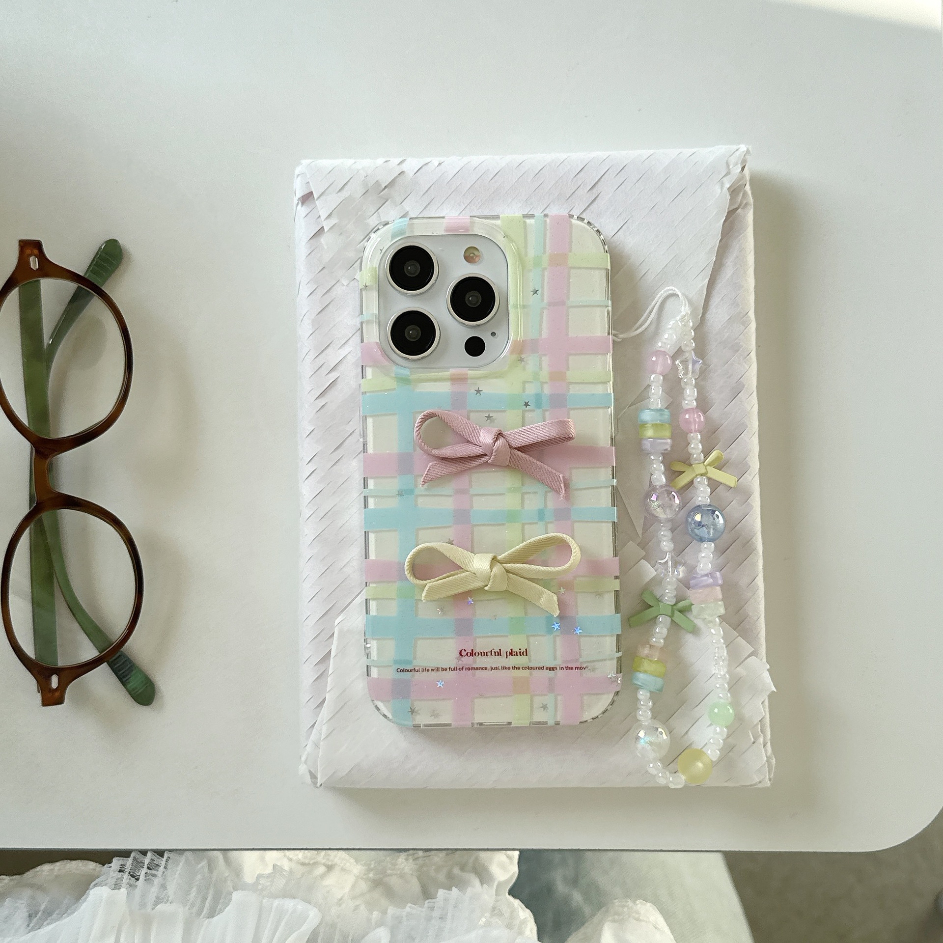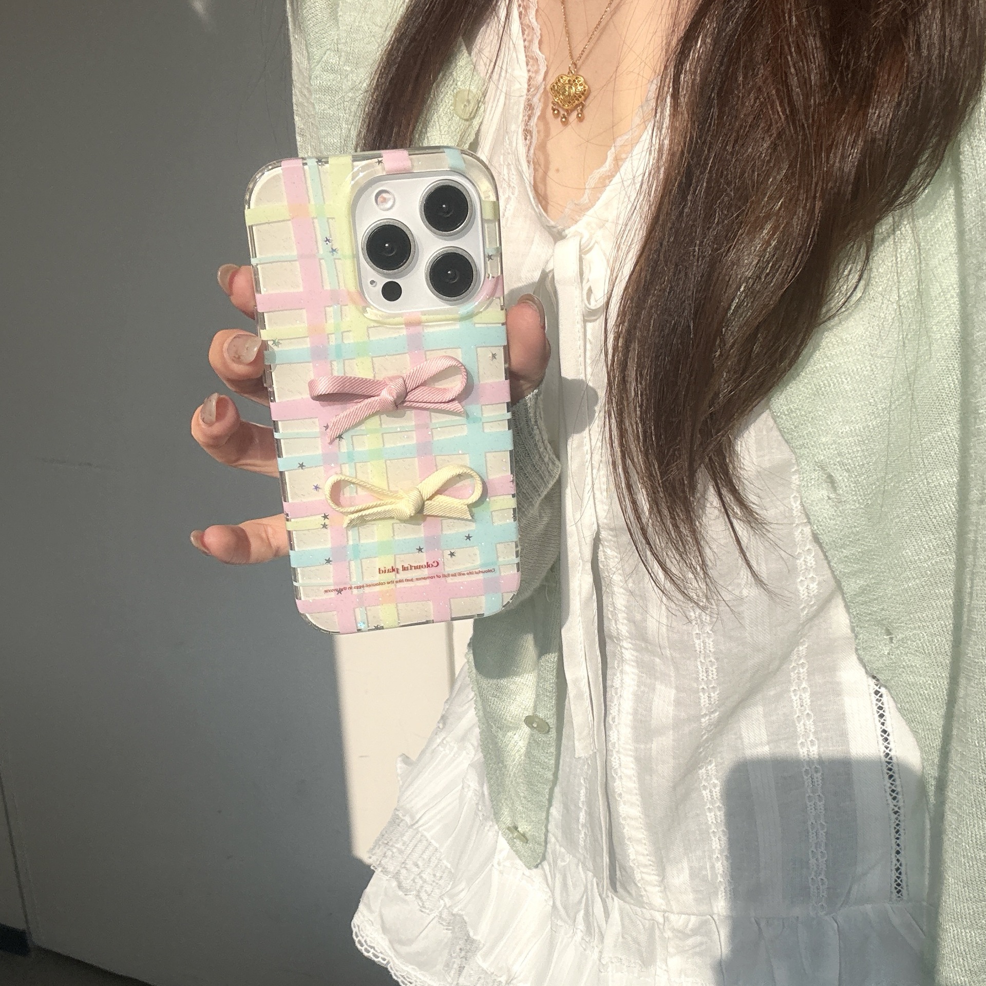 Pequeño arco tridimensional a cuadros fresco para Apple 15ProMax funda para teléfono móvil cadena 16Pro 14/13 nuevo 16
