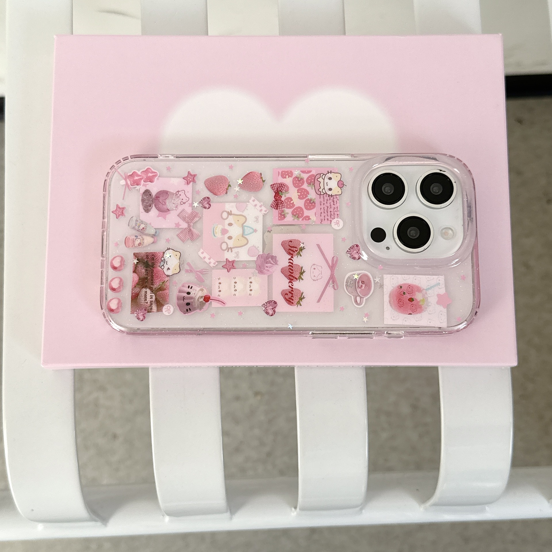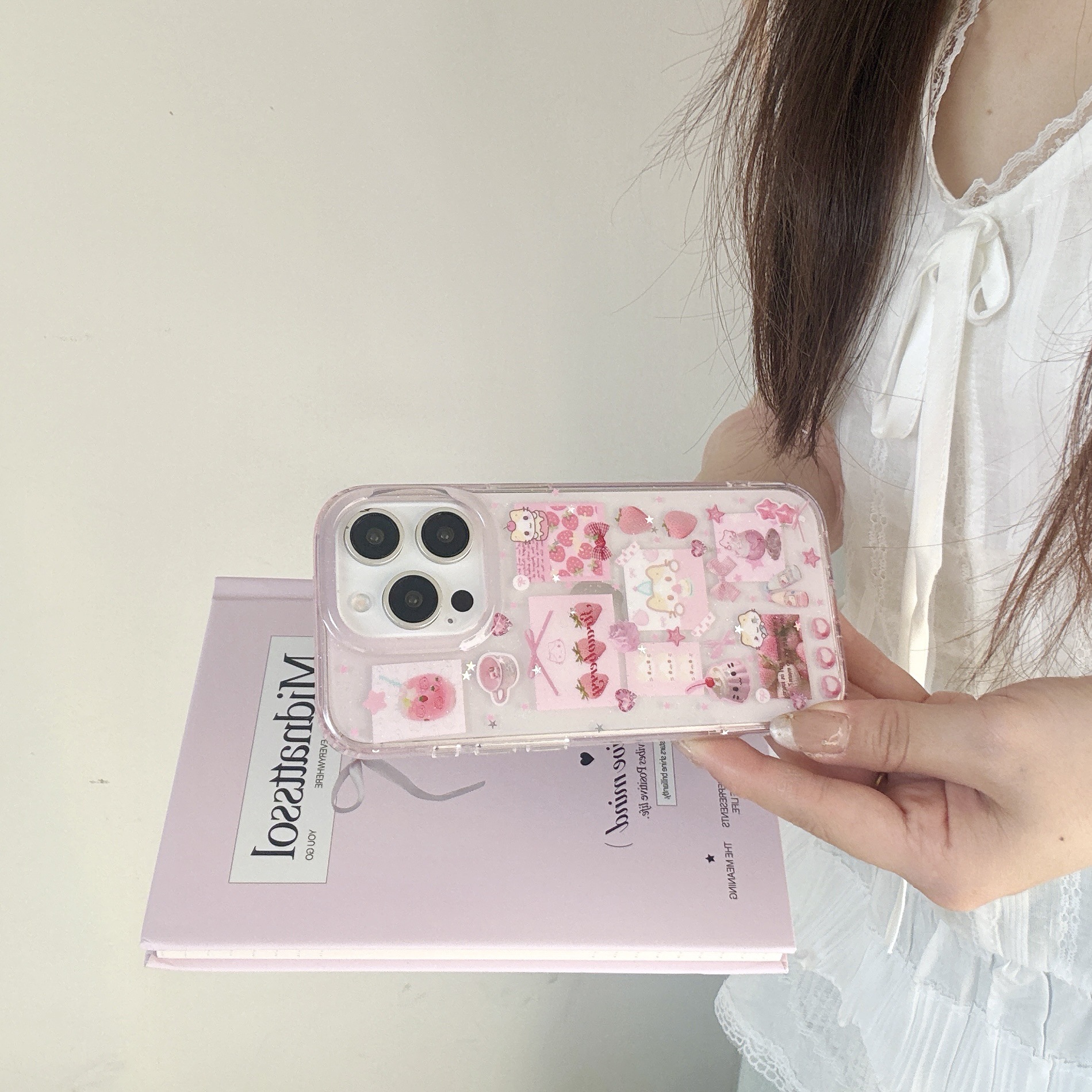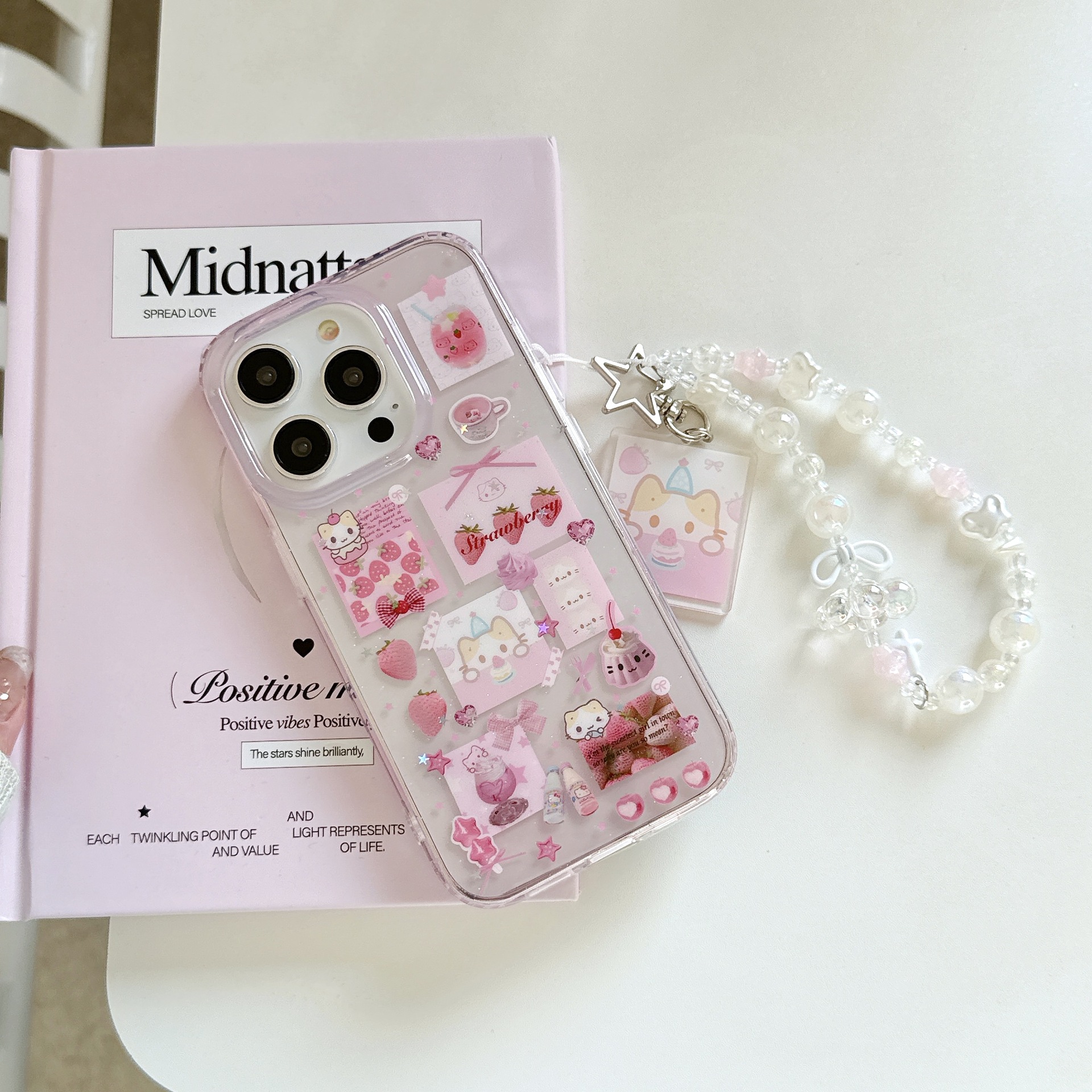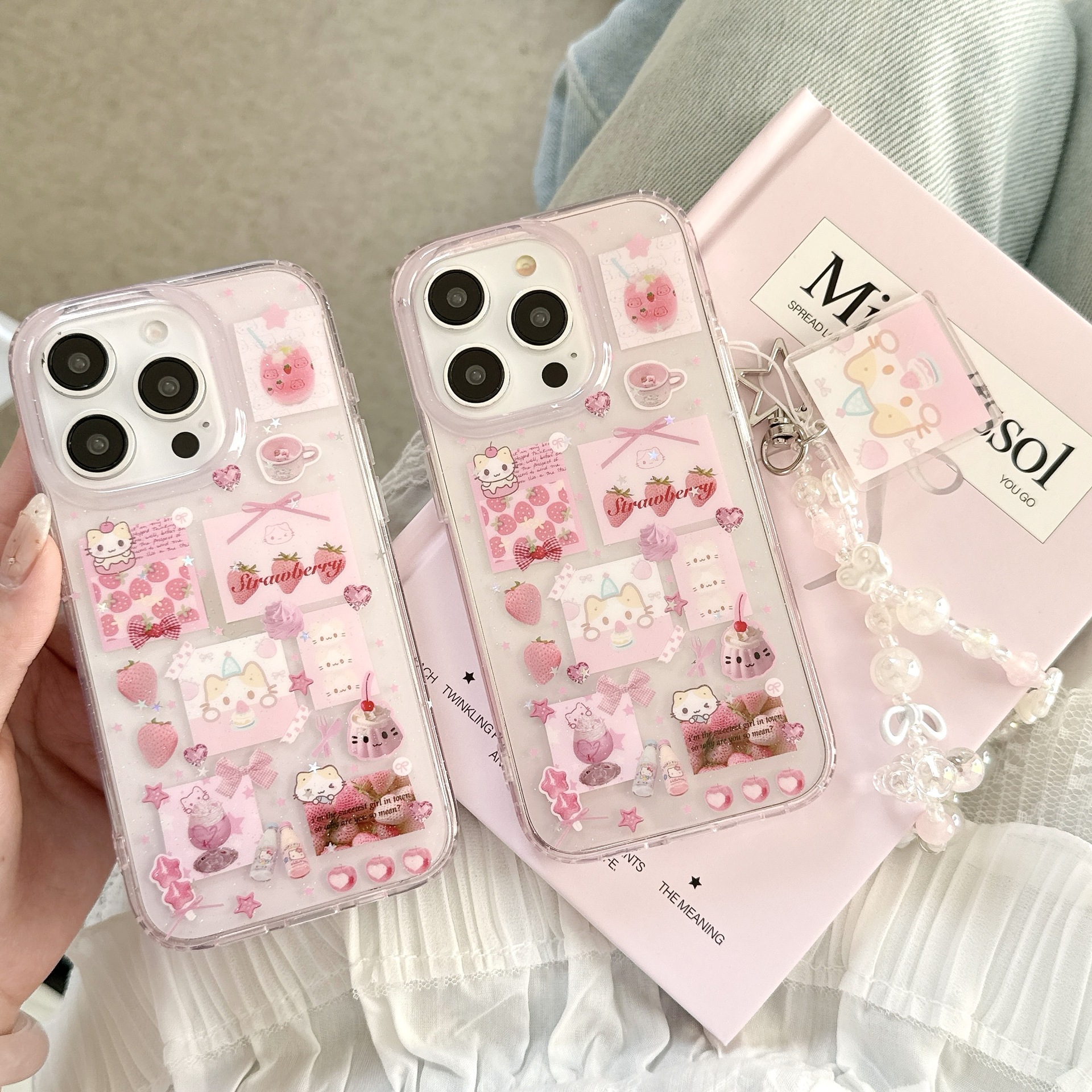 Lindo brillo niña corazón fresa malvaviscos apple 16ProMax funda para teléfono móvil cadena 15Pro 14/13
