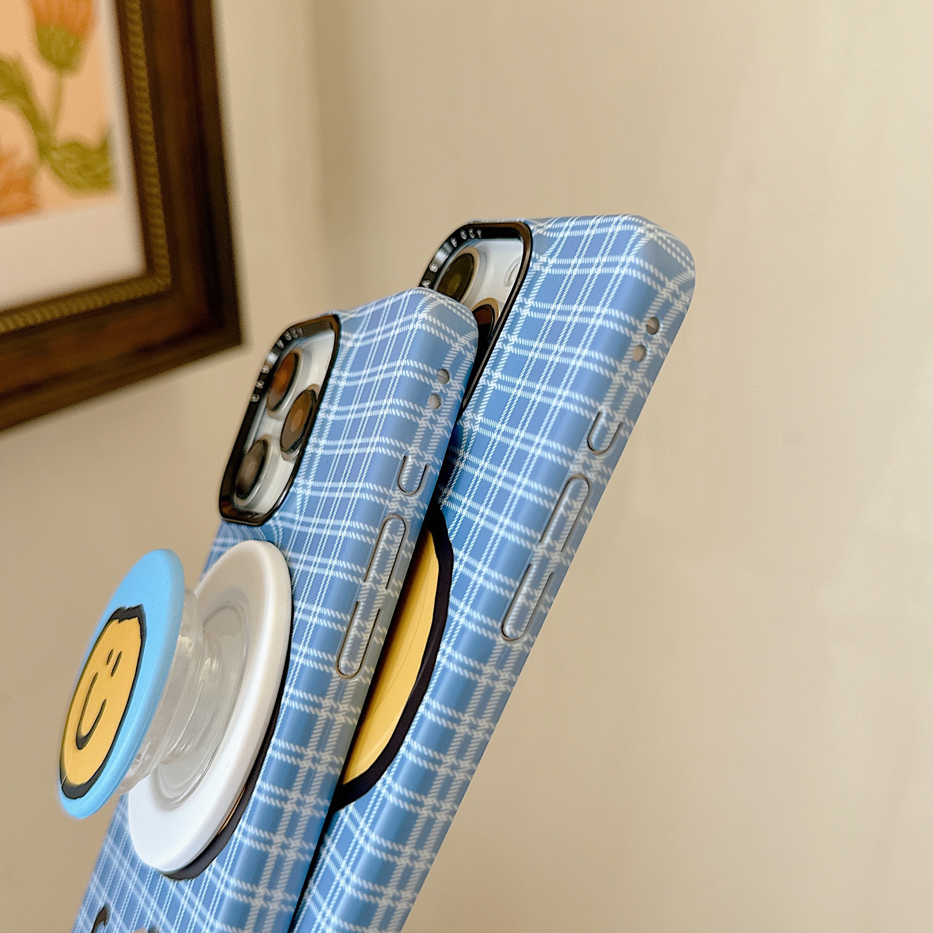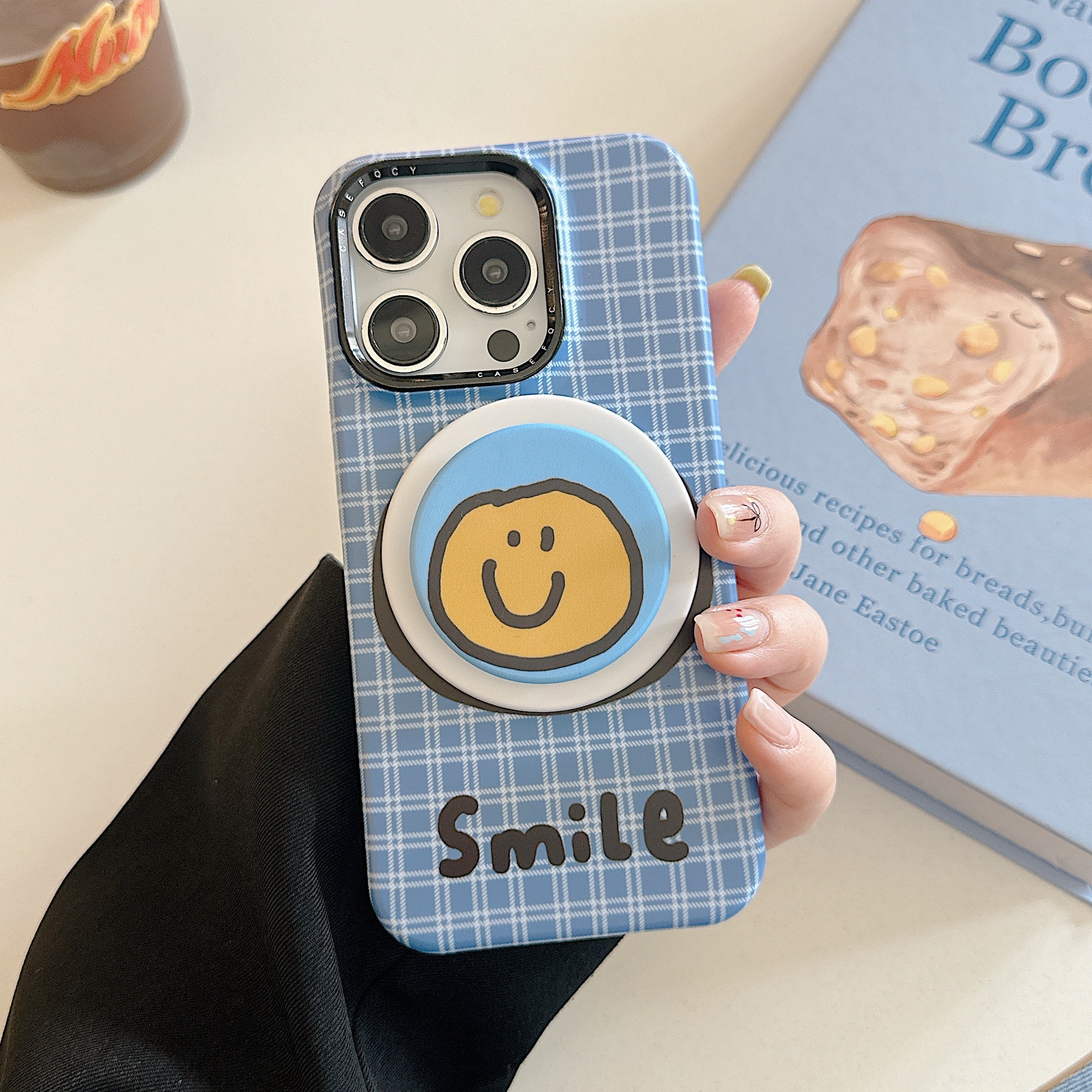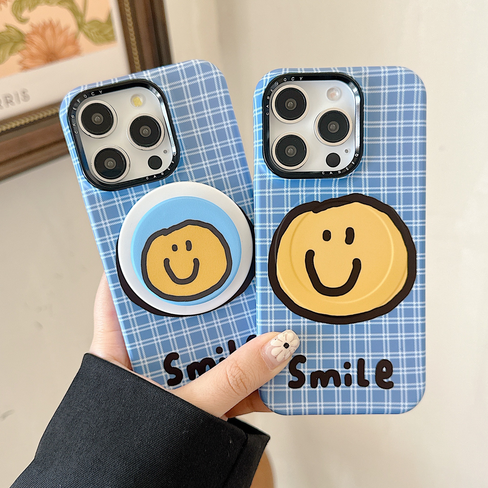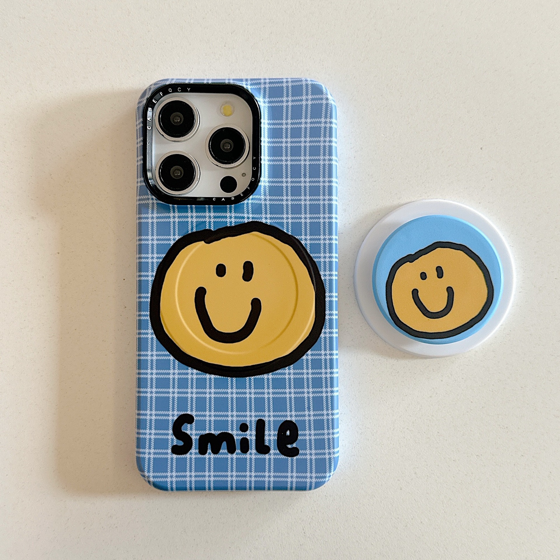 Cáscara sonriente amarilla inglesa a cuadros azules con succión magnética KKK,Soporte magnético a cuadros azules, cara sonriente amarilla inglesa KKK