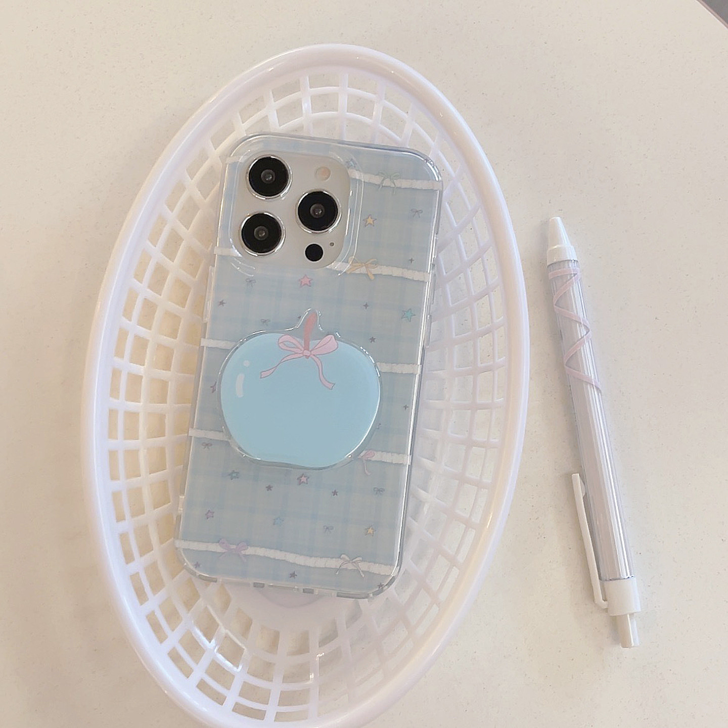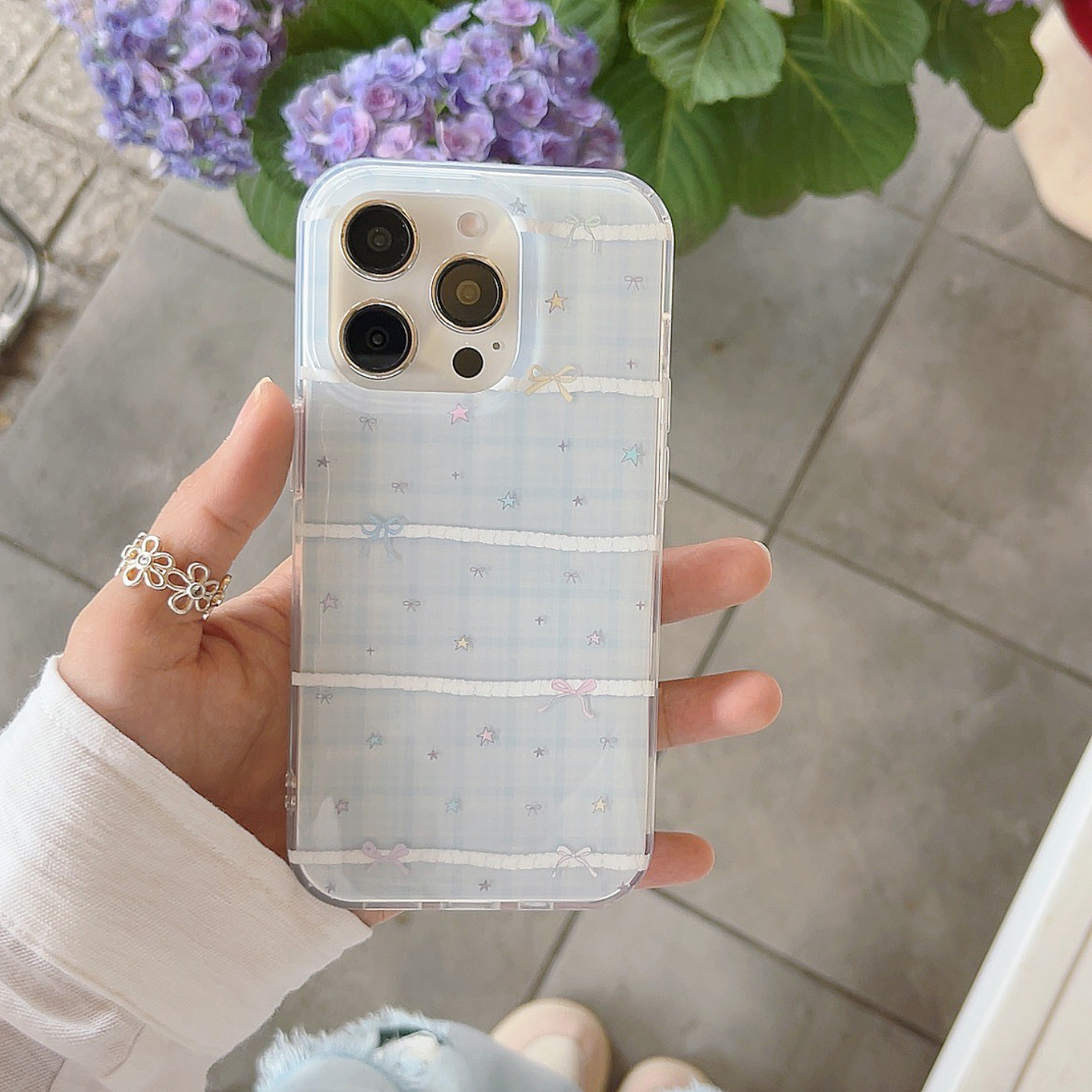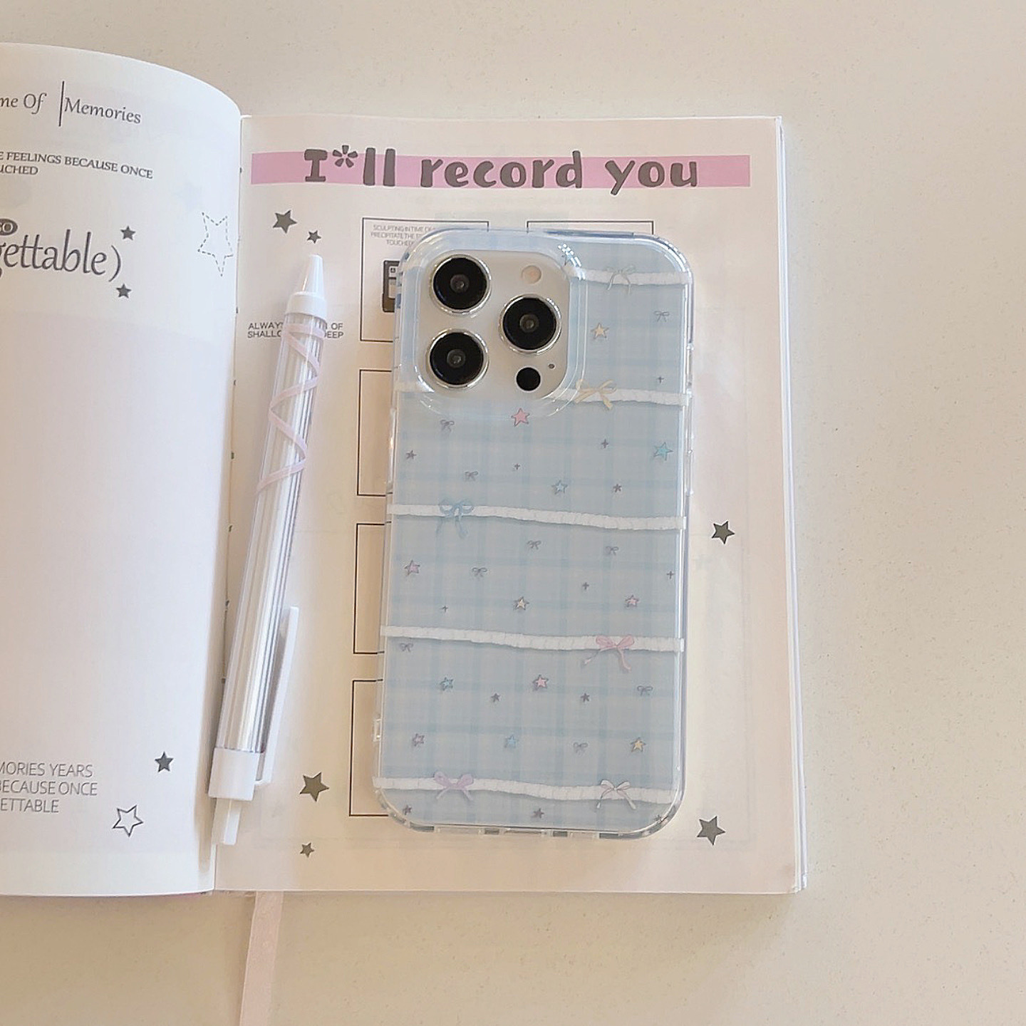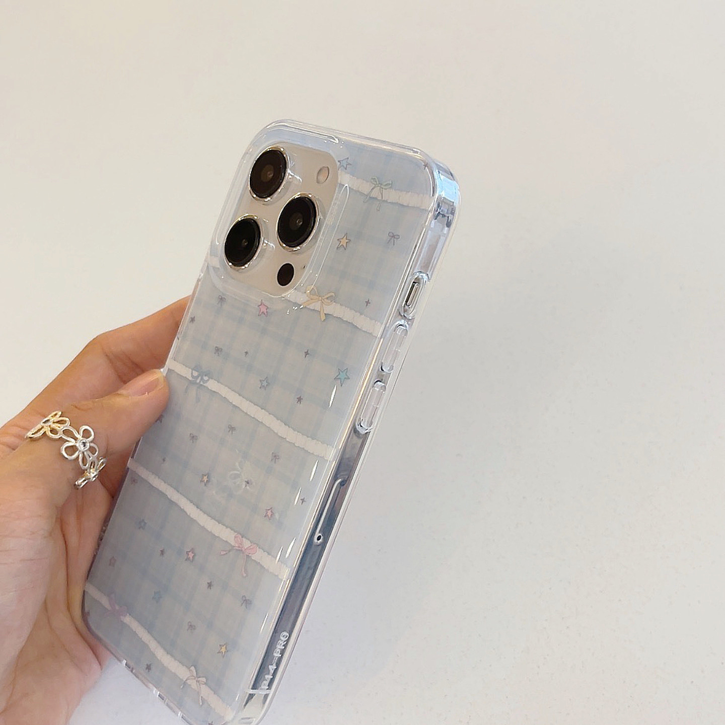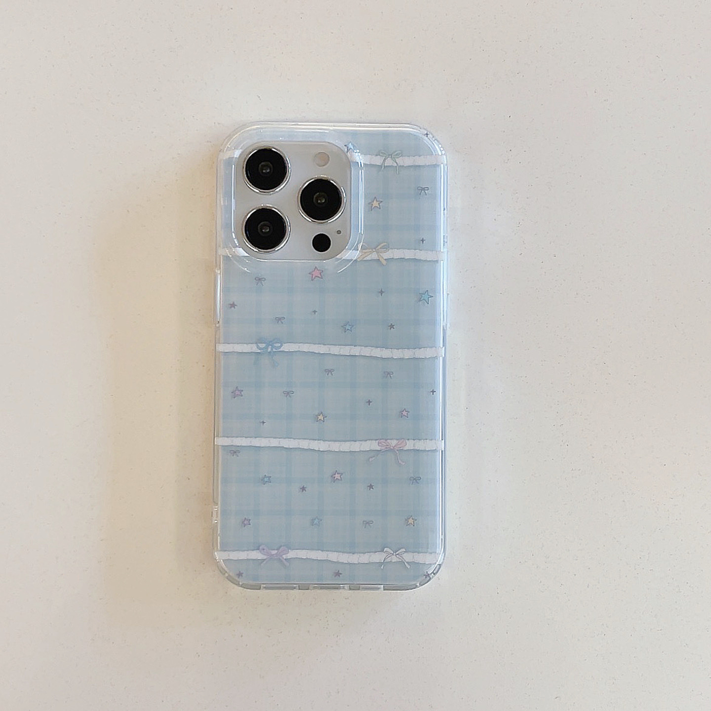 Pequeña serie coreana de estrellas de colores con costuras de cuadros azules para Apple 15ProMax funda para teléfono móvil 16Pro nuevo 14/13
