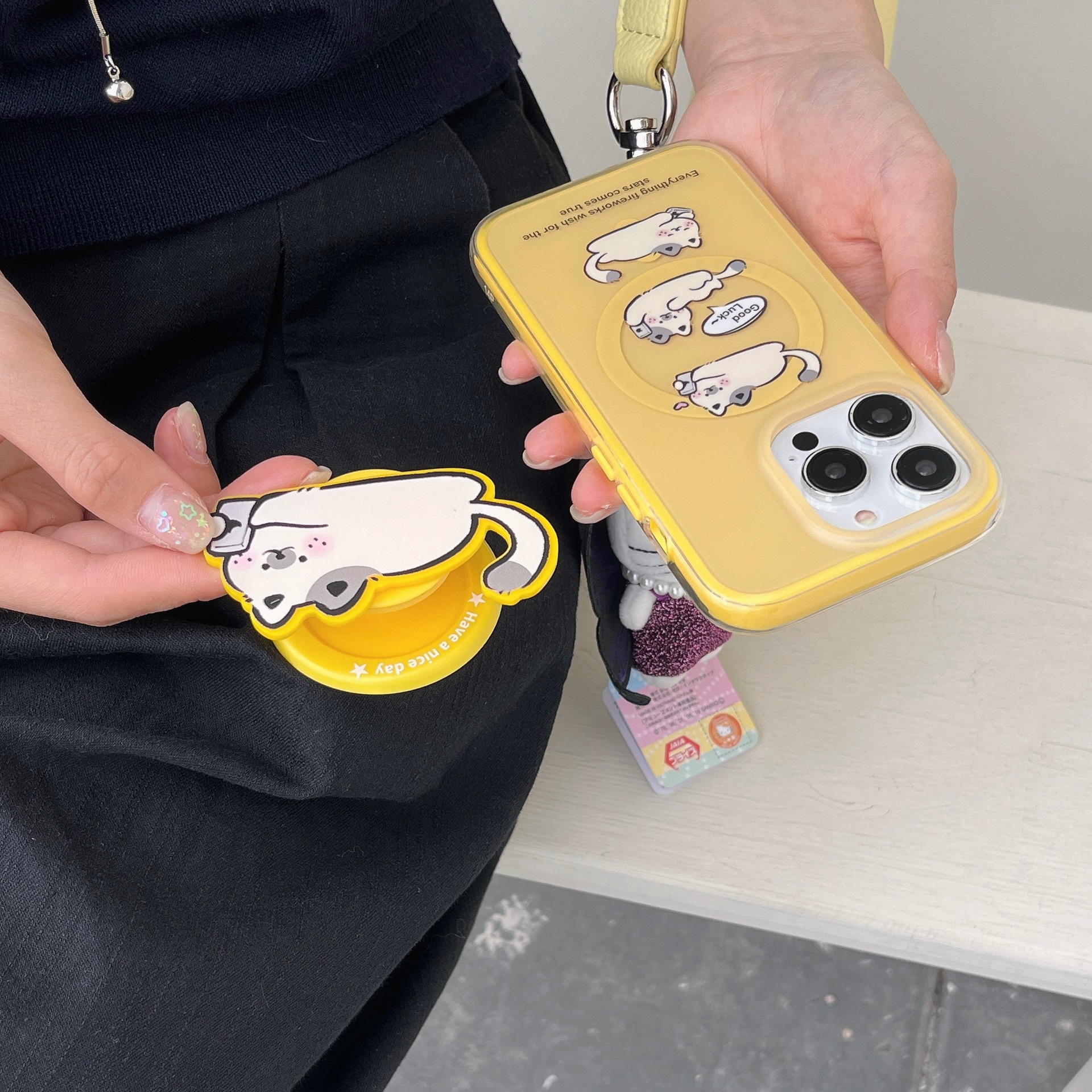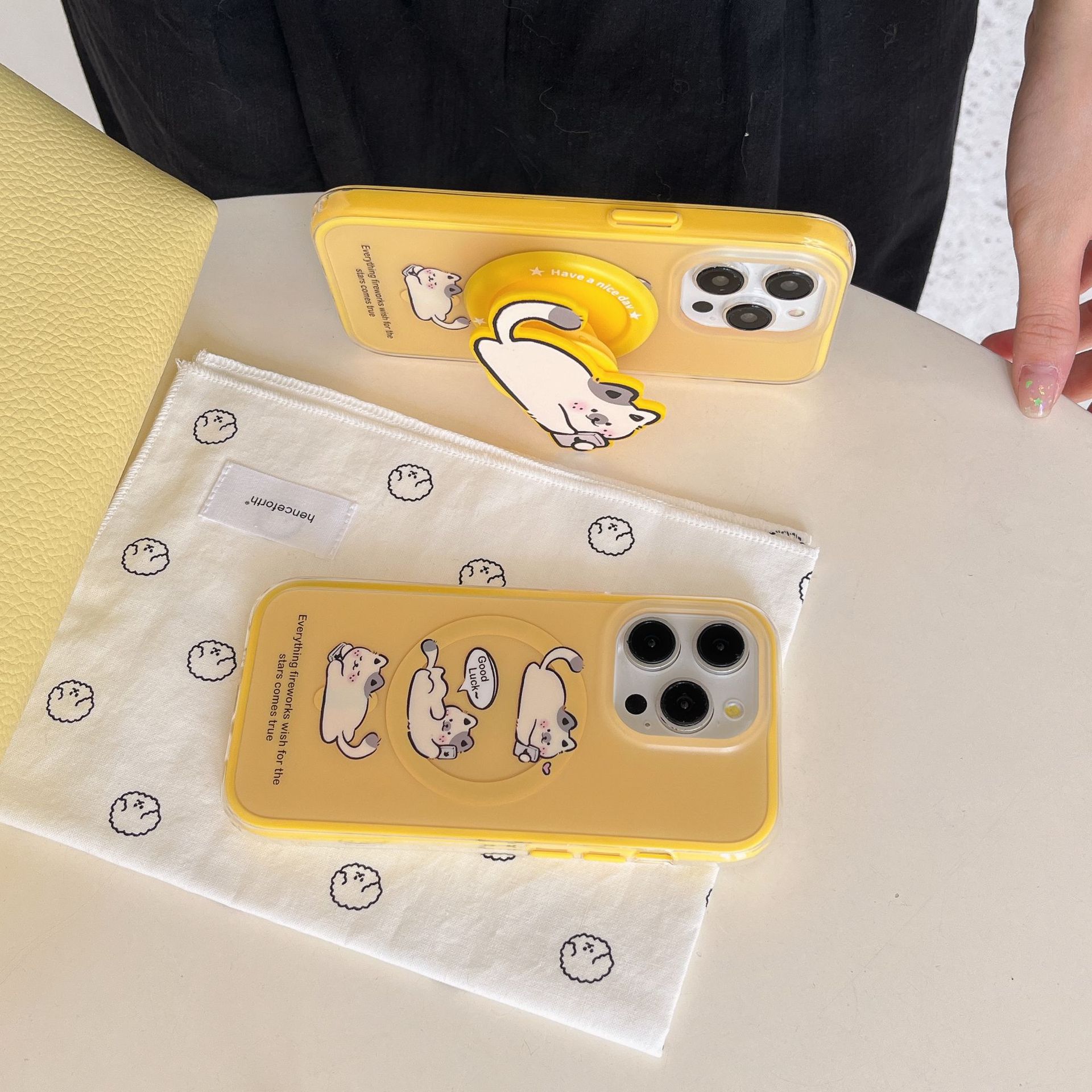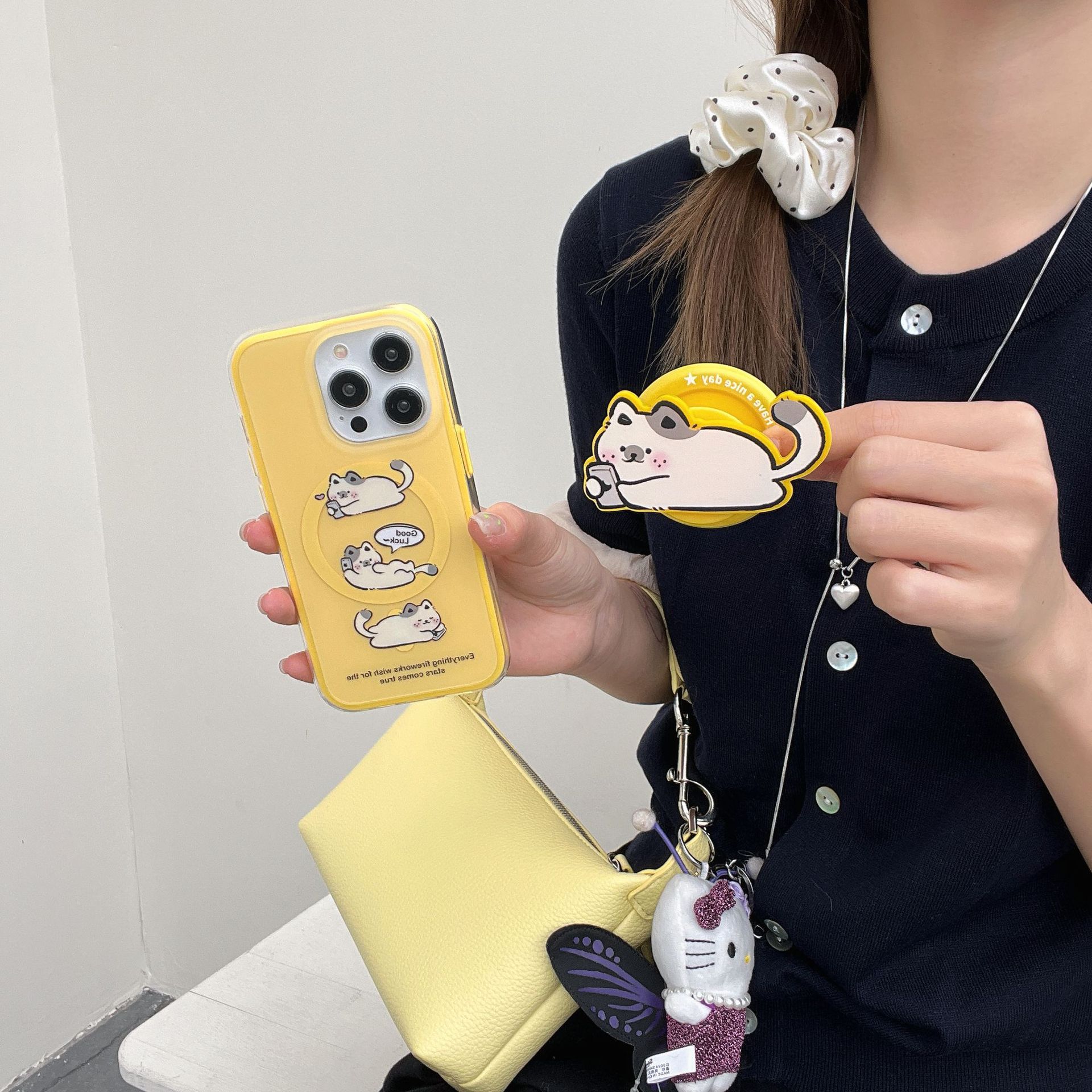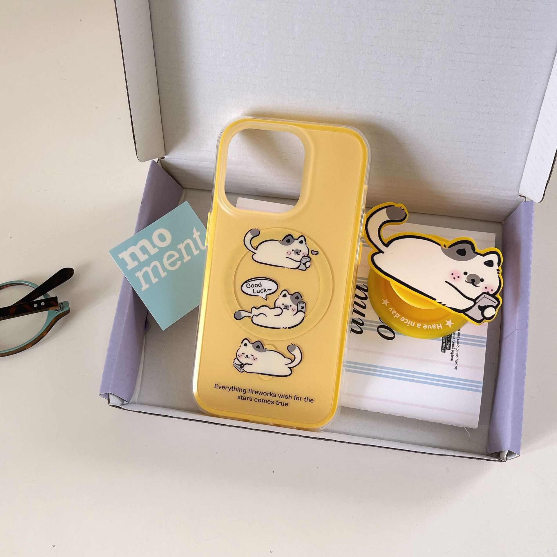 Monocasón magnético-dos en uno-jugando teléfono móvil tres pequeños gatos blancos qj,Soporte magnético dos en uno para jugar con tres pequeños gatos blancos qj