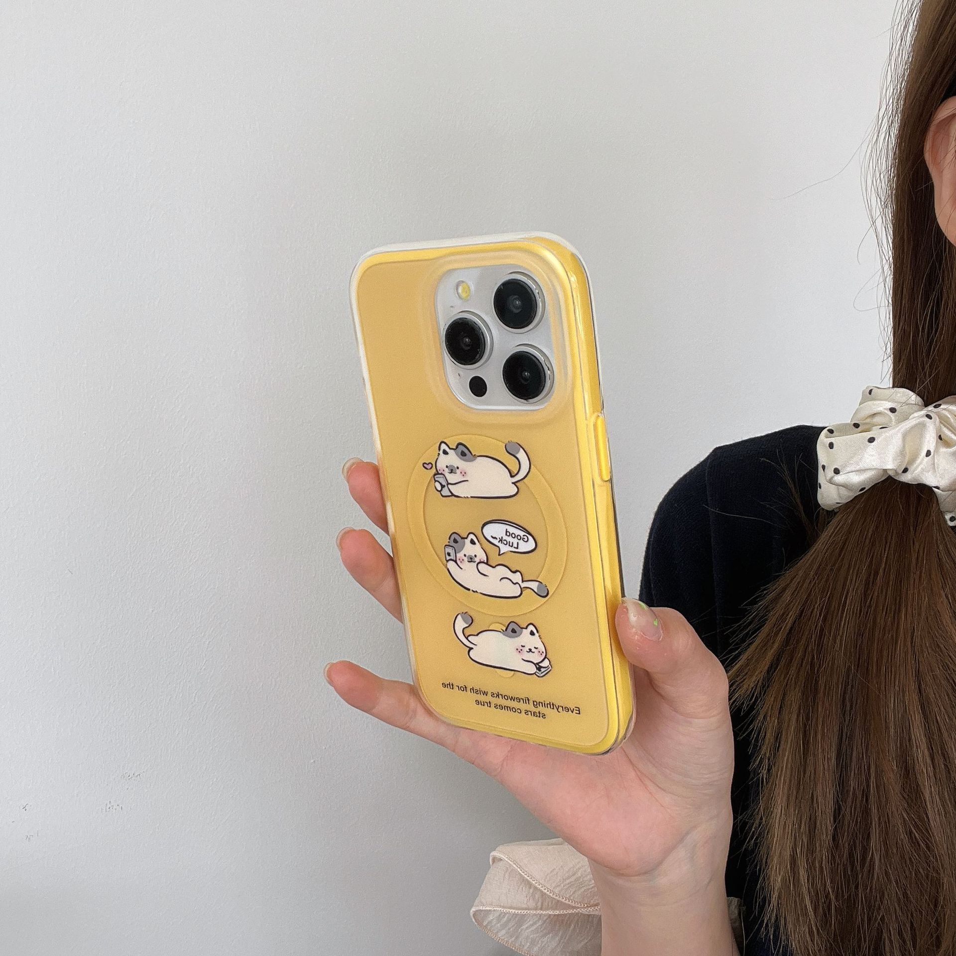 Divertido gato magnético de dibujos animados para iPhone15Pro Apple 16proMax funda para teléfono móvil 14/13 nuevo 15PM