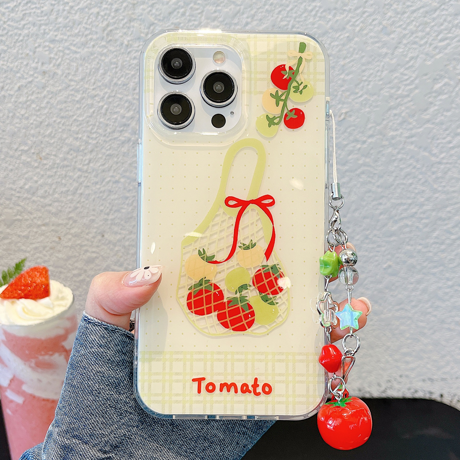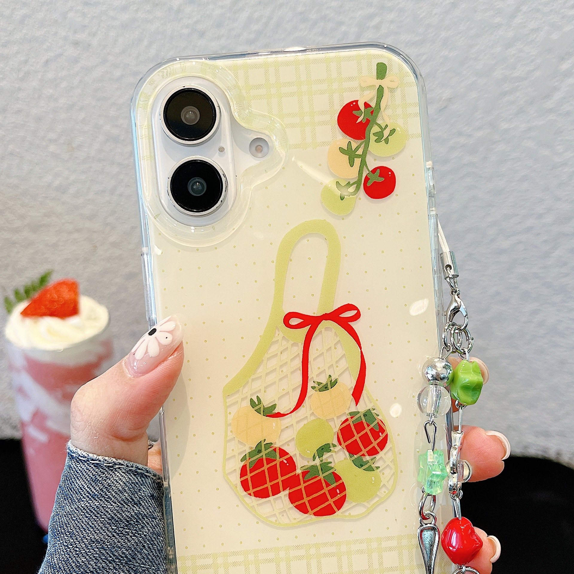 La fruta a cuadros de color de nicho es adecuada para Apple 15/16 funda para teléfono móvil 14Pro colgante 13 verano 16ProMax mujer