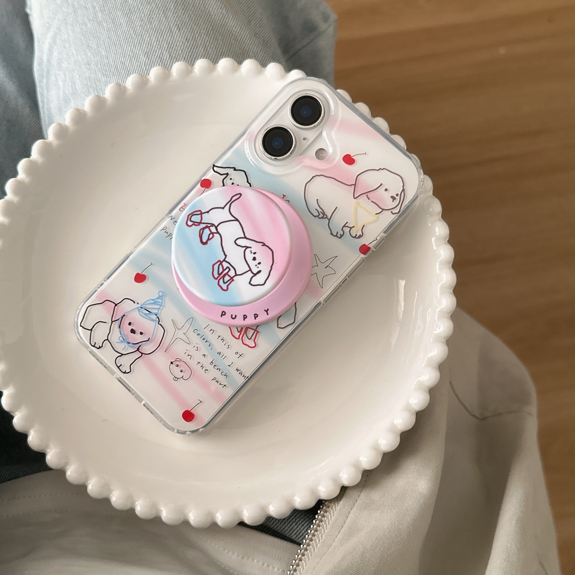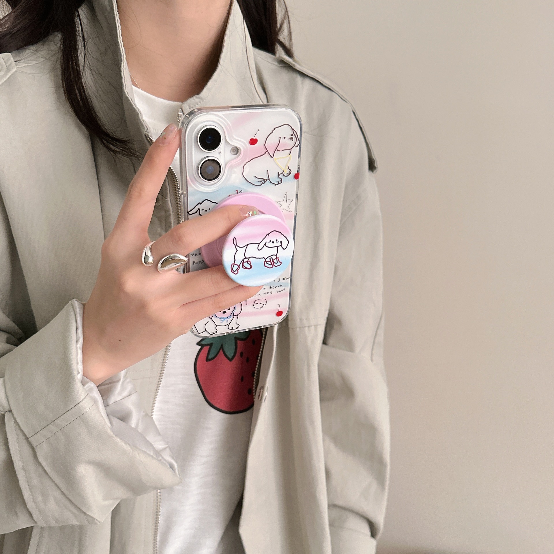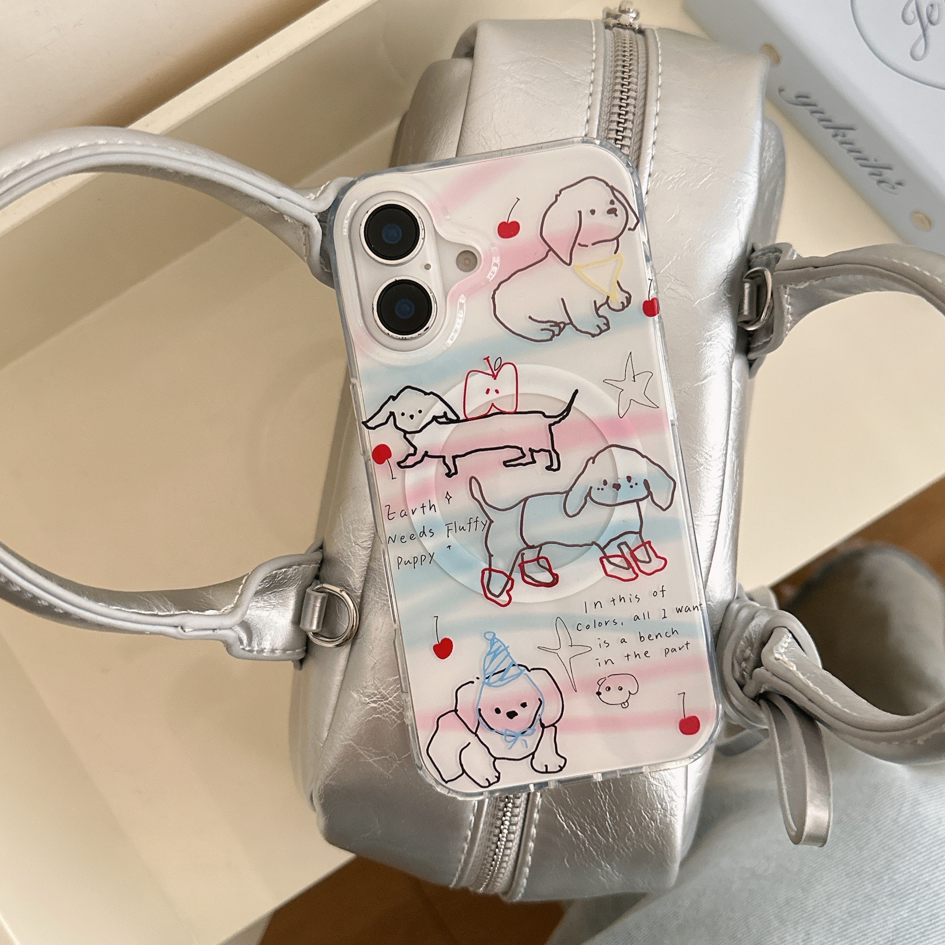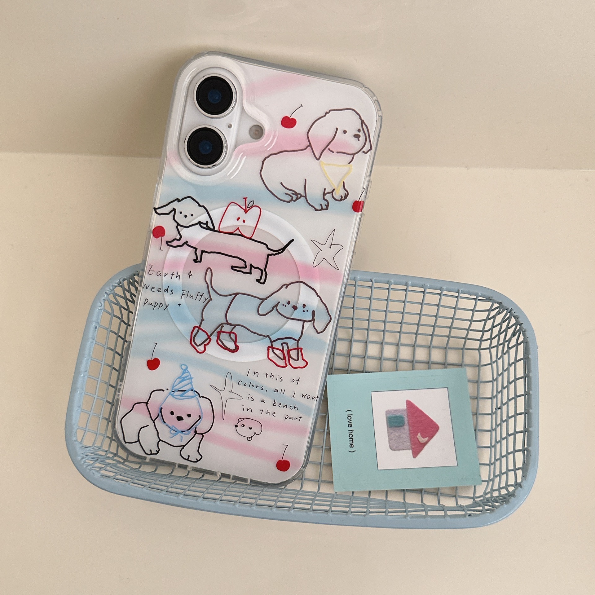 Cachorro de línea linda de dibujos animados para Apple 16ProMax funda para teléfono 15Pro simple 14PM femenino 15/16PM
