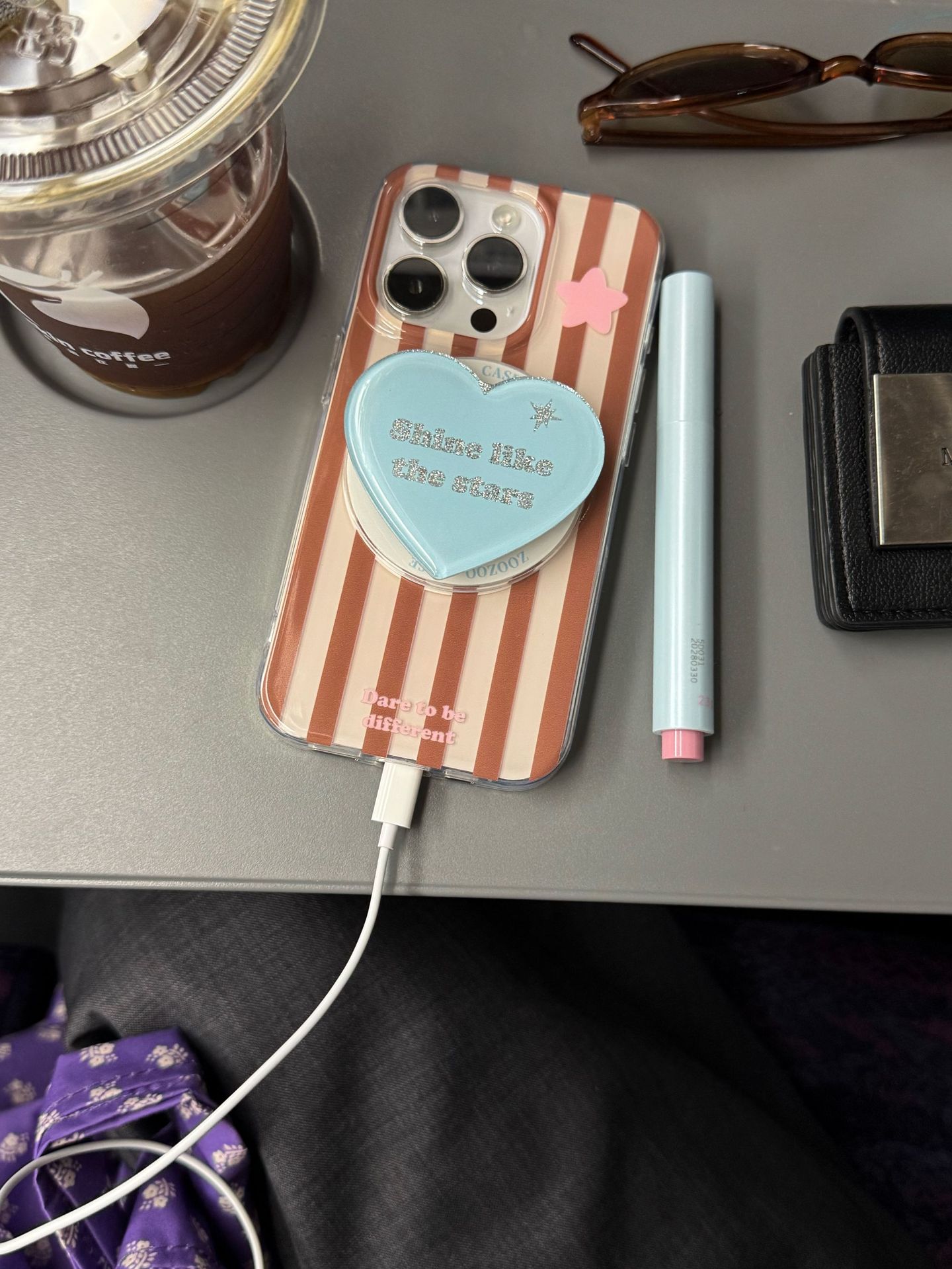 Lente magnética de una sola concha-estrella de rayas verticales marrones LEO,Soporte magnético de rayas verticales marrones estrella LEO