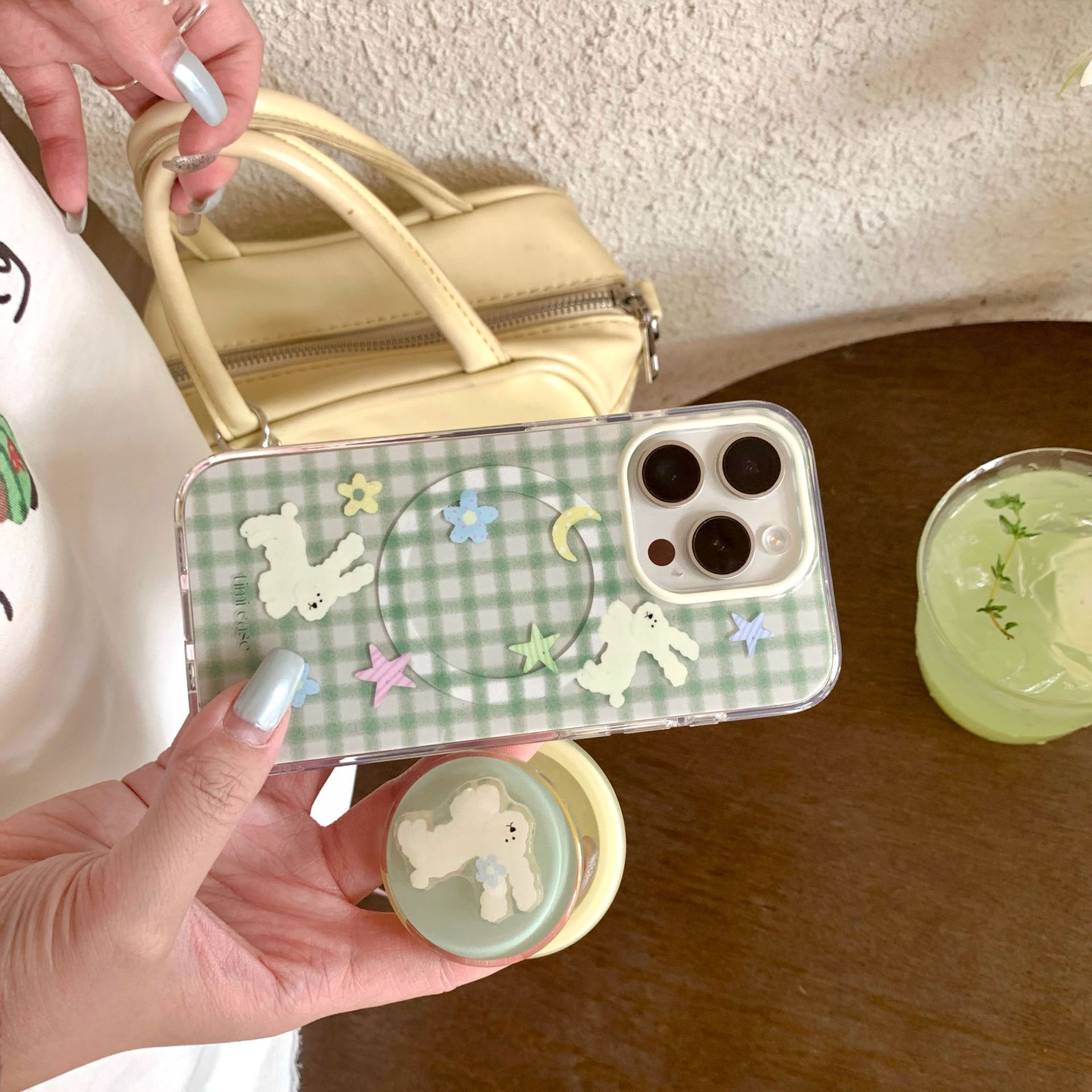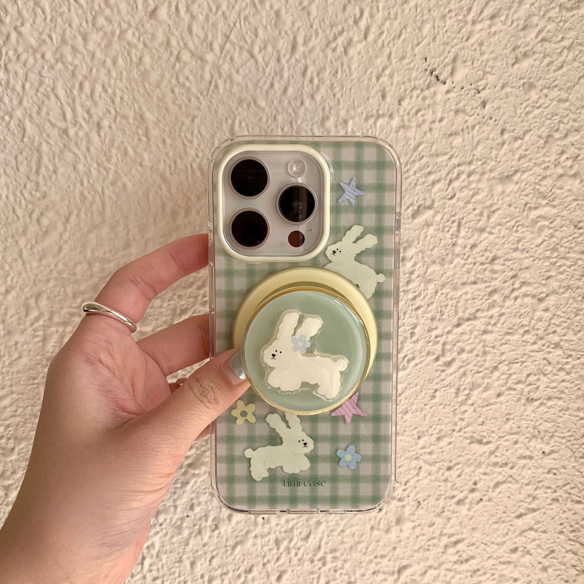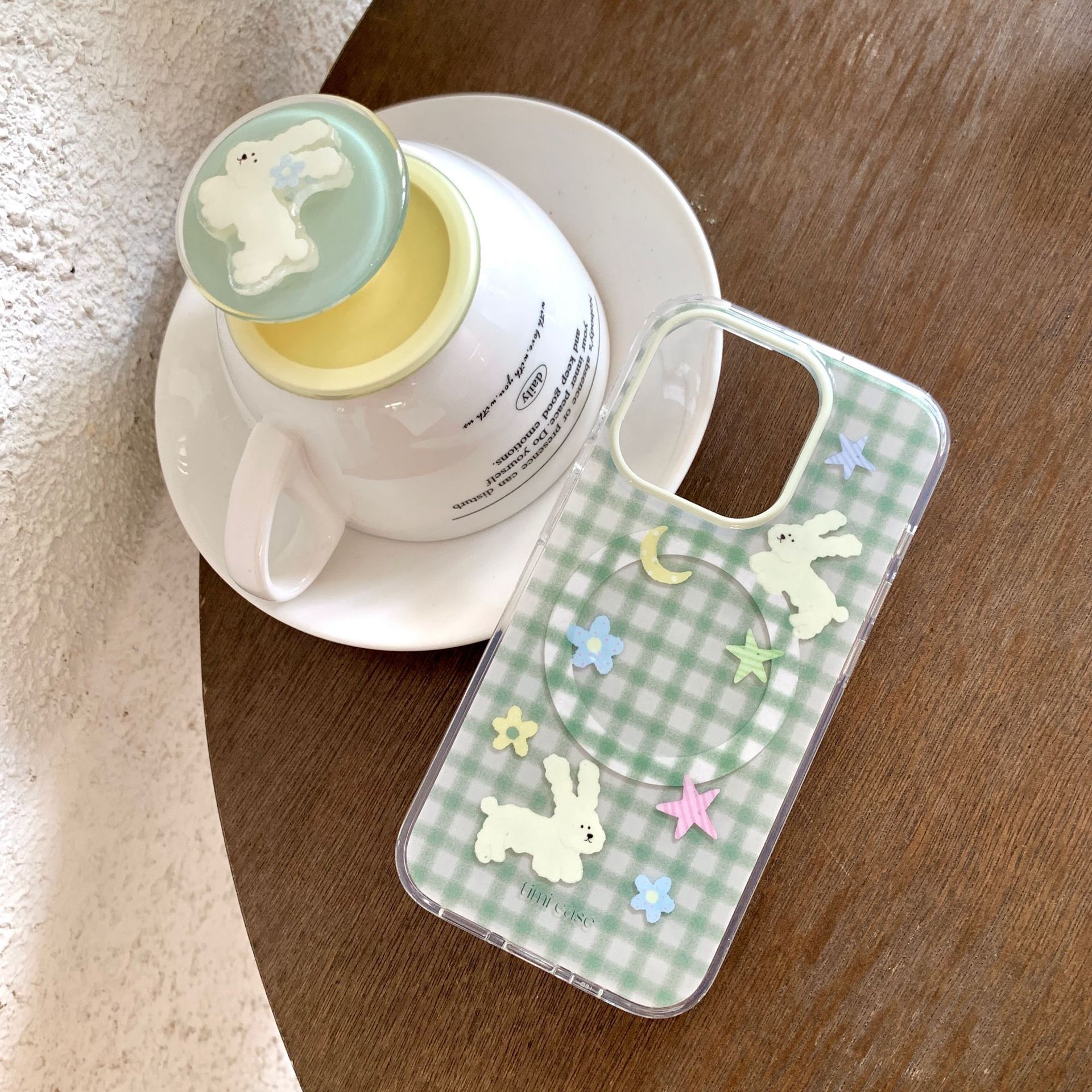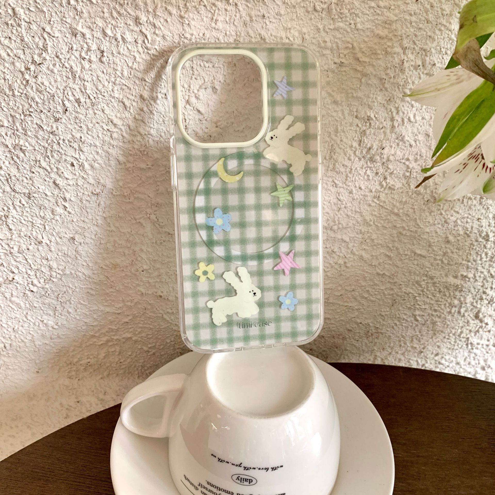 Tape magnético monocasco-verde a cuadros luna estrella flor conejo TIMI,Soporte magnético a cuadros verdes luna estrella flor conejo TIMI
