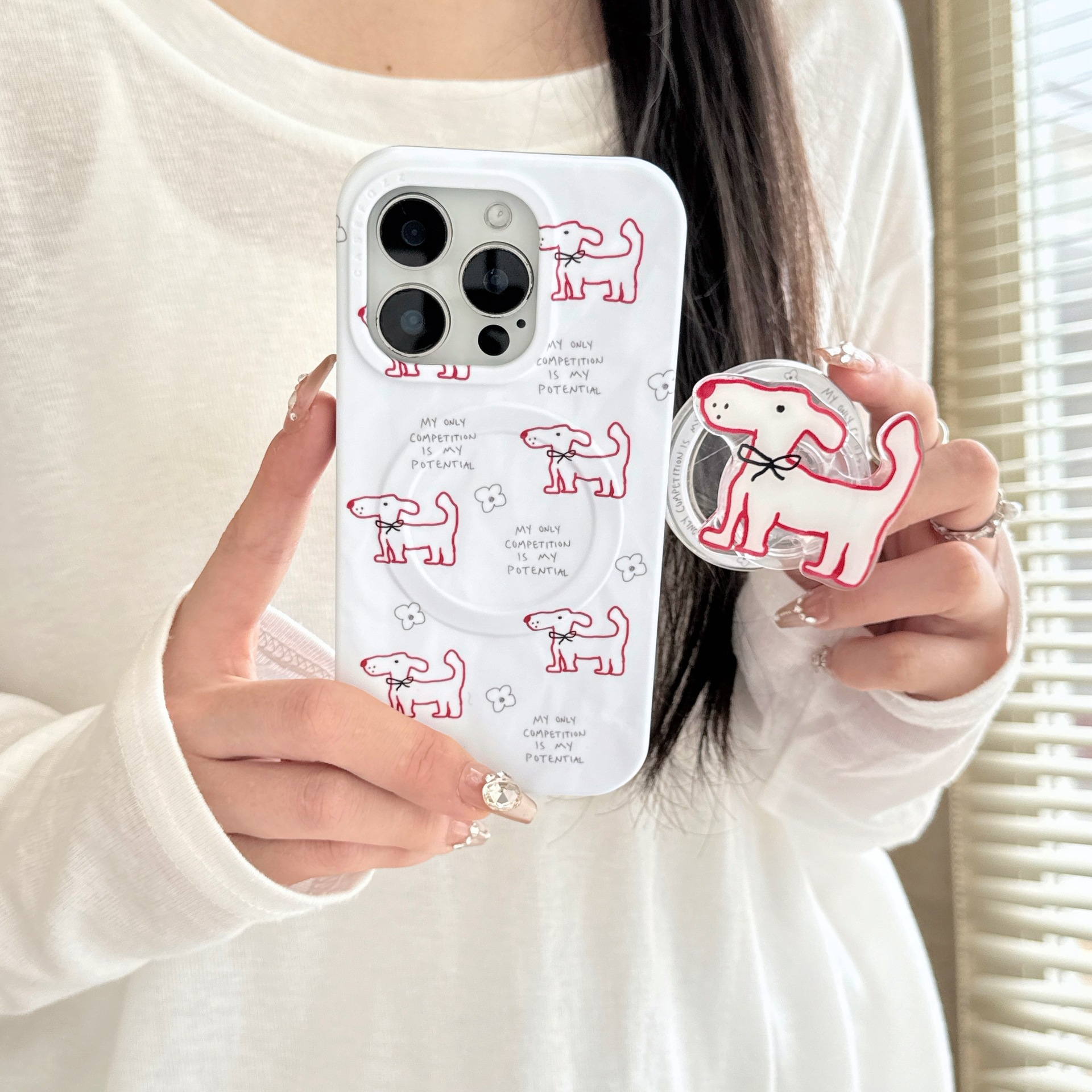 Dibujos animados línea inglesa salchicha perro apple 15ProMax funda para teléfono móvil 16Pro atracción magnética 14/13 flor 16