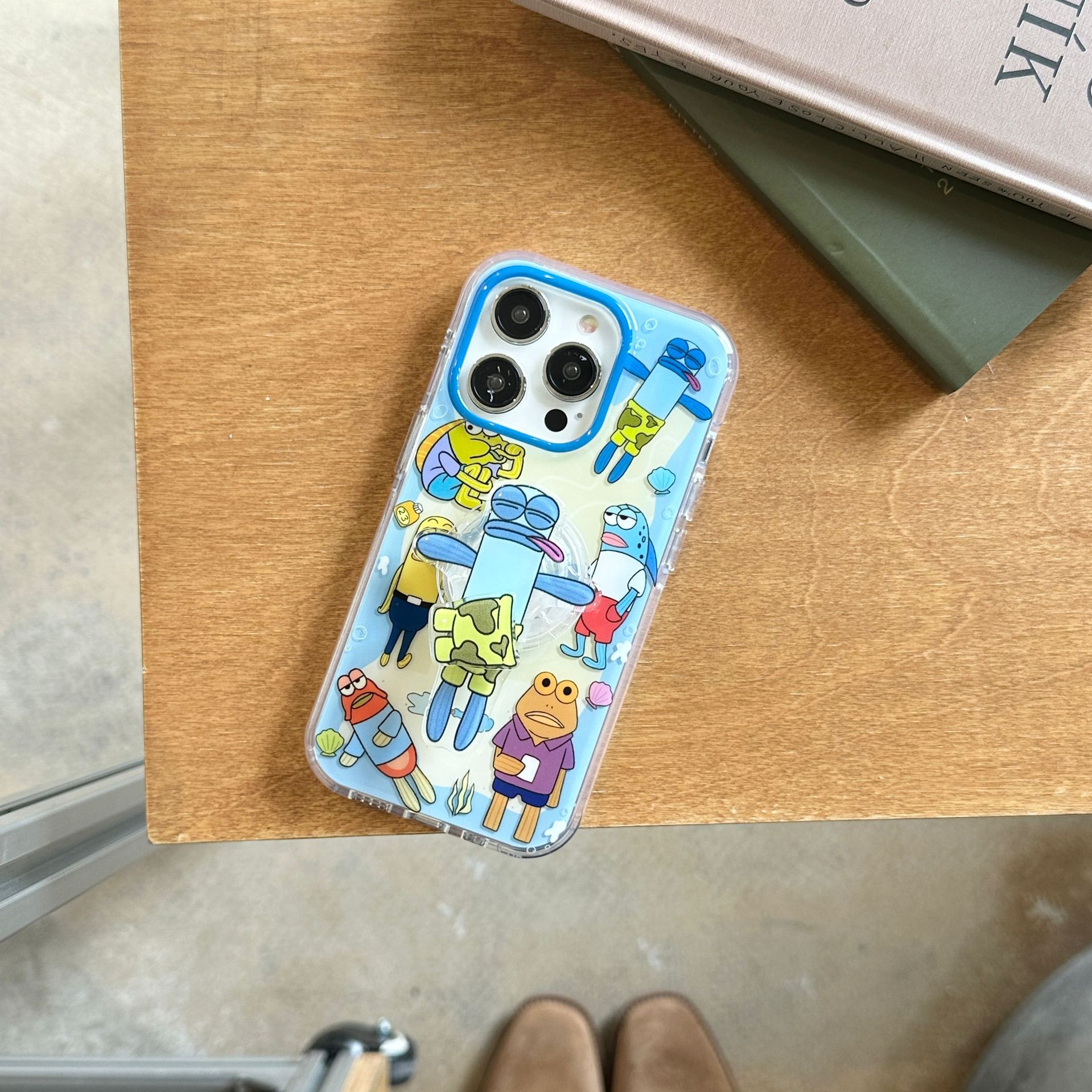 Divertido pez feo de dibujos animados para 16ProMax Apple 14 funda para teléfono móvil iphone15PM soporte giratorio 16 femenino 13