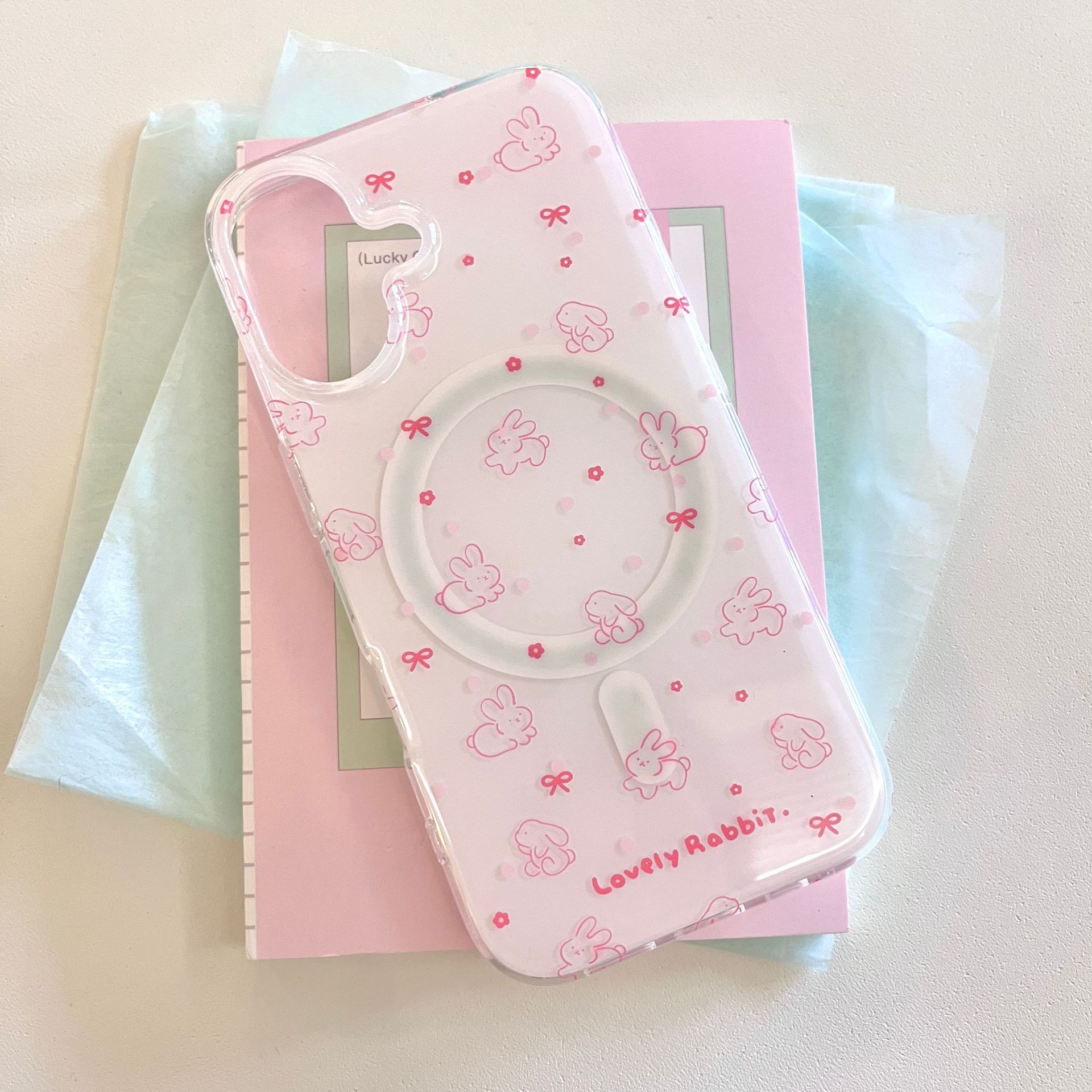 | Colores | Until magnético de una sola concha-fondo blanco pantalla completa línea de lunares en polvo conejo FP,Soporte magnético fondo blanco pantalla completa línea de lunares rosa conejo FP |