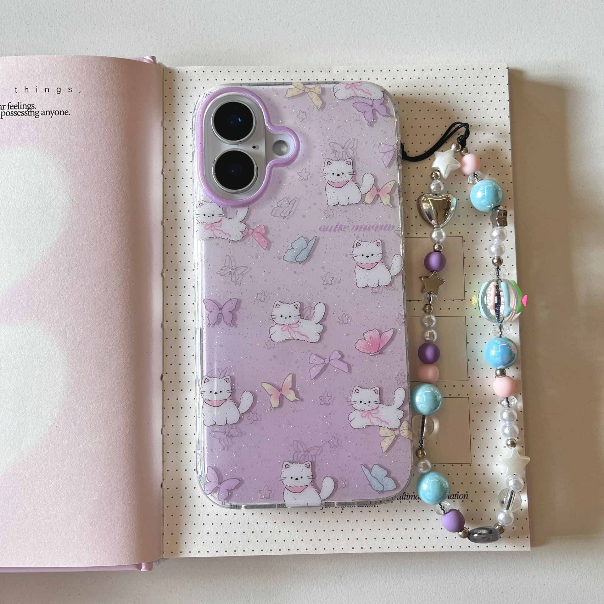 Girl ins brillo mariposa kt para iphone15 soporte 16ProMax funda para teléfono móvil Apple 13/14 nuevo