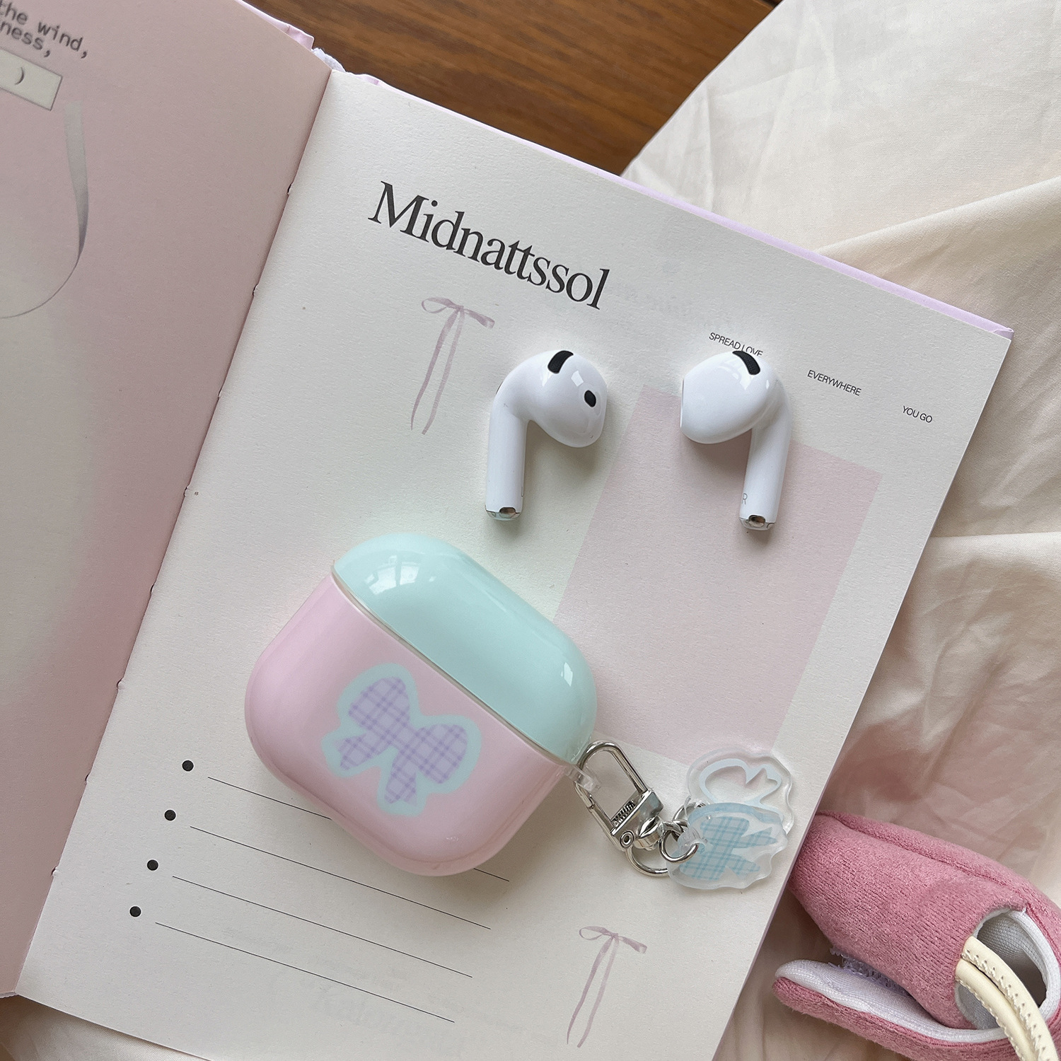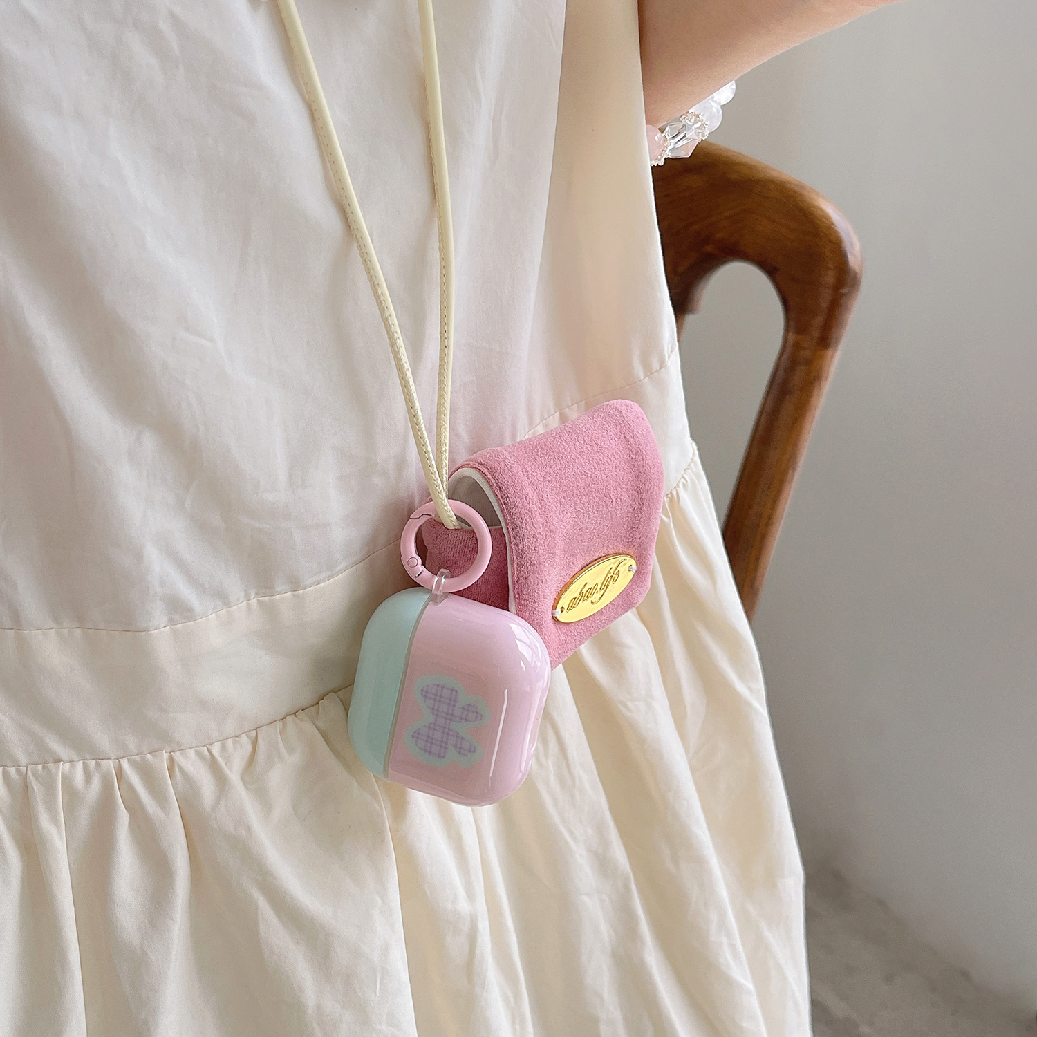 Lazo rosa y verde para Airpods1/2da generación para auriculares Colgante Pro2 Nueva 3/4 generación airpodsPro Mujer