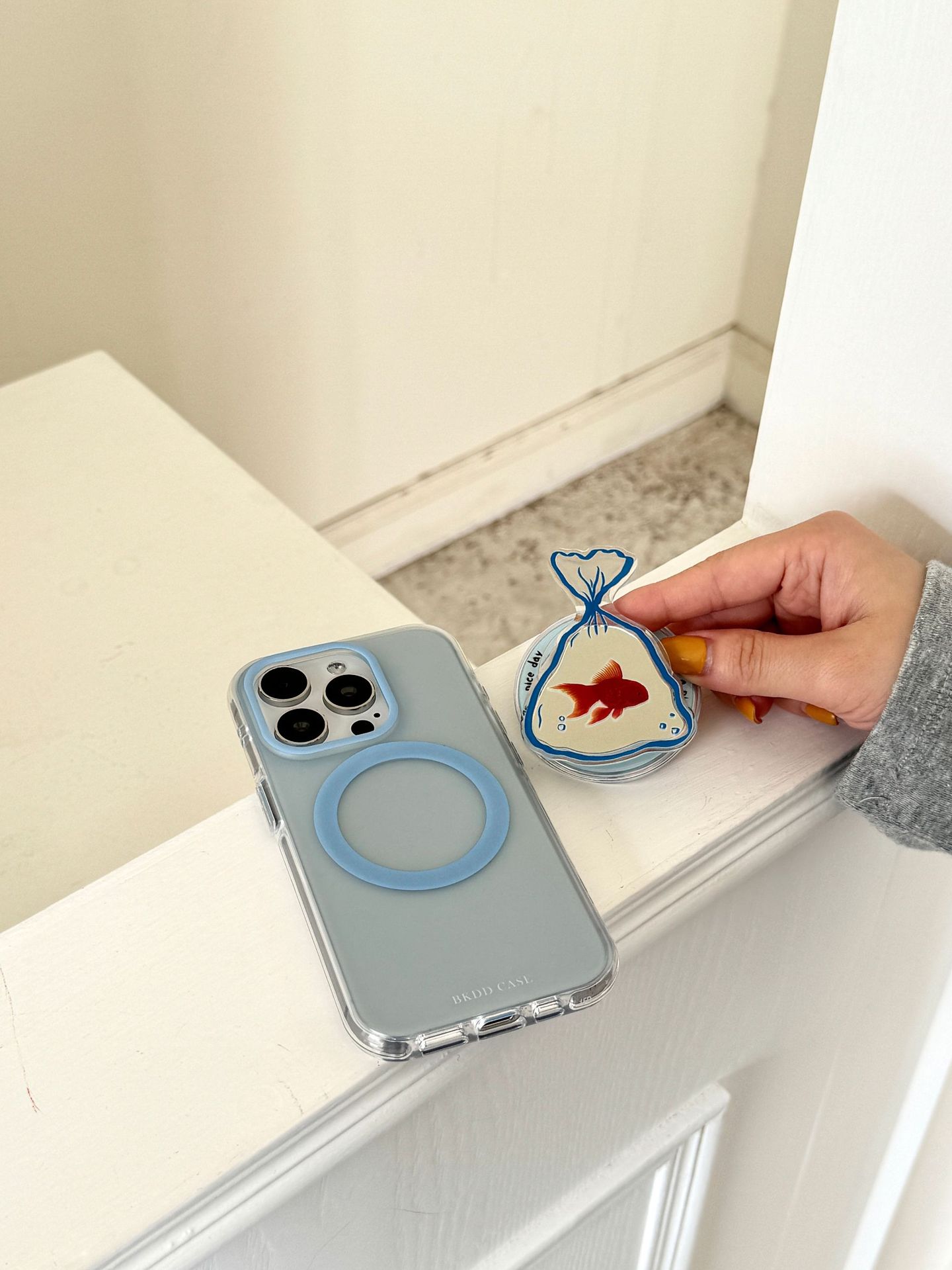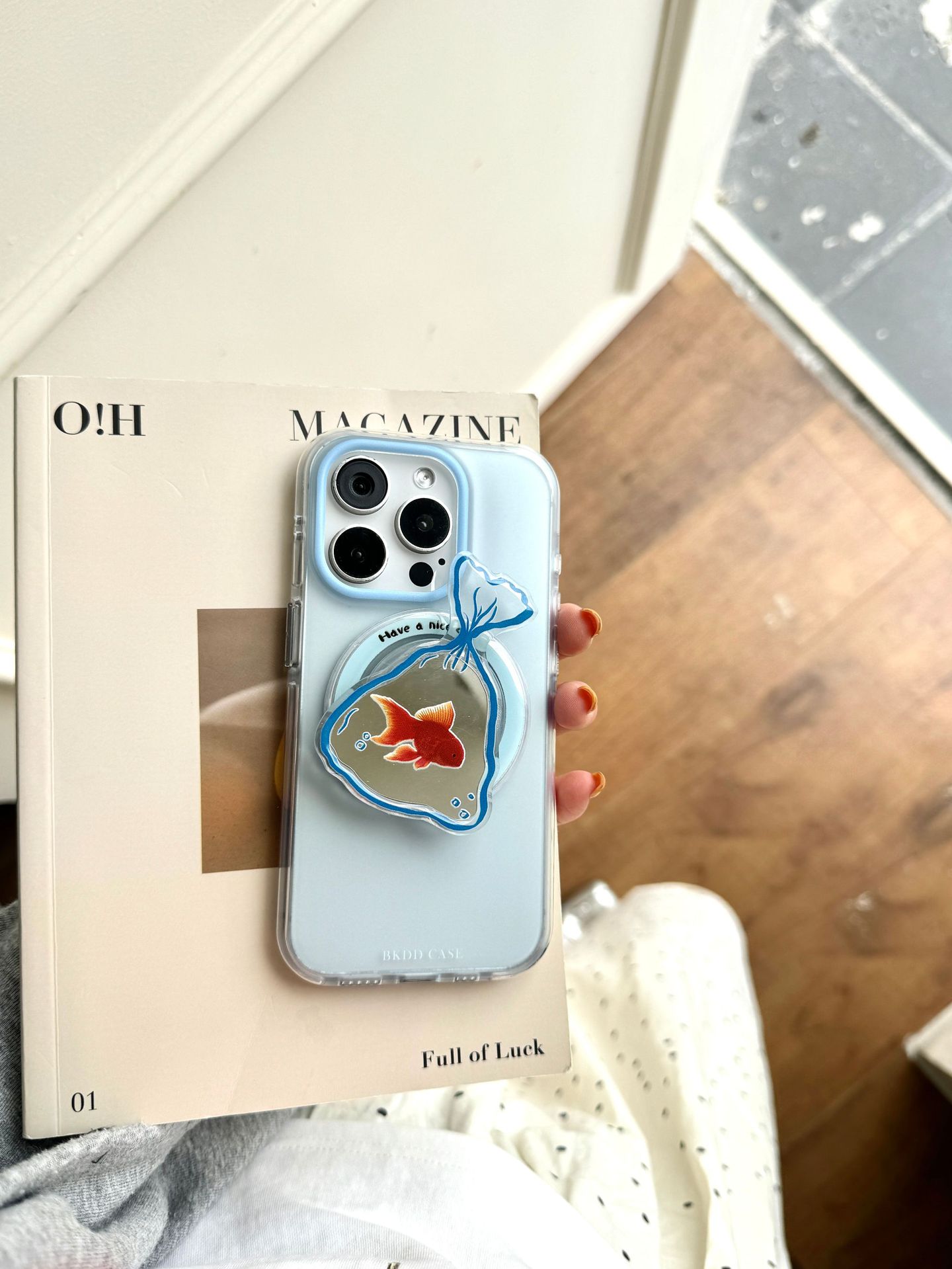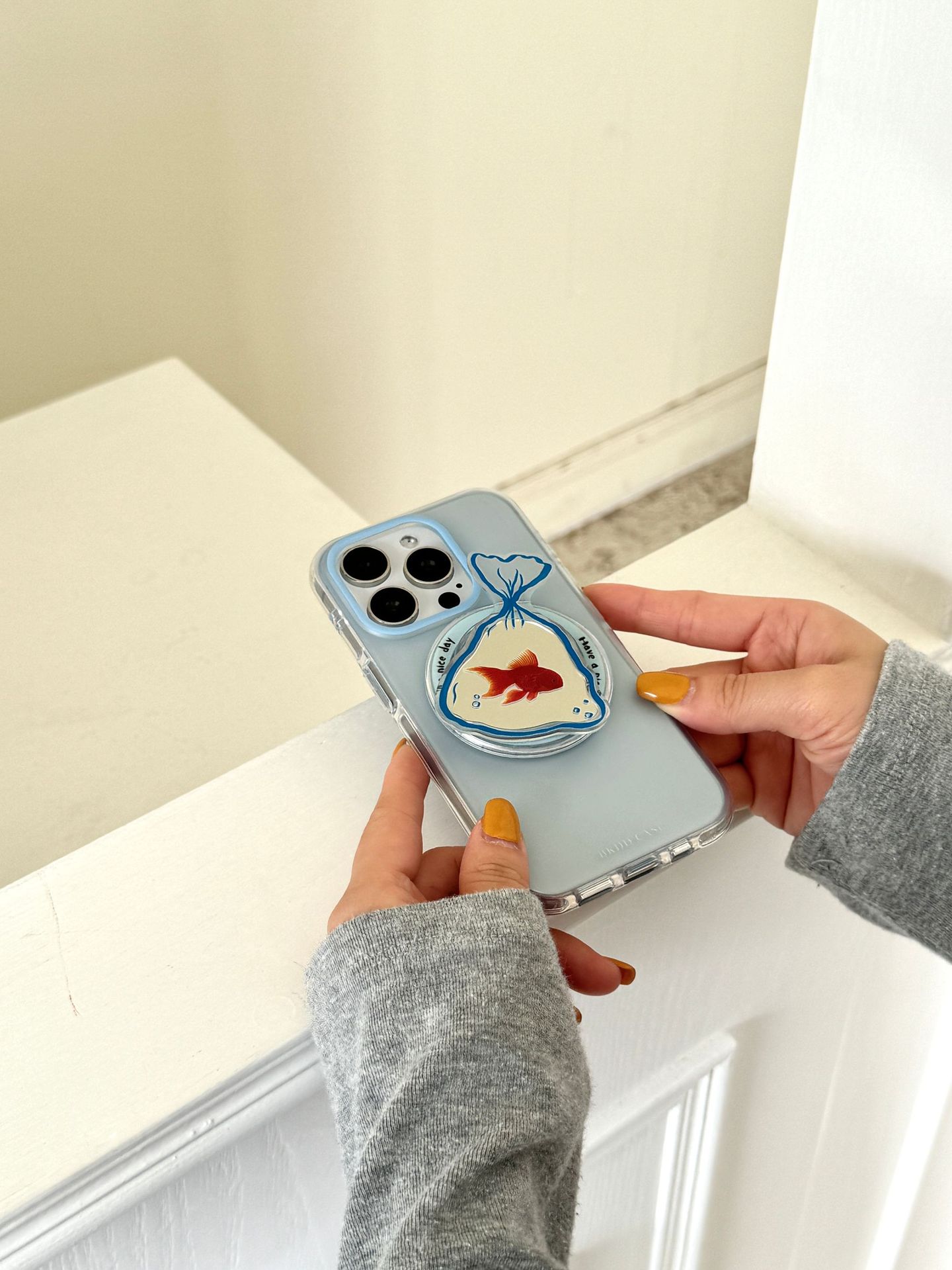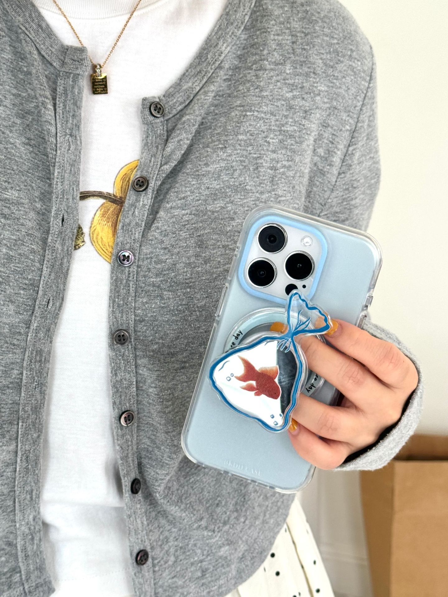 Soporte magnético de espejo de pez dorado degradado simple para Apple 16ProMax funda para teléfono móvil 15Pro pareja 14/13