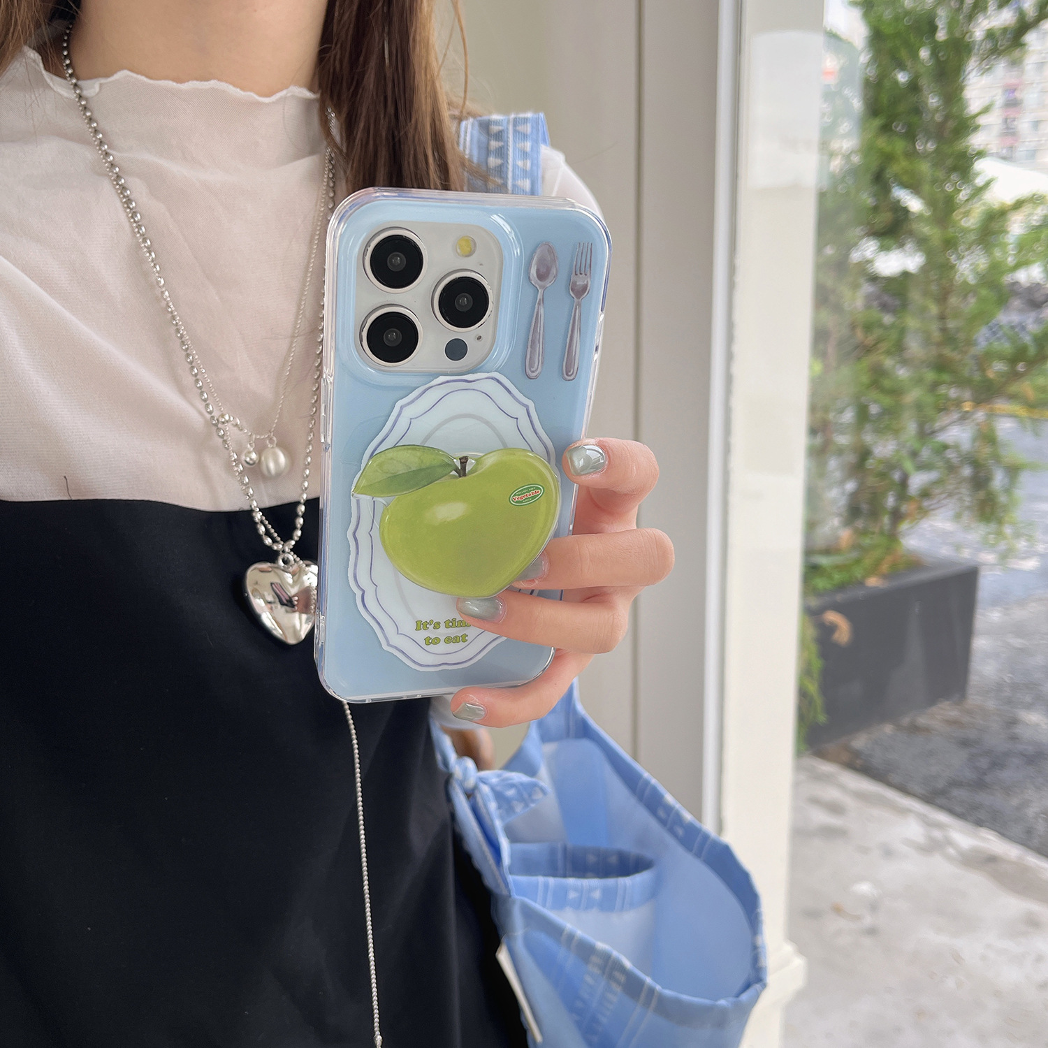 Fun nicho plato verde manzana para iPhone16 funda para teléfono móvil 15ProMax verano 14/13 nuevo 16Pro