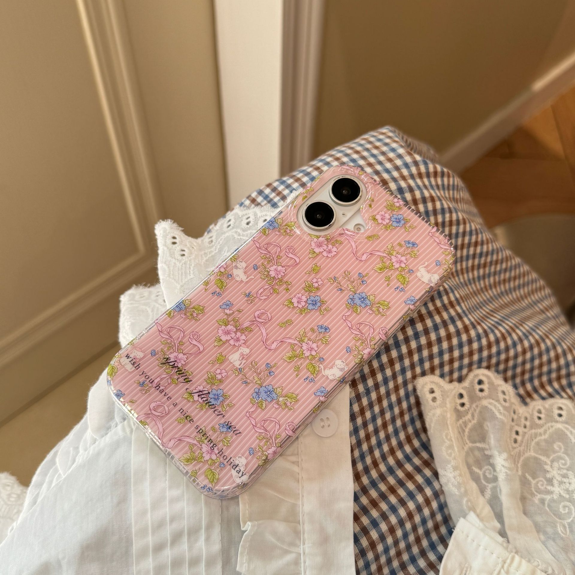 Dibujos animados galvanizado rosa gato lindo para iPhone 13 funda para teléfono móvil 15ProMax Apple 14 hembra 12 cordón
