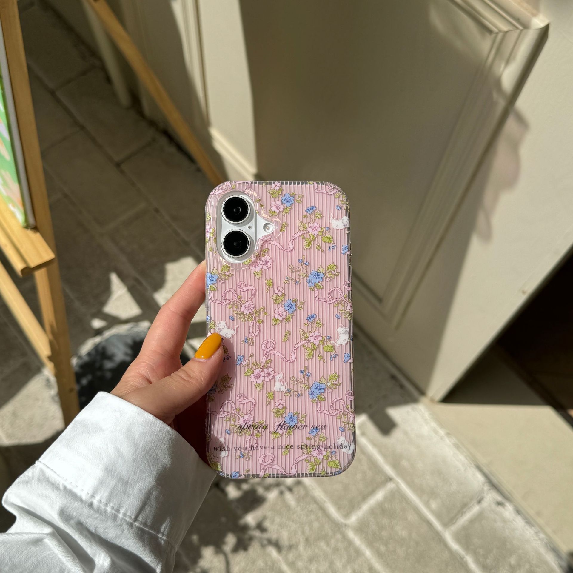 Flor a rayas de verano gato para Apple 16ProMax funda para teléfono móvil 15Pro cadena 14/13 femenino 15PM nuevo