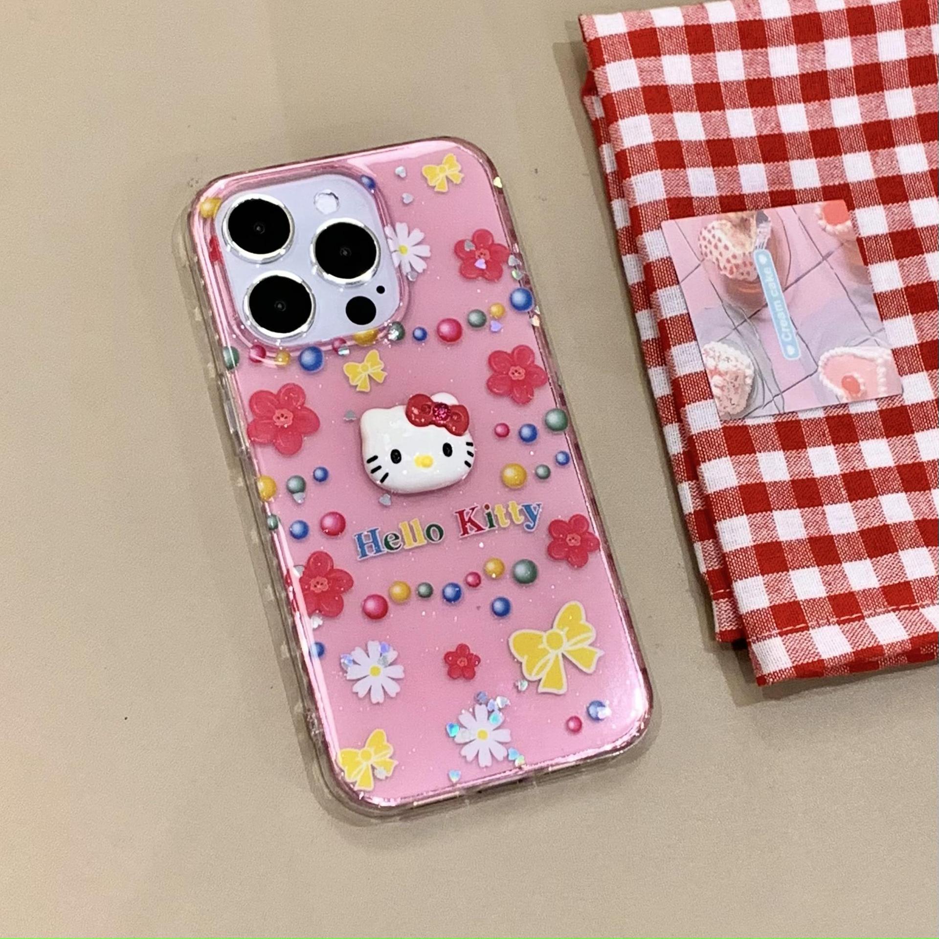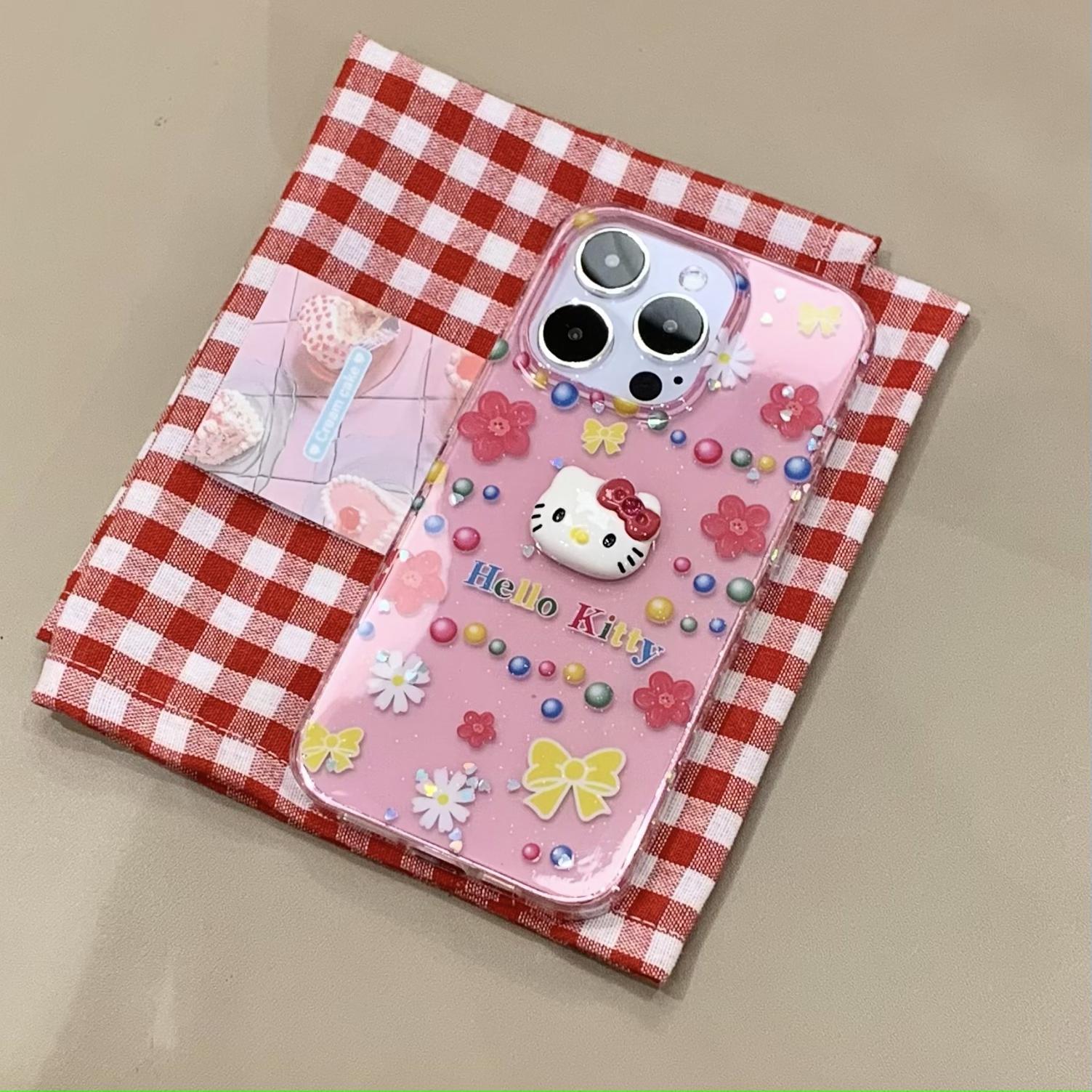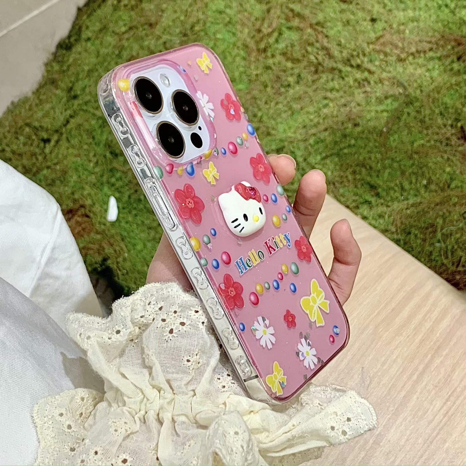 Chica corazón tridimensional KT gato para Apple 15Pro/16Pro funda para teléfono móvil 14ProMax flor 13/14 hembra 16