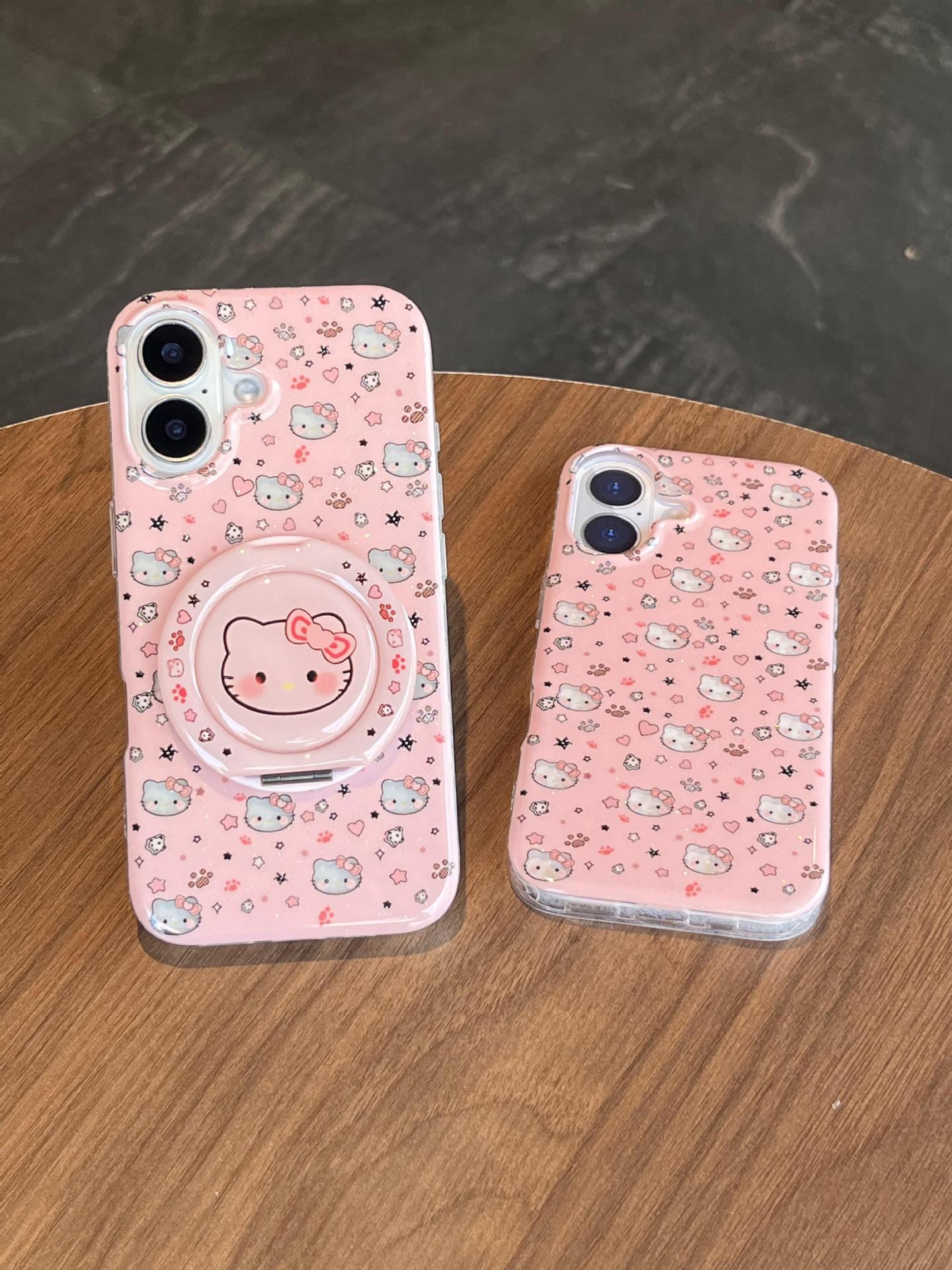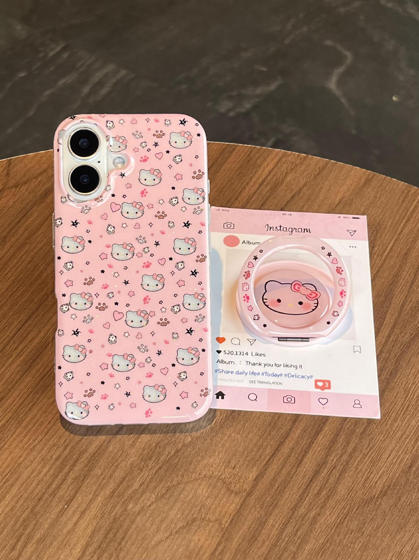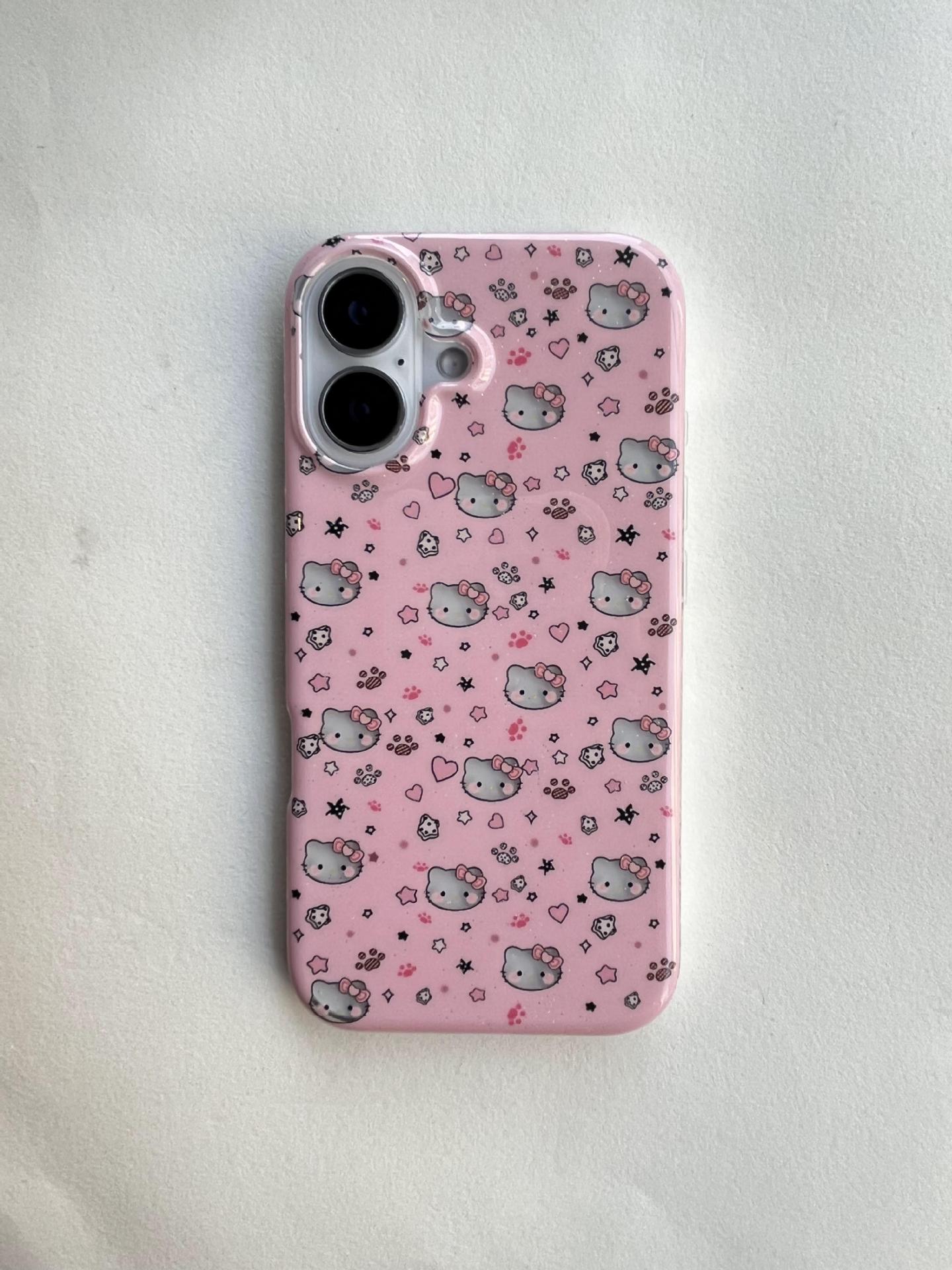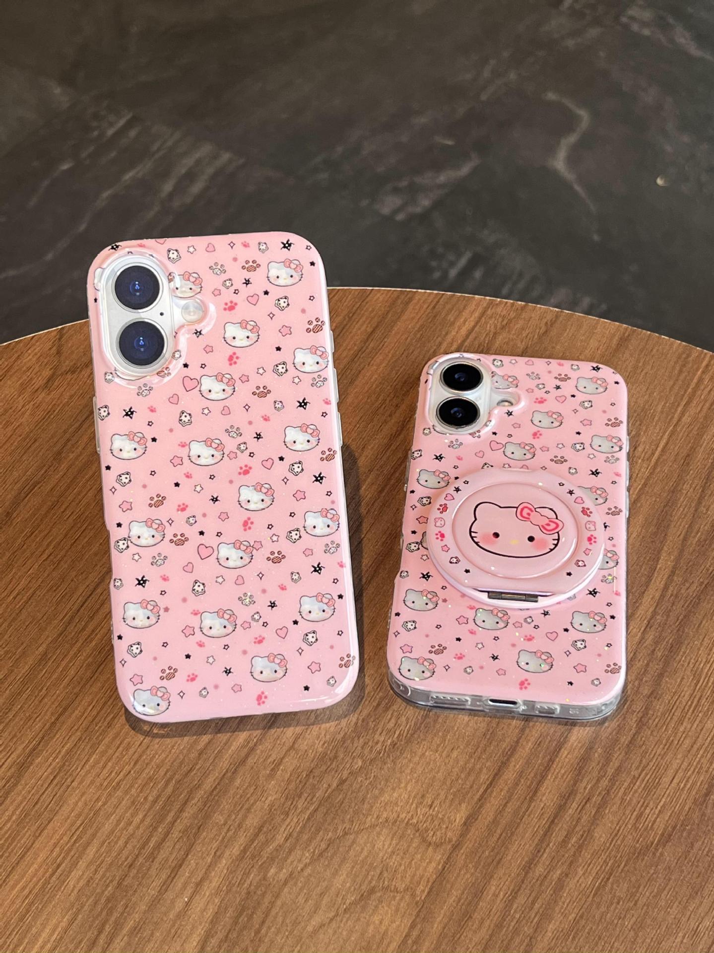 Divertida ilustración de dibujos animados KT gato para Apple 16ProMax funda para teléfono móvil 15Pro soporte 14/13 niñas 15Pm