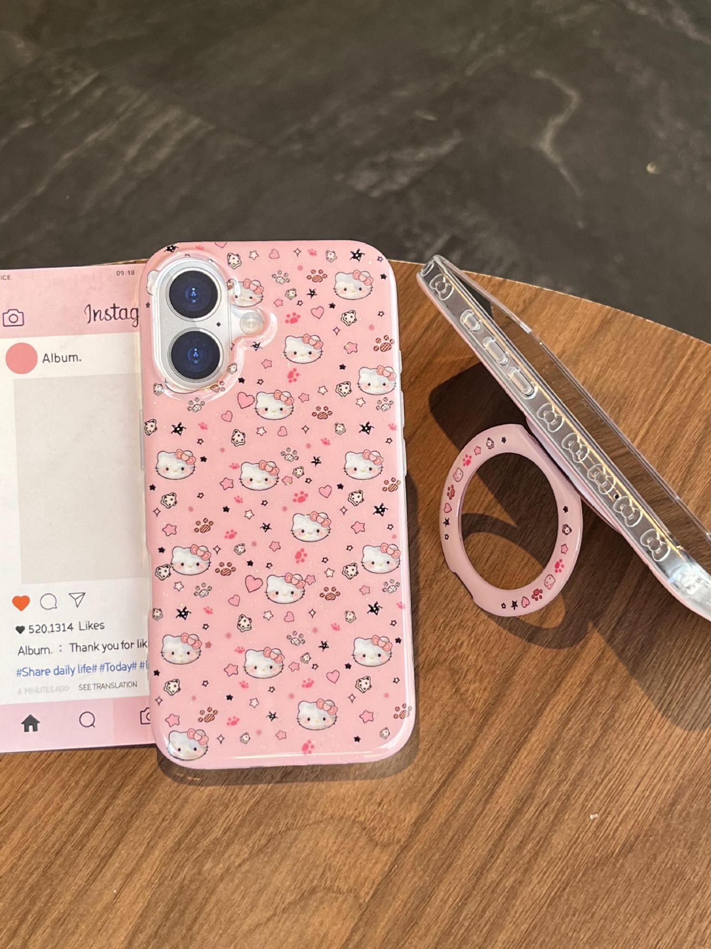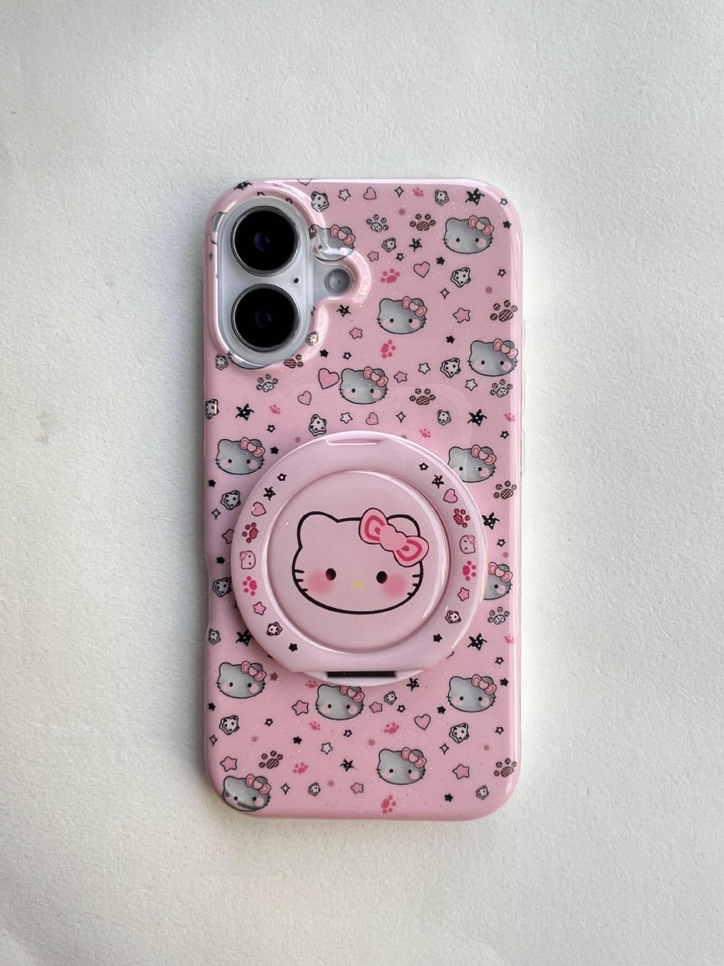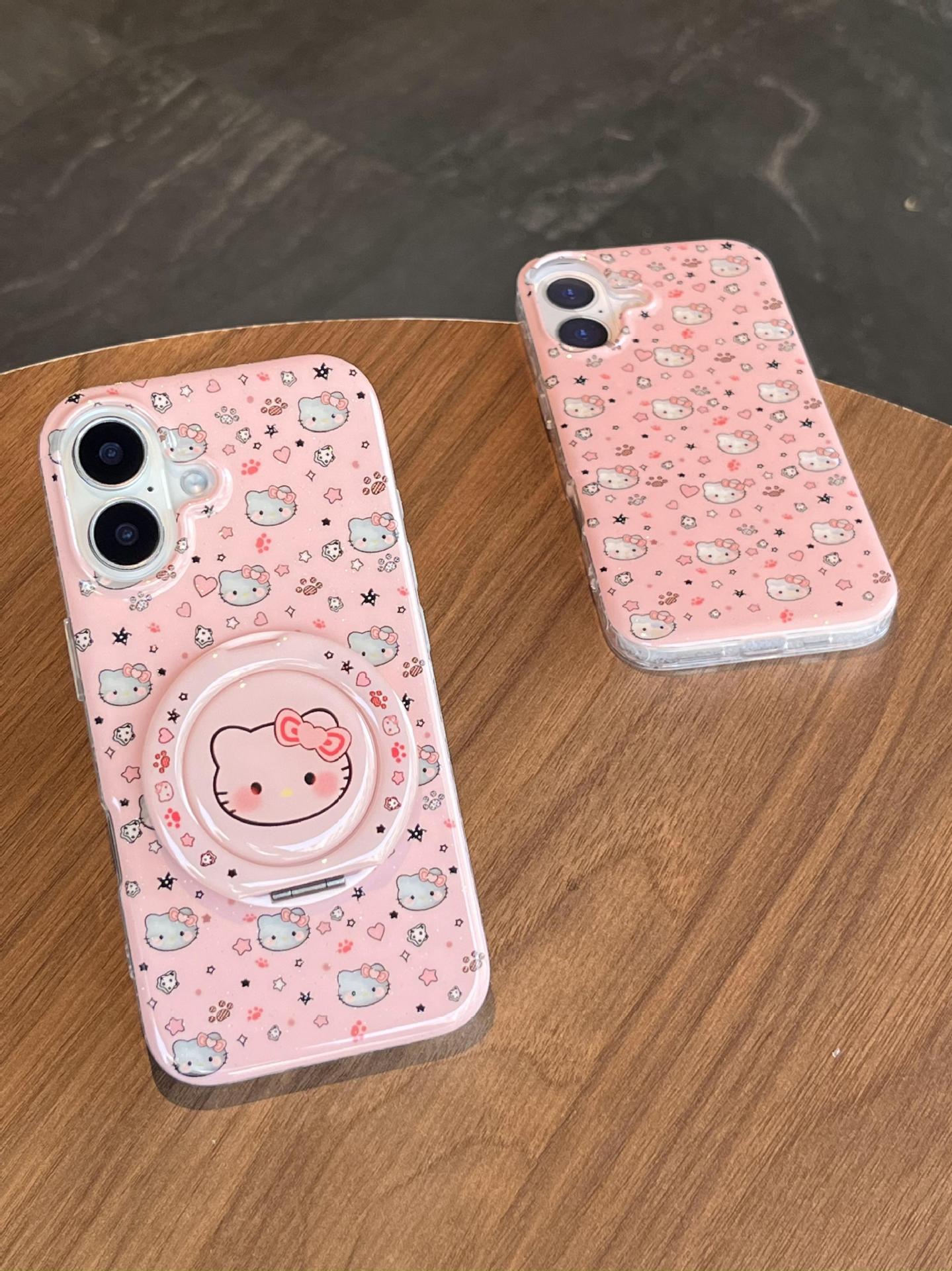 Divertida ilustración de dibujos animados KT gato para Apple 16ProMax funda para teléfono móvil 15Pro soporte 14/13 niñas 15Pm