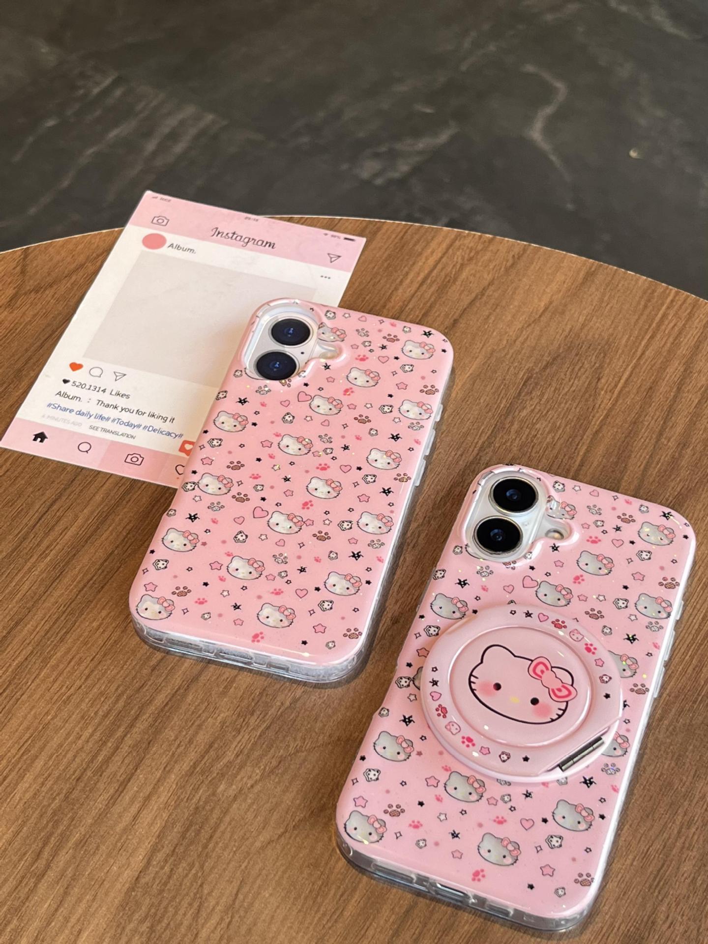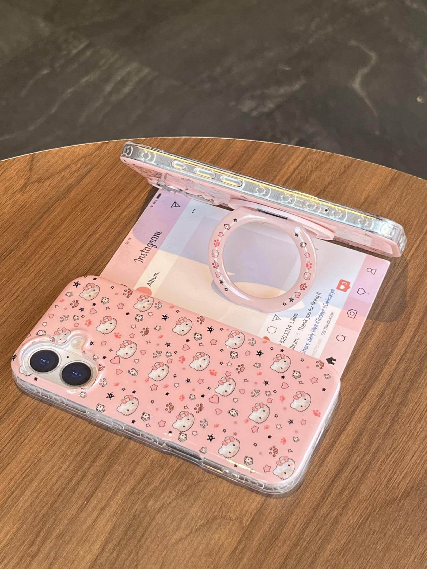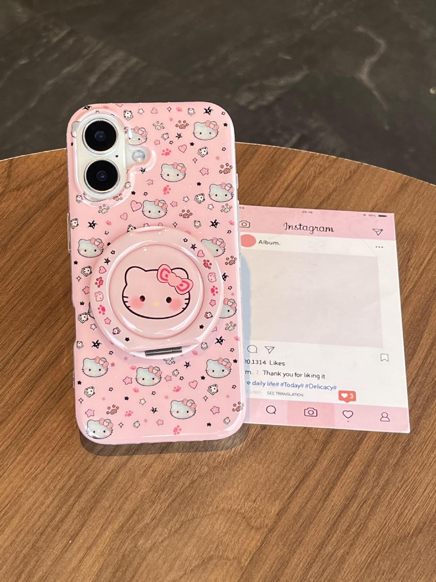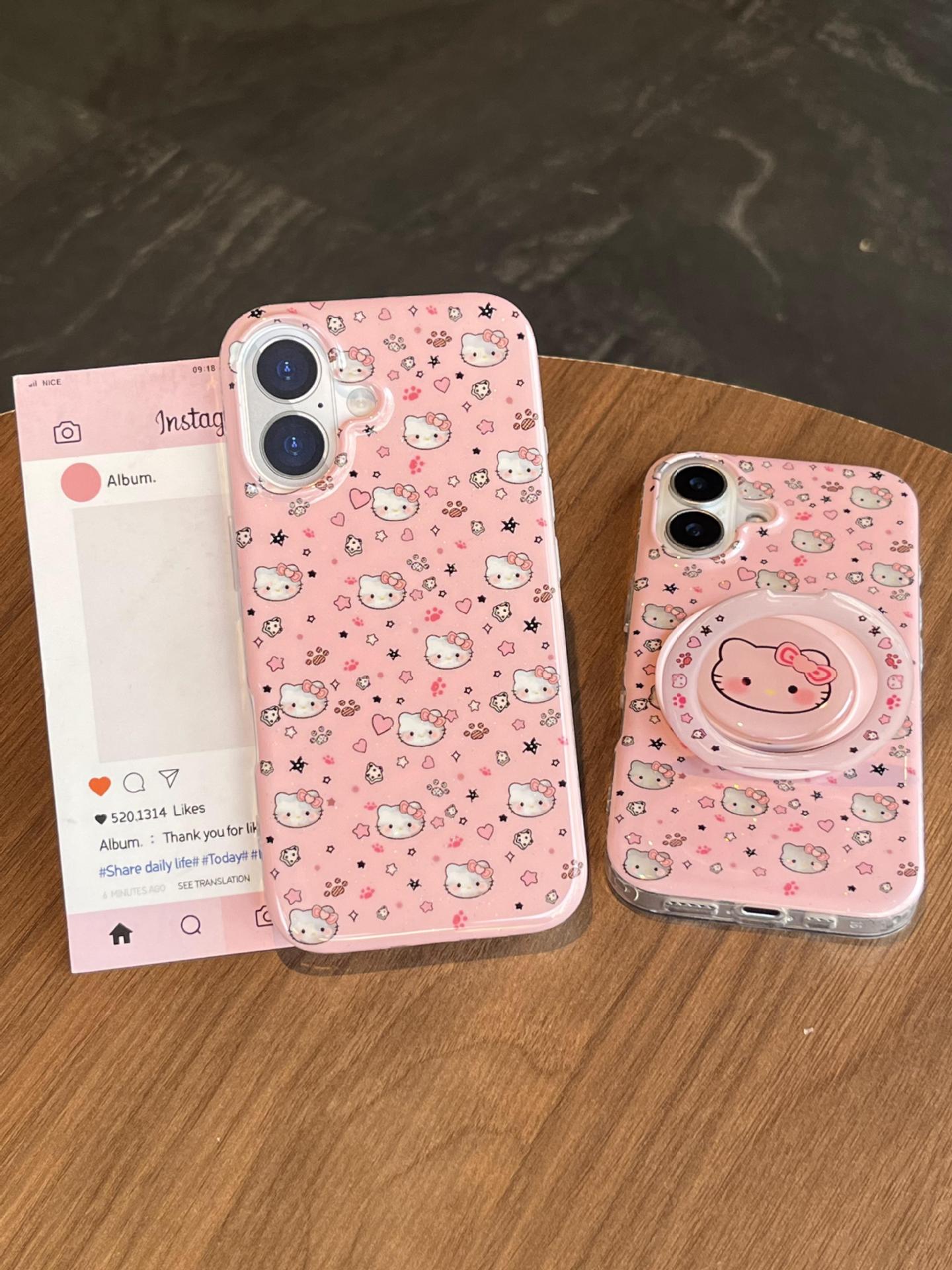 Divertida ilustración de dibujos animados KT gato para Apple 16ProMax funda para teléfono móvil 15Pro soporte 14/13 niñas 15Pm