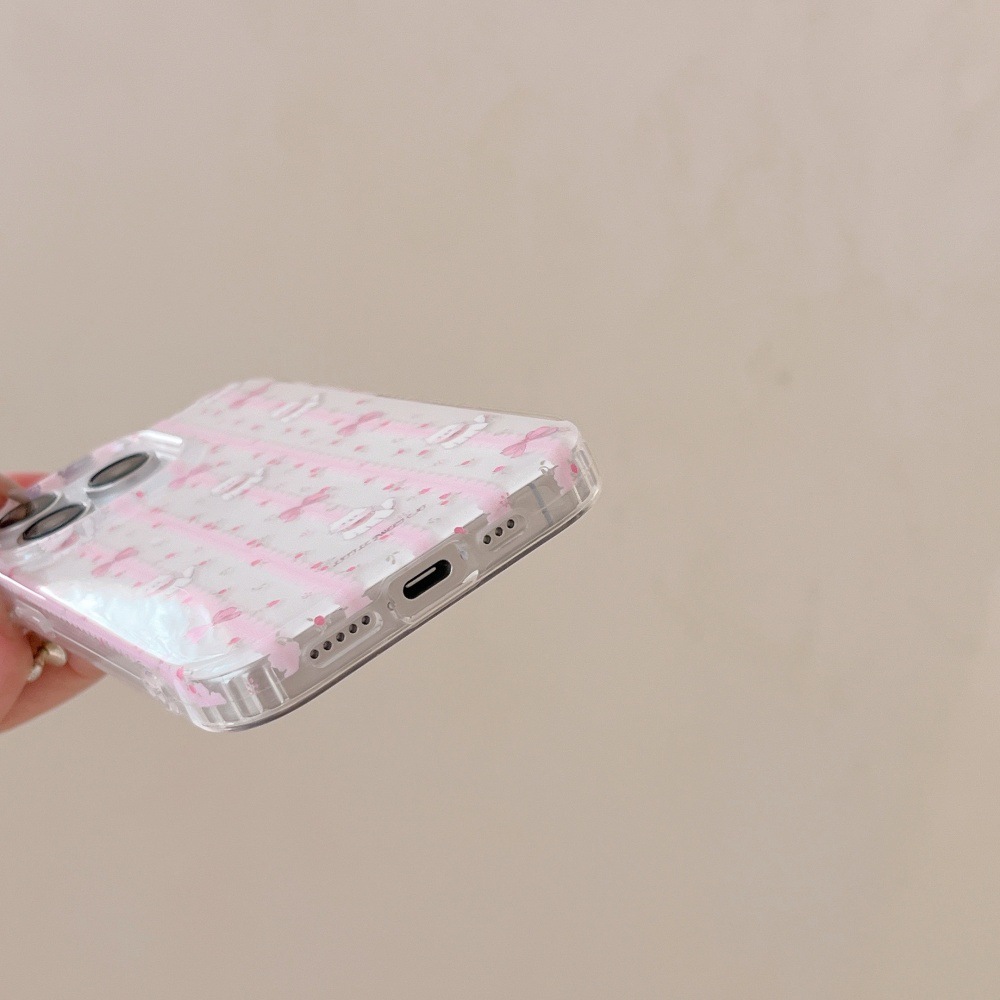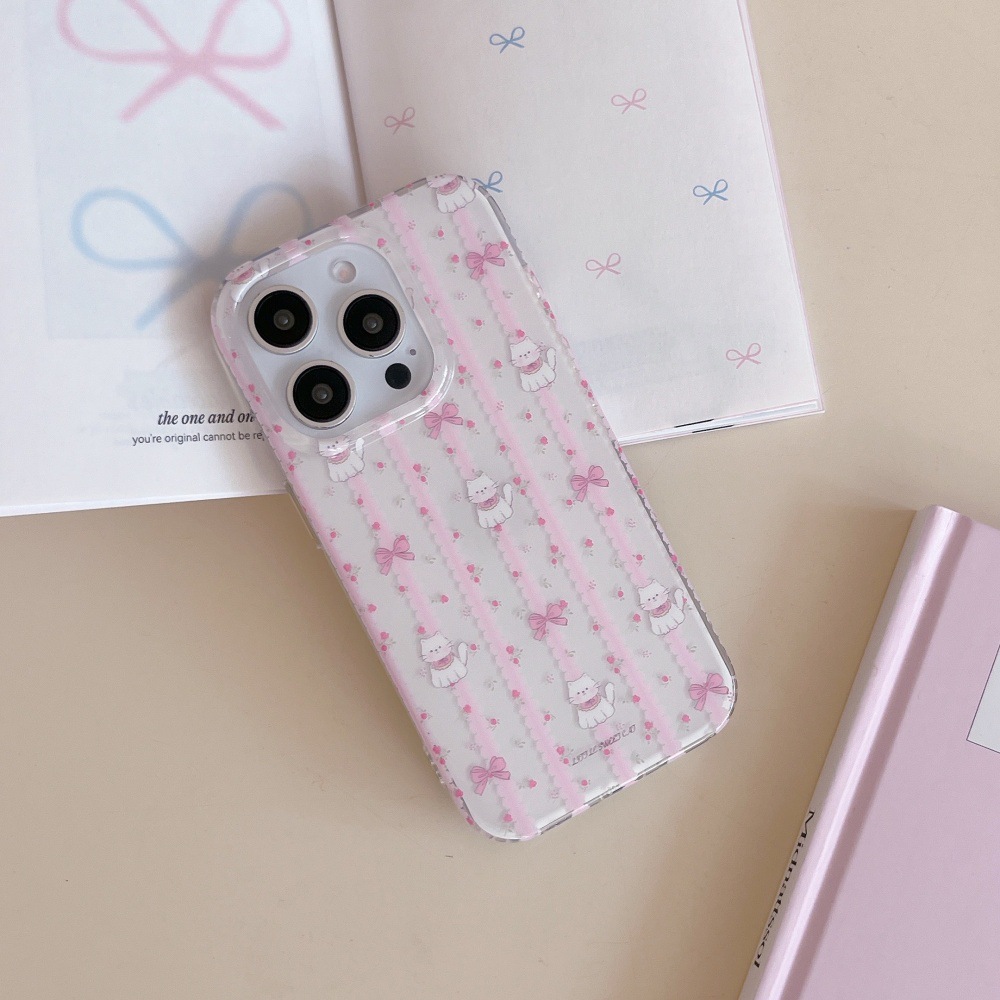 Gato con lazo floral rosa coreano para Apple 15ProMax lindo 16Pro nicho 14/13 nuevo 16