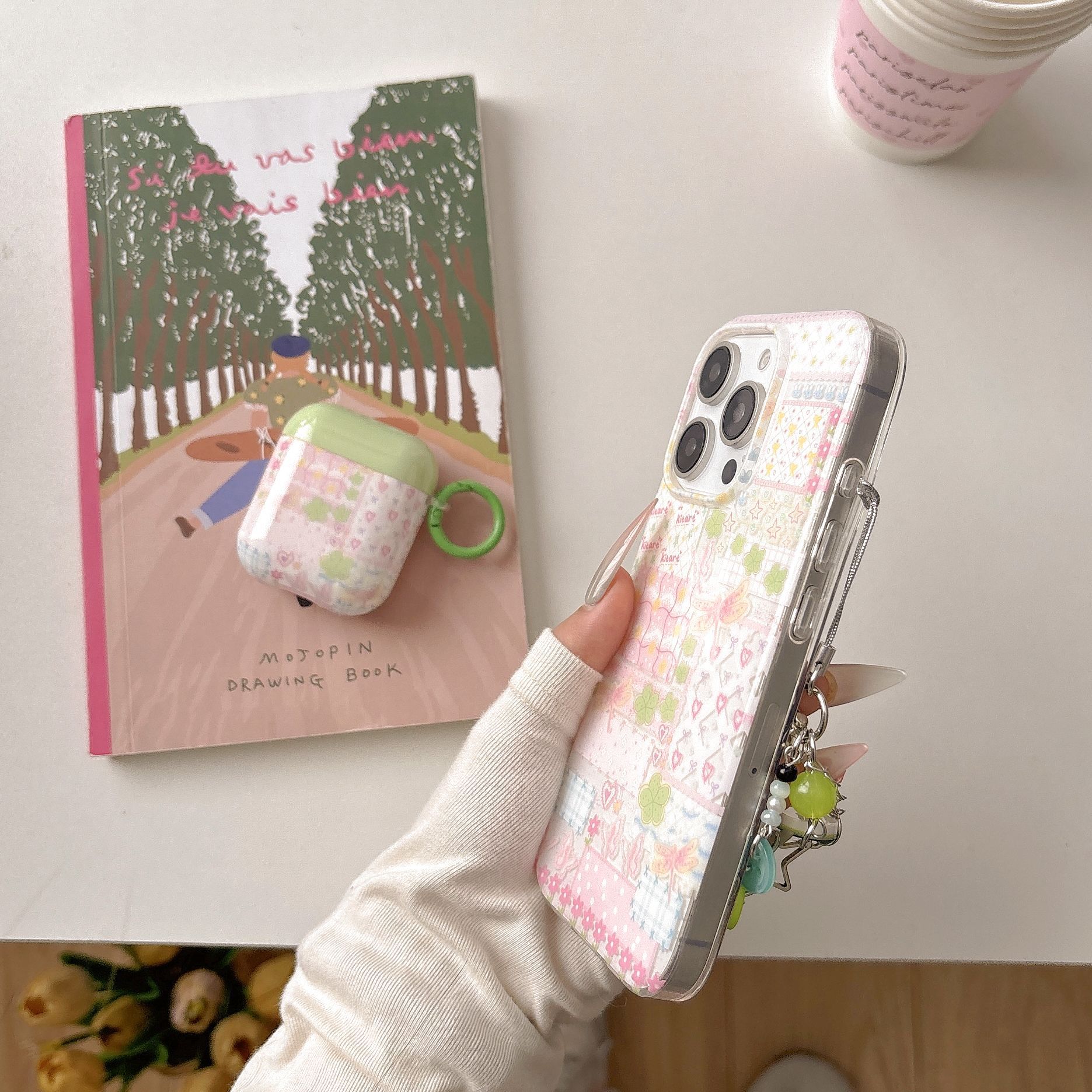 Chica coreana a cuadros pequeña floral adecuada para Apple 15/16 nicho 14pro funda para teléfono móvil 16ProMax femenino 15PM
