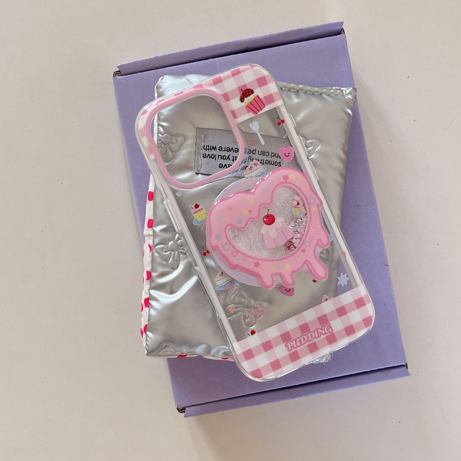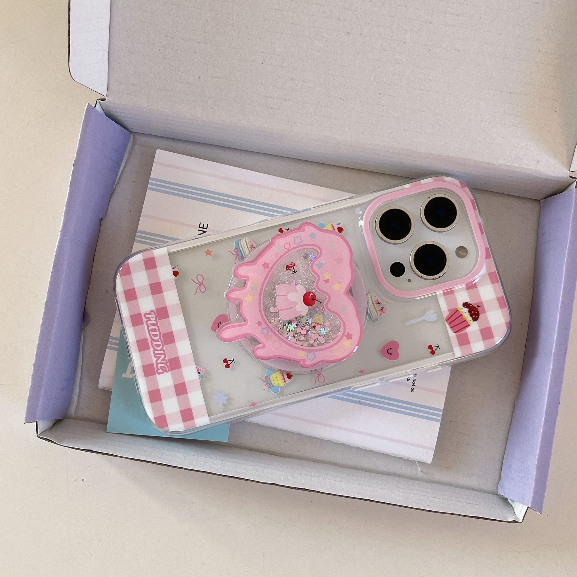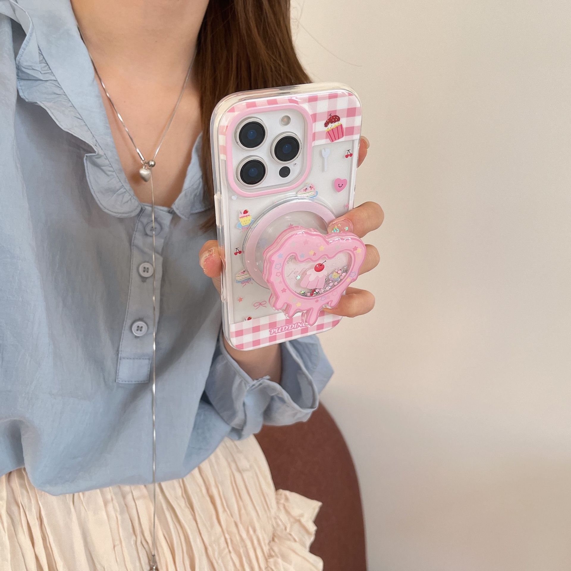 Postre de costura de cuadros en polvo de dibujos animados para Apple 16ProMax funda para teléfono móvil 15Pro transparente 14/13 magnético 16