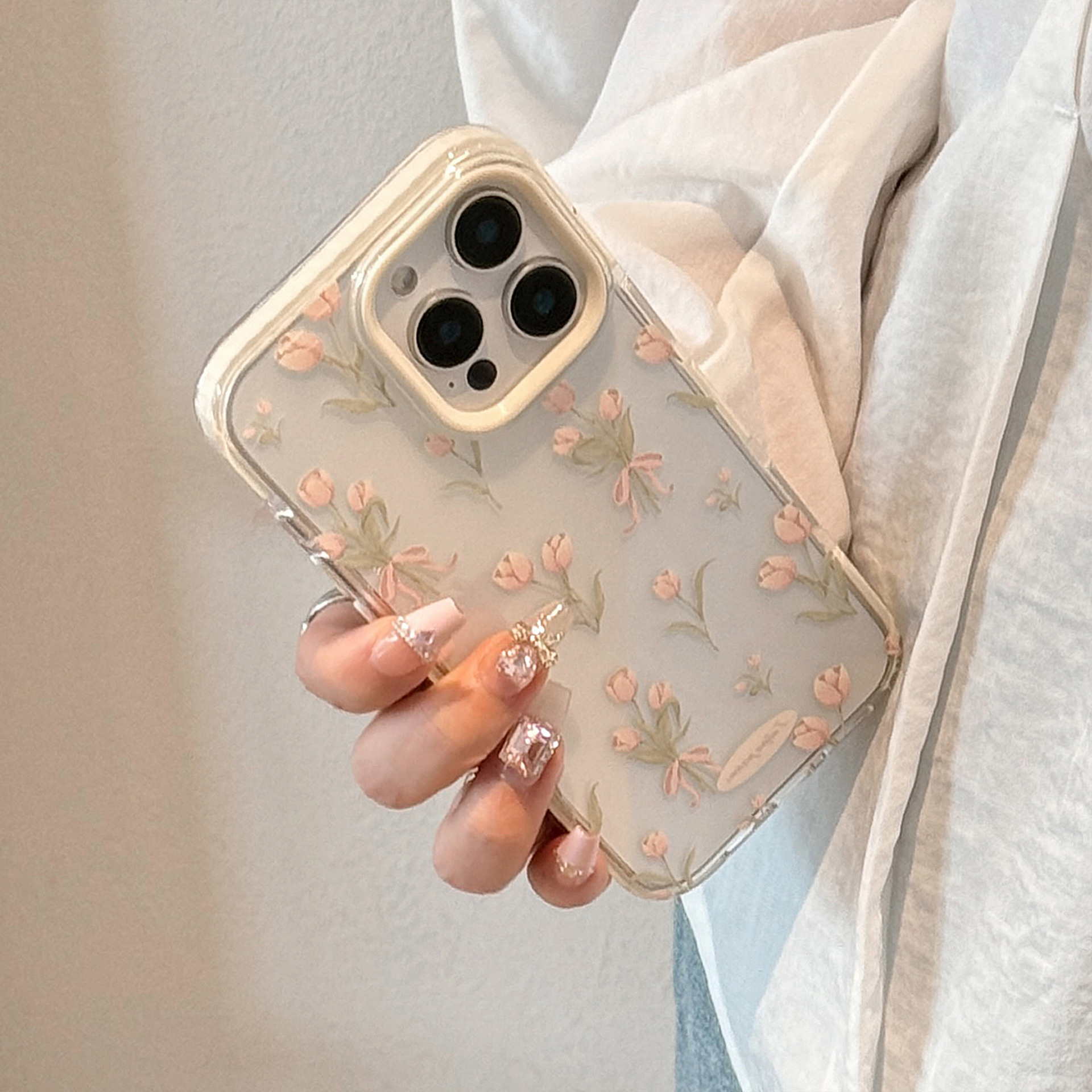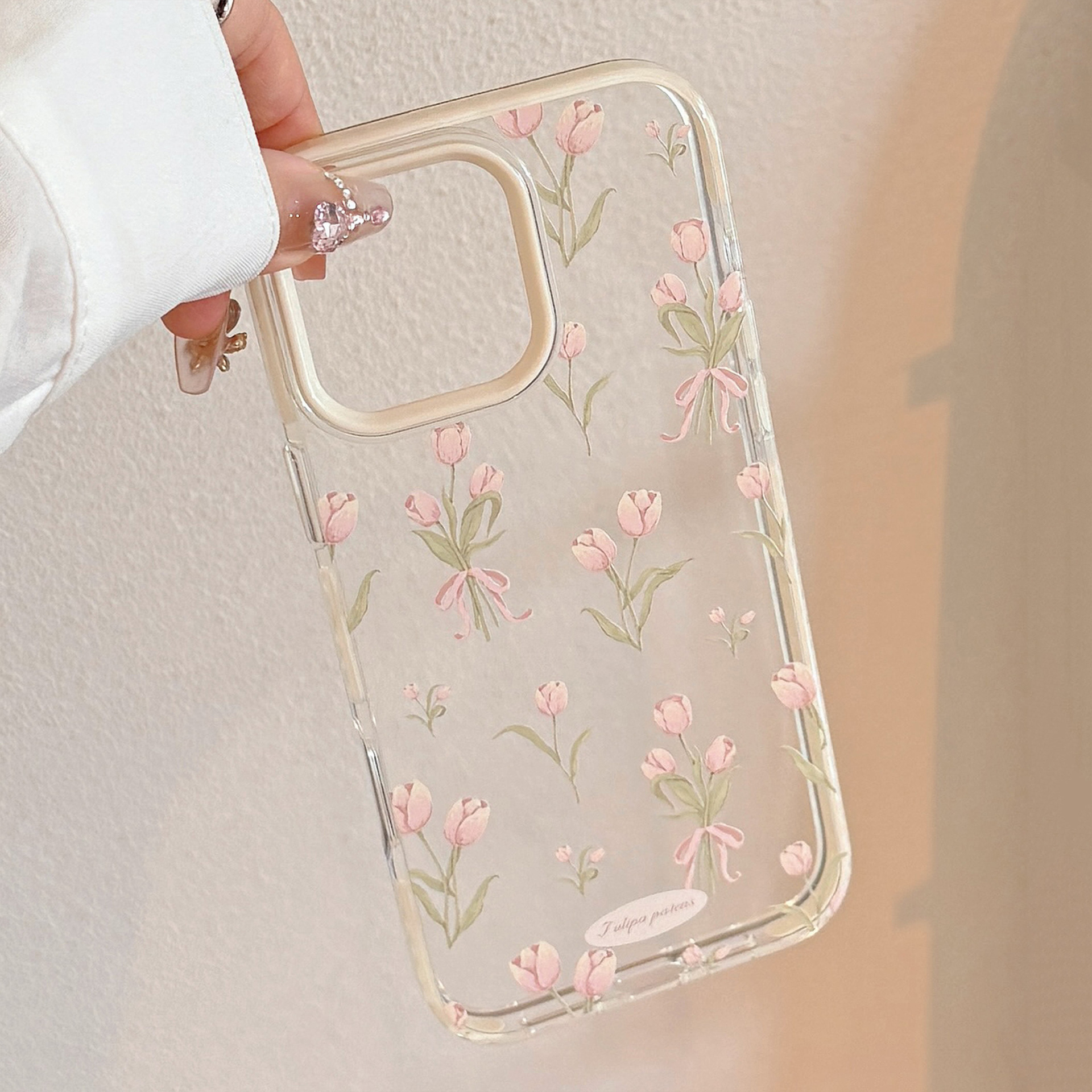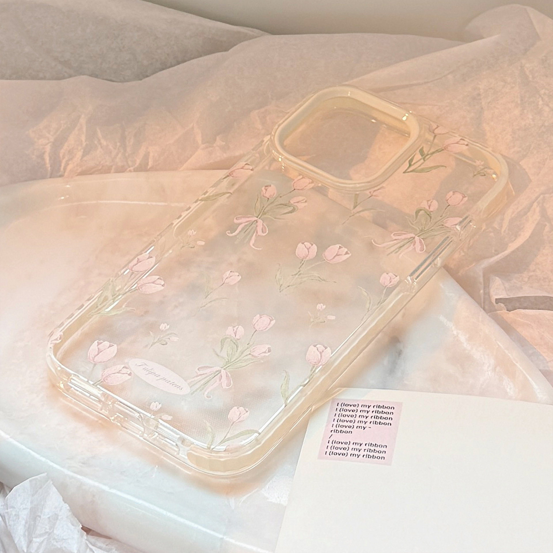Tulipanes simples y frescos para Apple 16ProMax funda para teléfono móvil 15Pro Transparente 14/13 Girl Heart 15