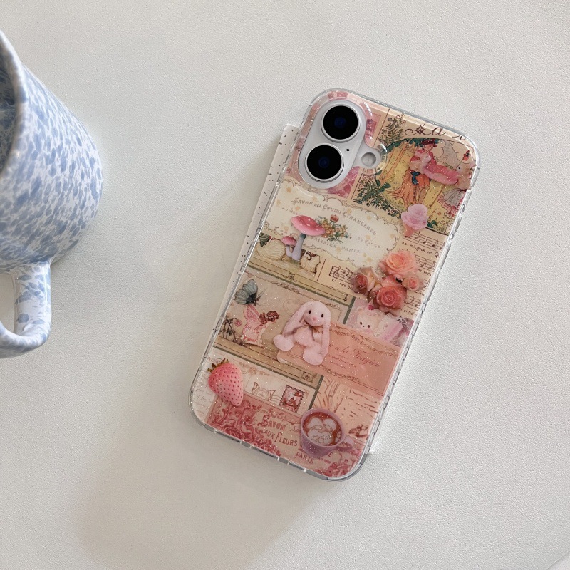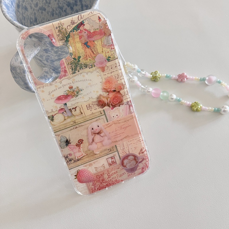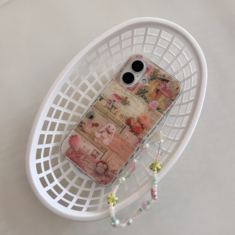 Pintura al óleo retro Rose Bunny Adecuado para Apple 16ProMax Funda para teléfono móvil 15/14 Chicas 13 Cadena 15Pro