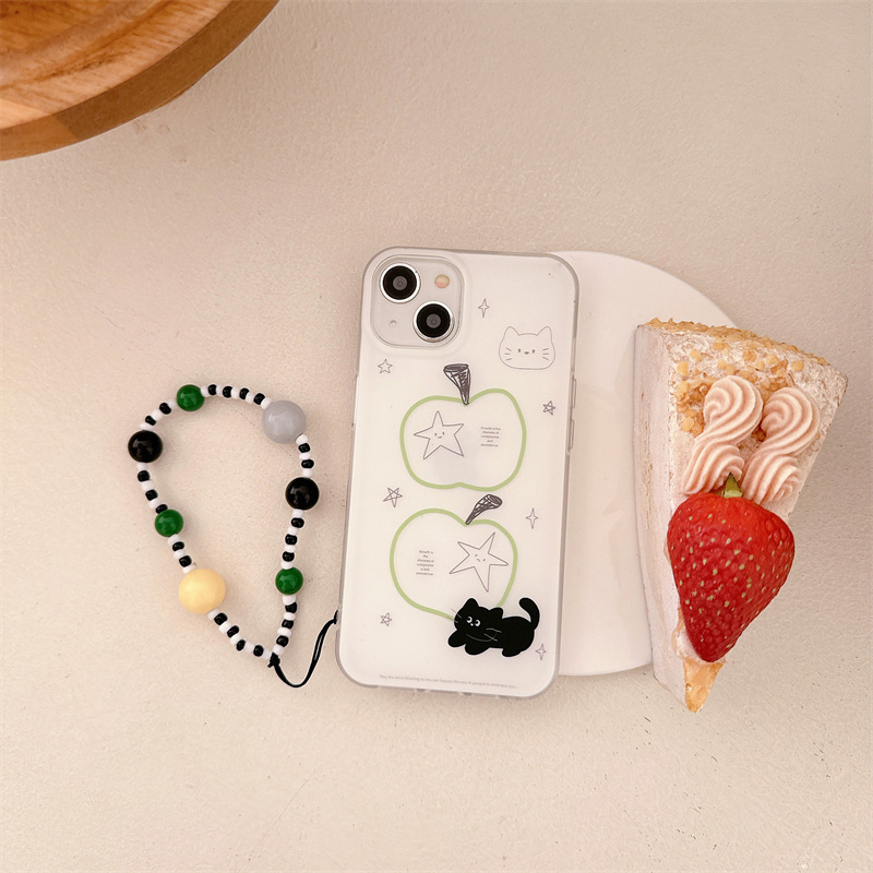 | Colores | Línea de fondo blanco de una sola cáscara manzana pequeño gato negro ls4,Cadena línea de fondo blanco manzana pequeño gato negro ls4 |