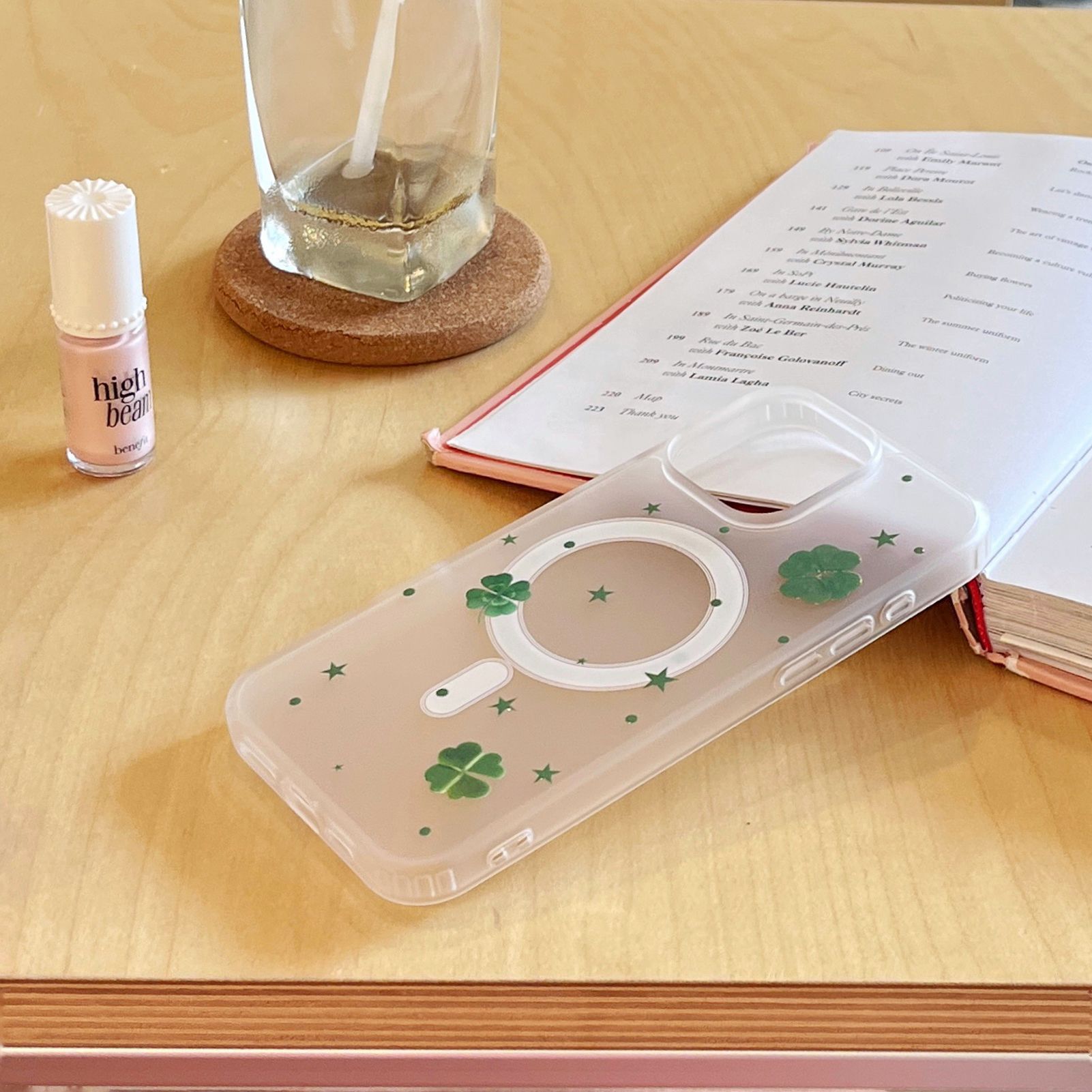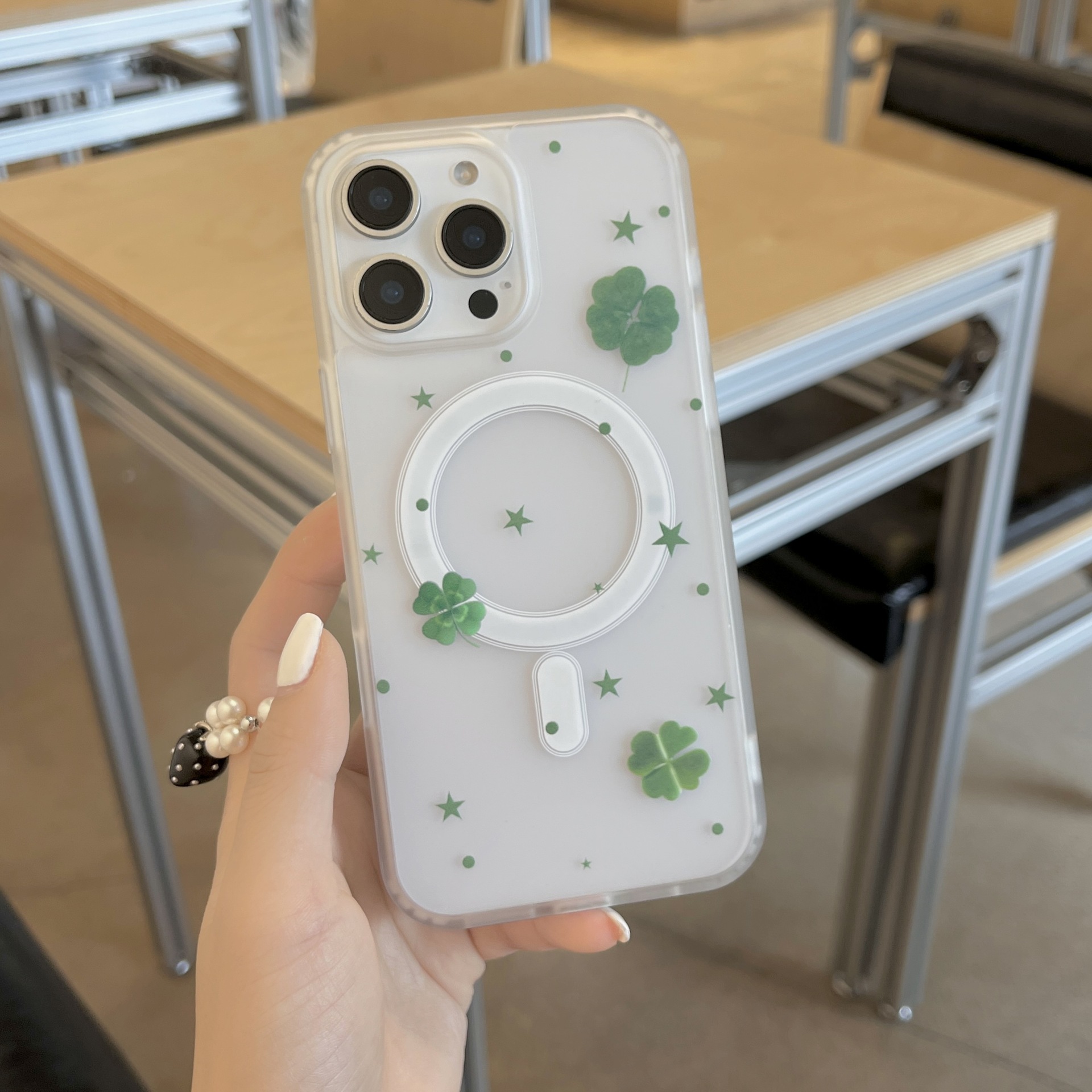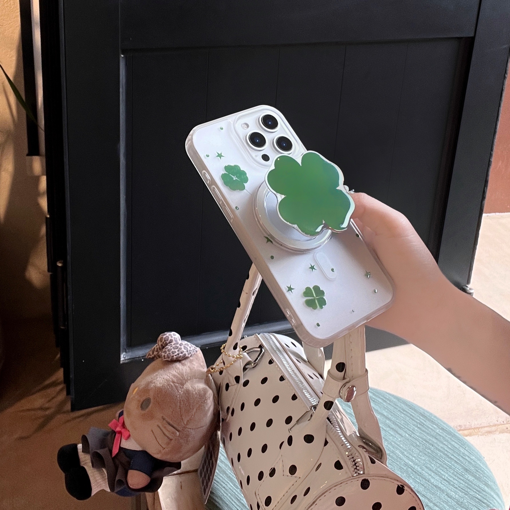 El trébol de cuatro hojas fresco pequeño coreano es adecuado para Apple 16ProMax funda para teléfono móvil 15Pro simple 14/13 nicho 15PM