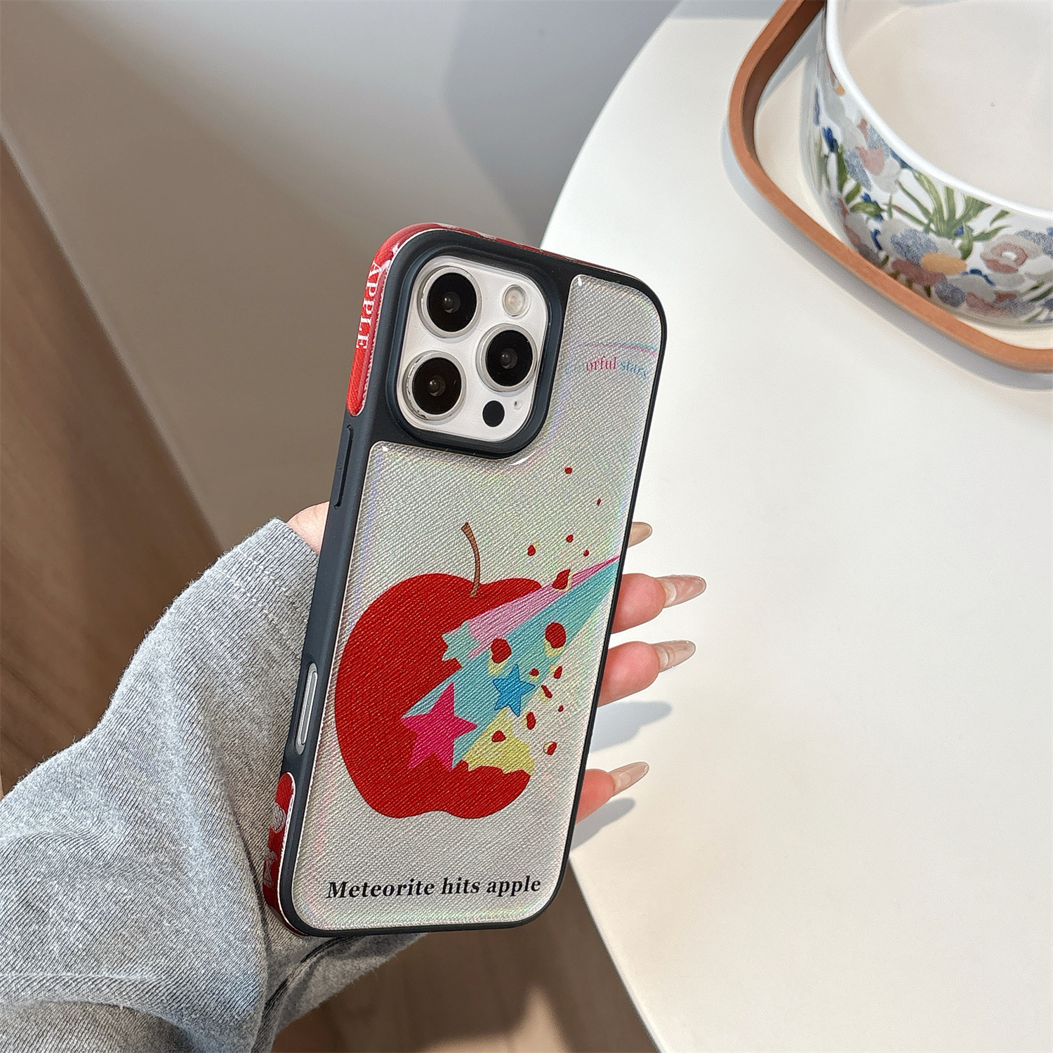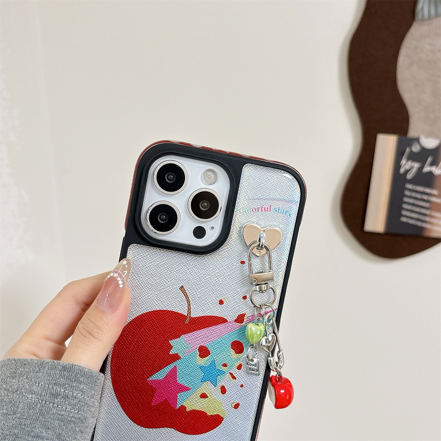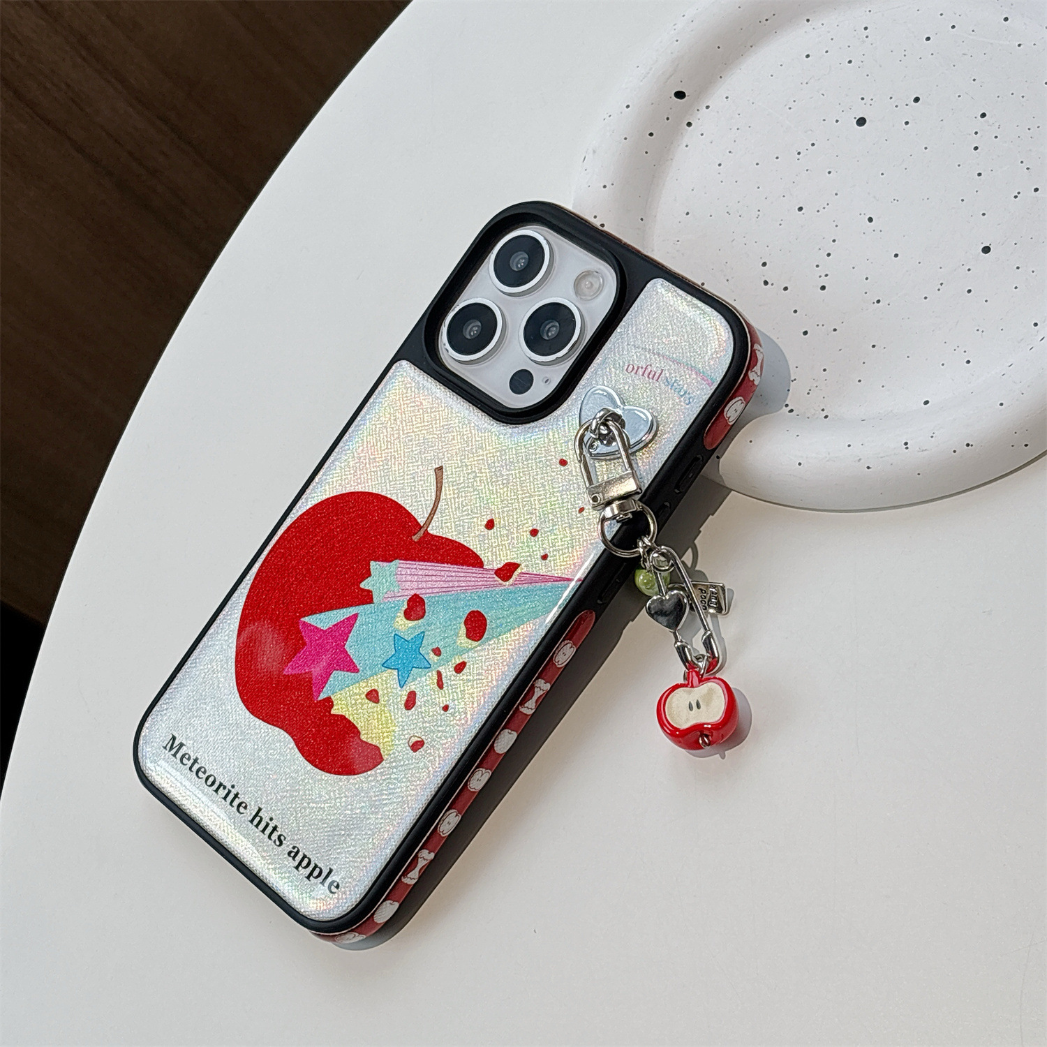 Mono shell-borde negro fondo azul estrella Apple RJ,Colgante borde negro fondo azul estrella manzana RJ