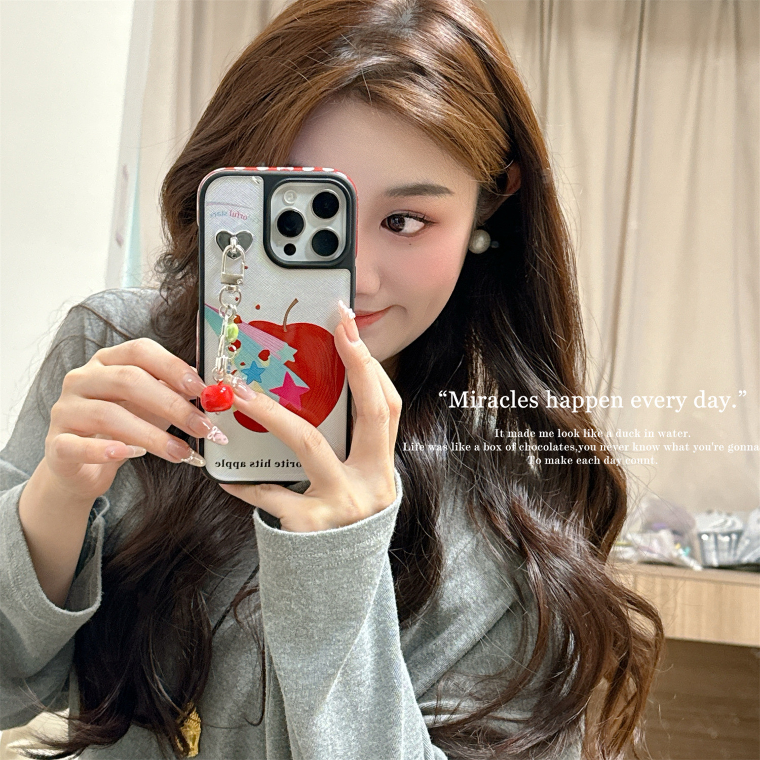 Girl ins lindo té con leche kt para iphone16ProMax/15 funda para teléfono móvil Apple 13 cuerda de mano 14 nuevo