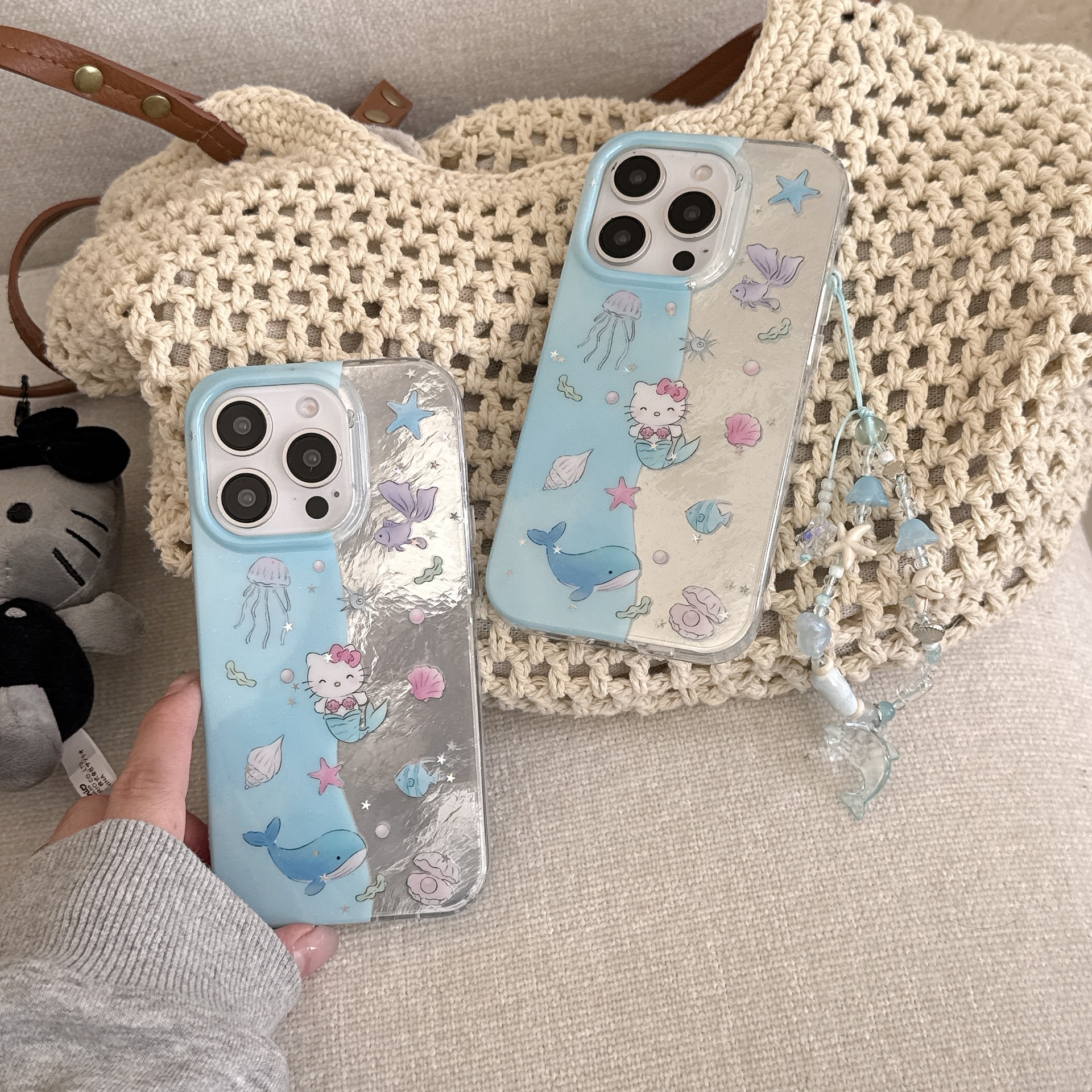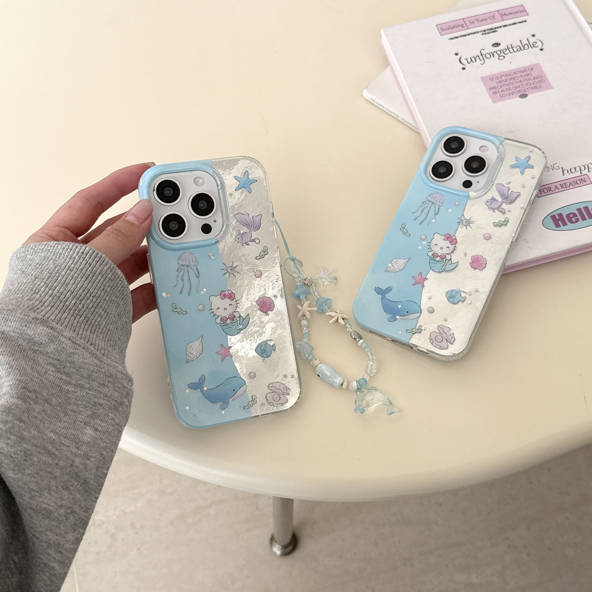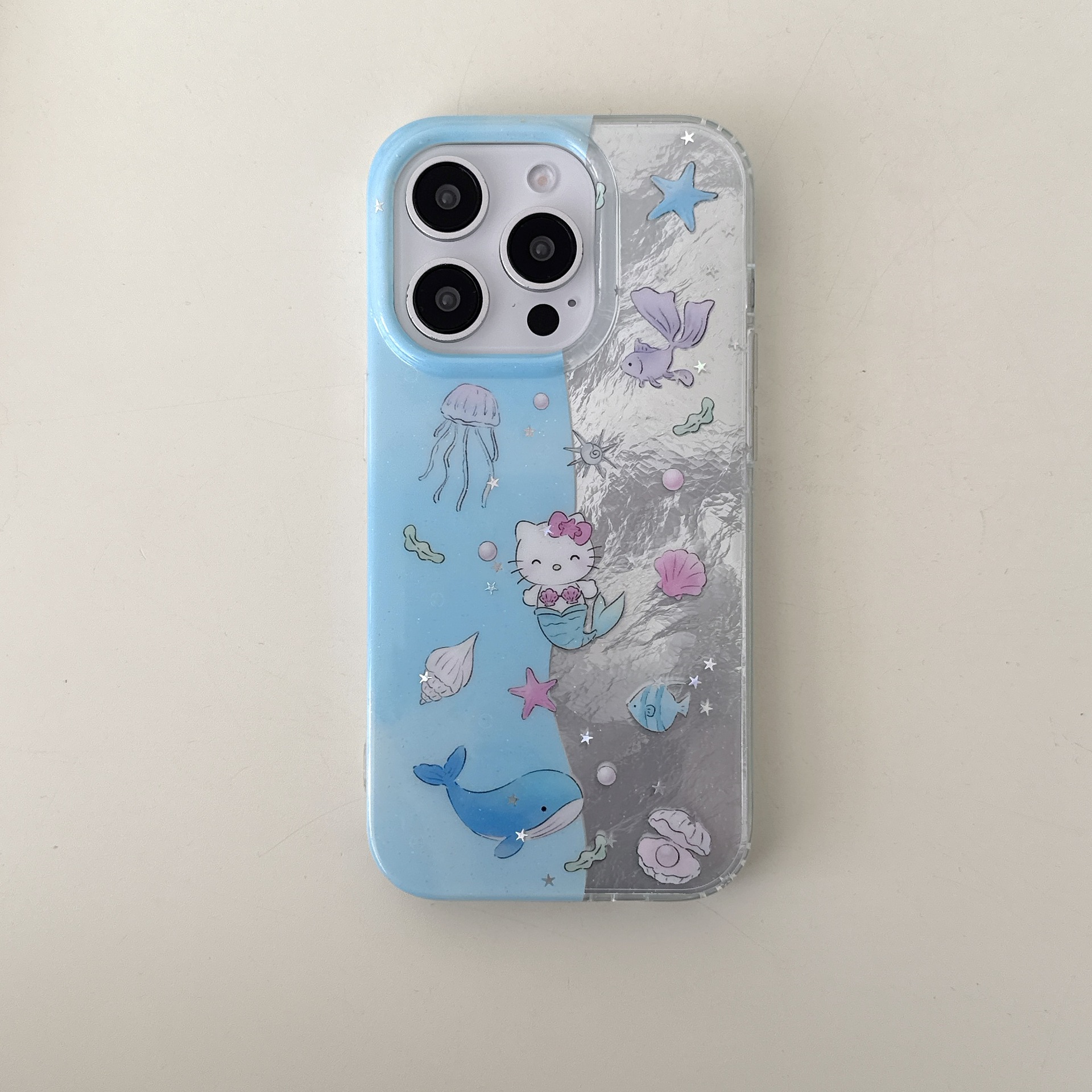 Empalme de las olas sirena KT gato para Apple 15ProMax funda para teléfono móvil 16Pro nuevo 14/13 femenino 16PM