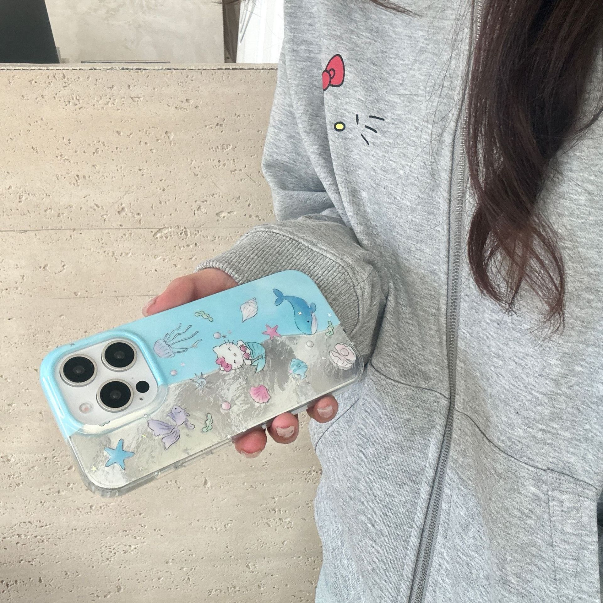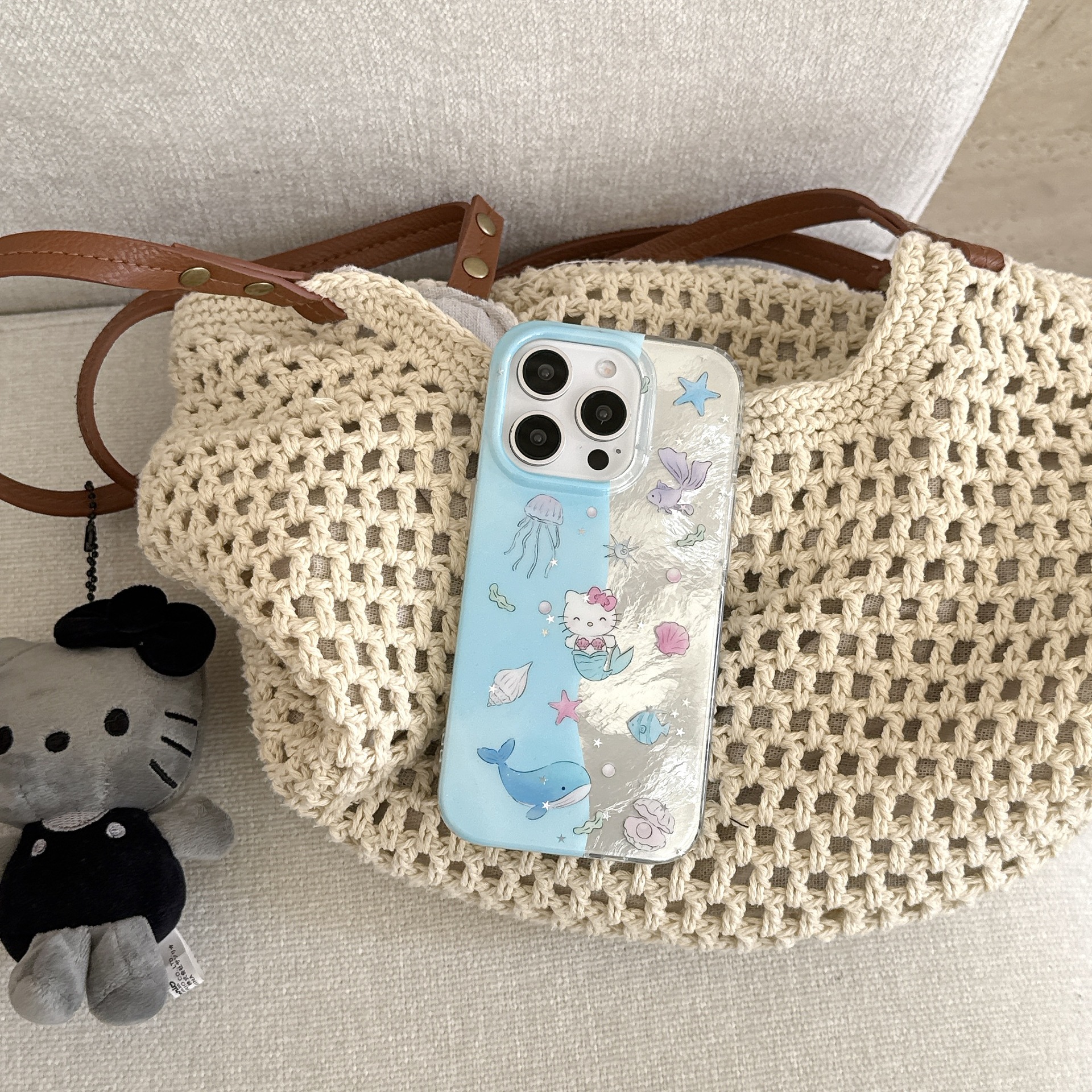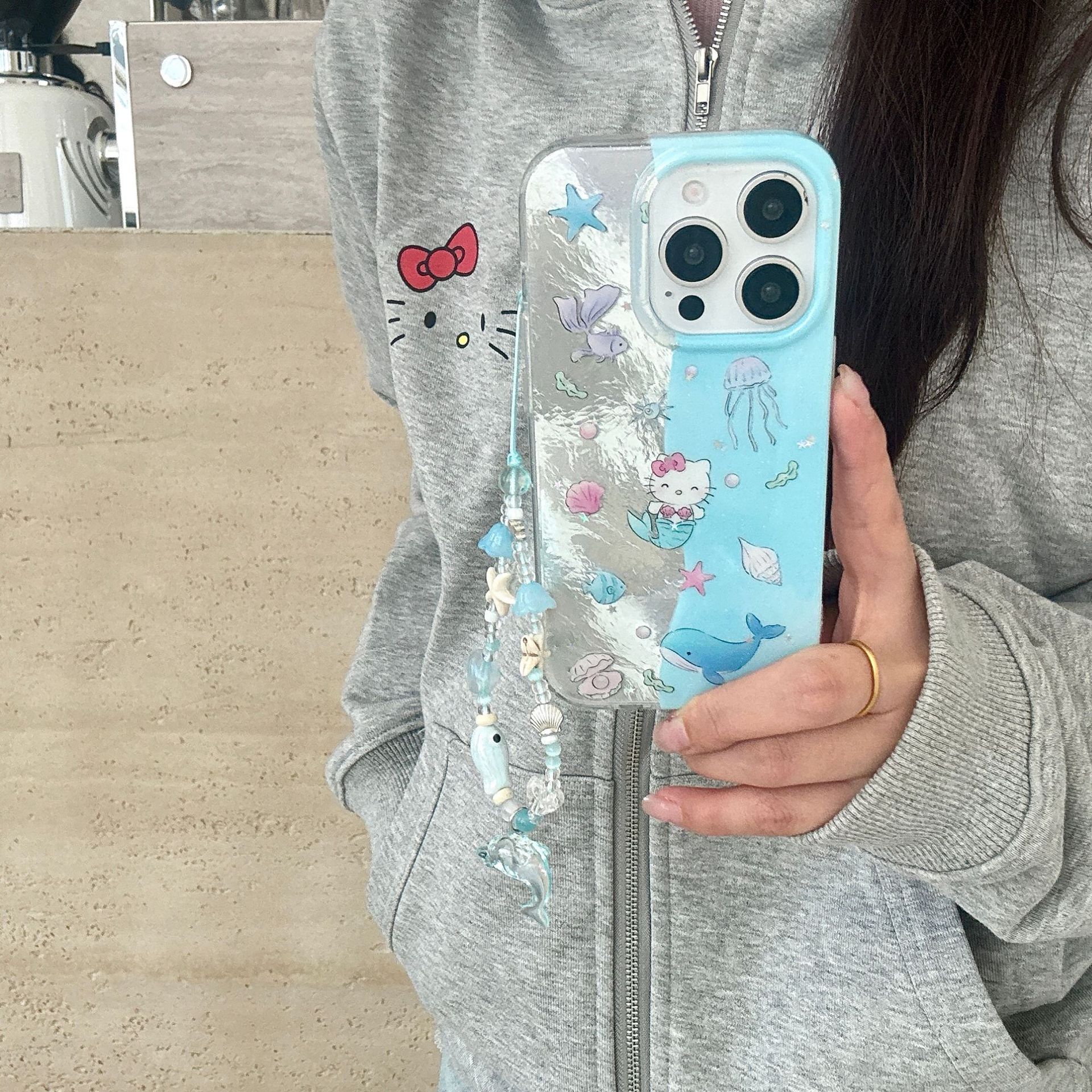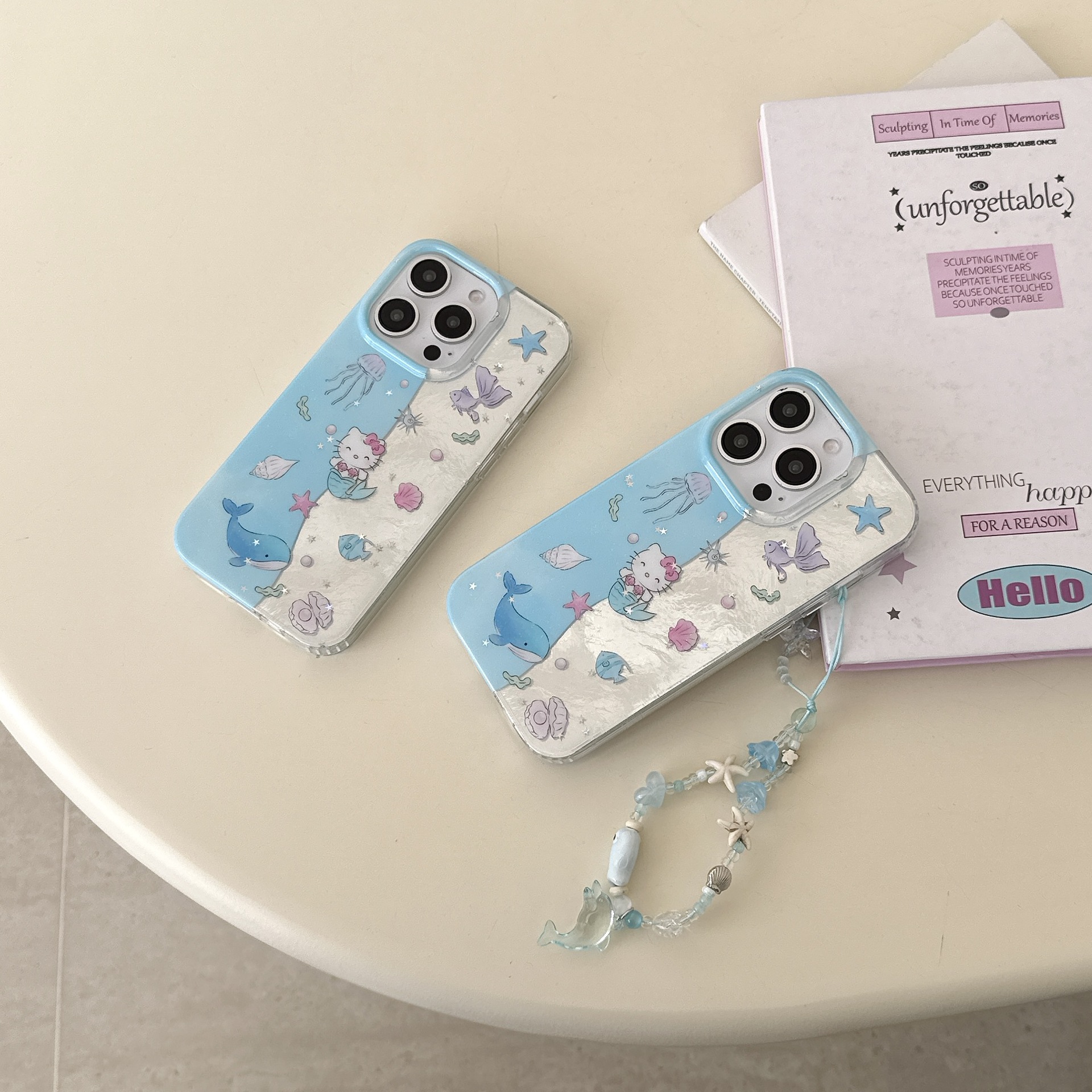 Empalme de las olas sirena KT gato para Apple 15ProMax funda para teléfono móvil 16Pro nuevo 14/13 femenino 16PM